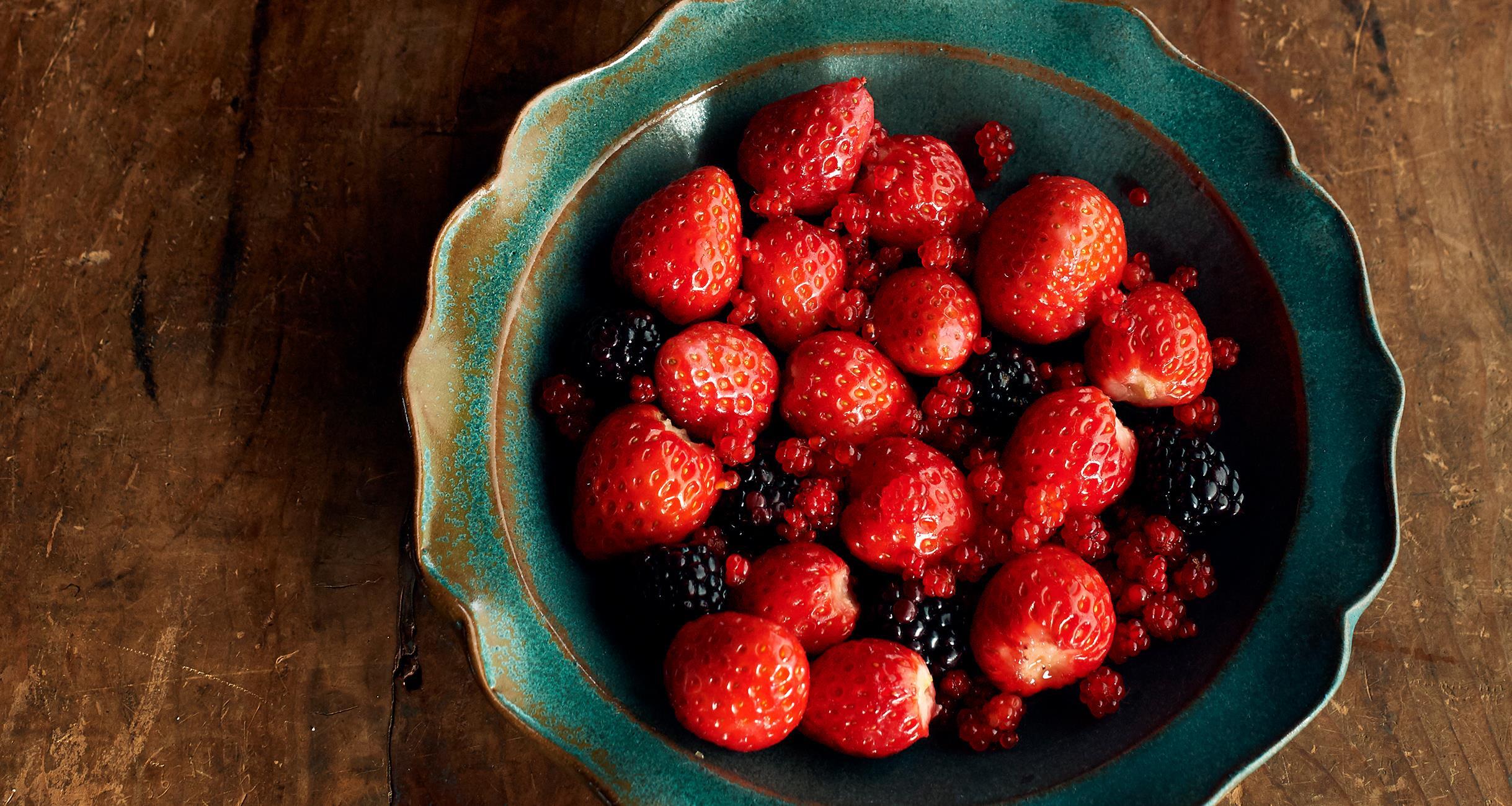 そのまま食べてもおいしいベリーですが、甘味と酸味を足してあげることでお酒に合う料理として成り立ちます。この日のベリーは、いちごとブラックベリー、安部さん家族が摘んできてくれたフユイチゴを使用。