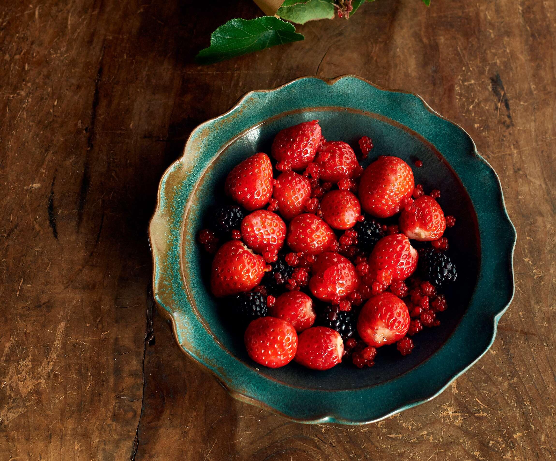 お好きなベリーに酸味を足して和えることで、立派なお酒のおつまみになります。スパークリングワインに落としても、パンとつまんでも美味。“時間がおいしくしてくれるもの”をテーマに活動するオカズデザインの二人は、東京と岡山で二拠点生活をしています。文字どおり「水が合った」という蒜山・中和で暮らすようになって、今まで以上に、手の届く範囲のものを使って料理をするようになったそう。そんな二人の自宅ごはんを習いました。