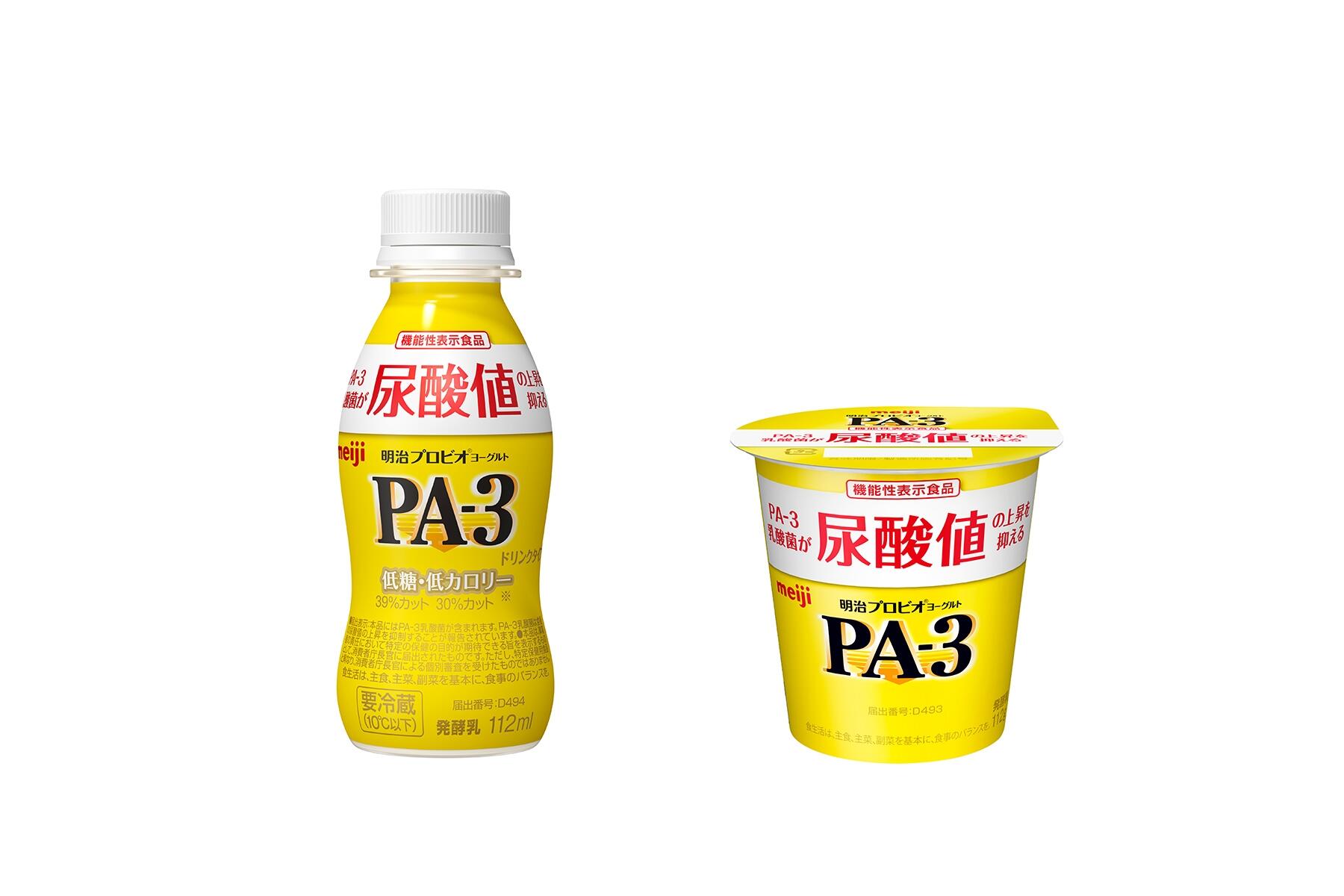 「PA‐3」は長年の乳酸菌研究の中でプリン体に着目して選び抜かれたPA‐3乳酸菌を使用。1本あたりPA-3乳酸菌が56億個以上含まれ、これらがプリン体摂取後の尿酸値の上昇を抑制してくれるという。「PA‐3」に光山さんは興味津々である。