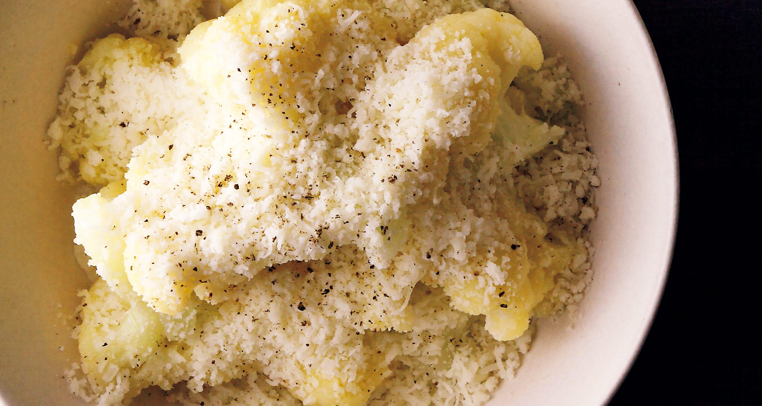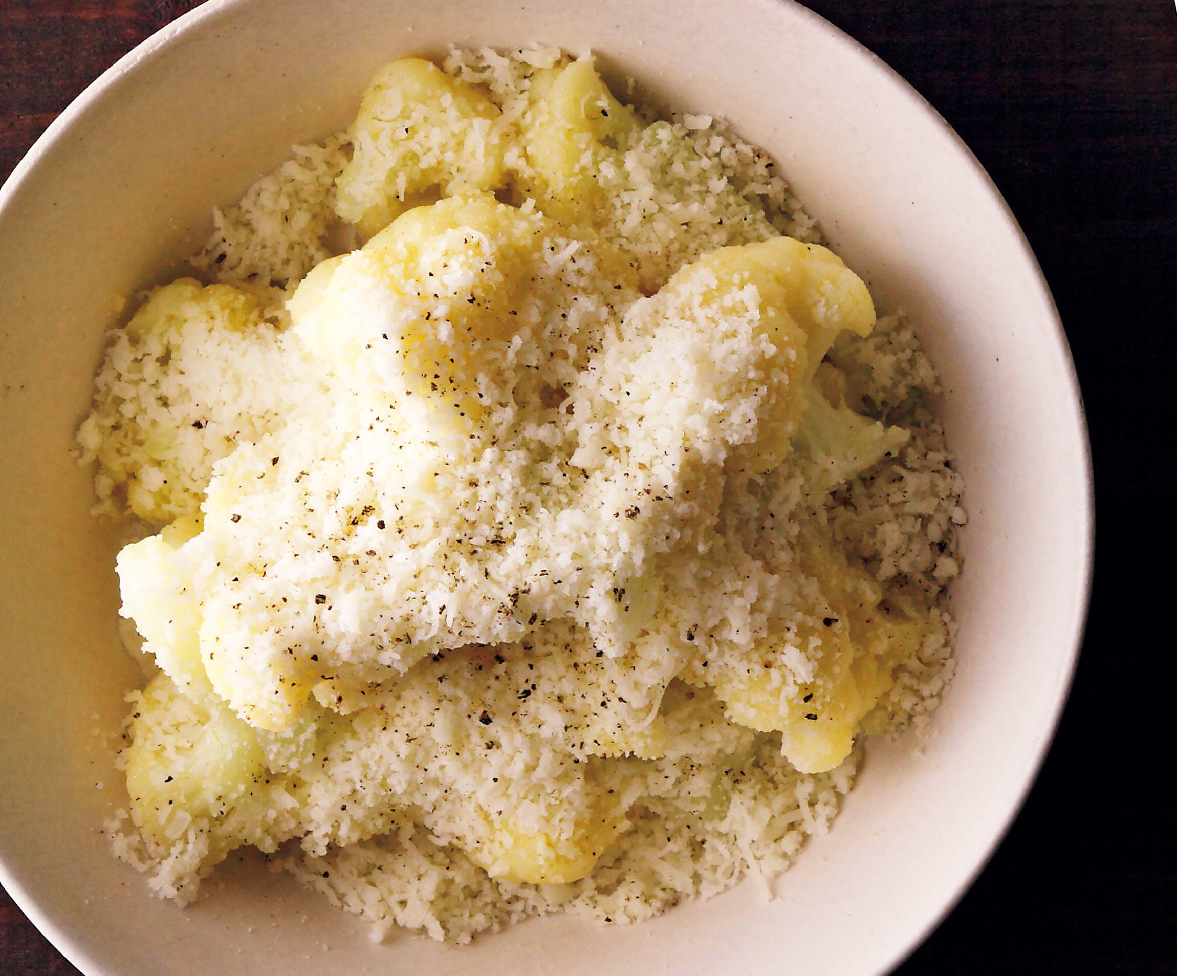すりおろしたペコリーノチーズはふわふわで口溶けがいい。カリフラワーにかけるだけで野菜の味がぐんと引き出され、後をひくおいしさ。ズッキーニやそら豆にもよく合う。