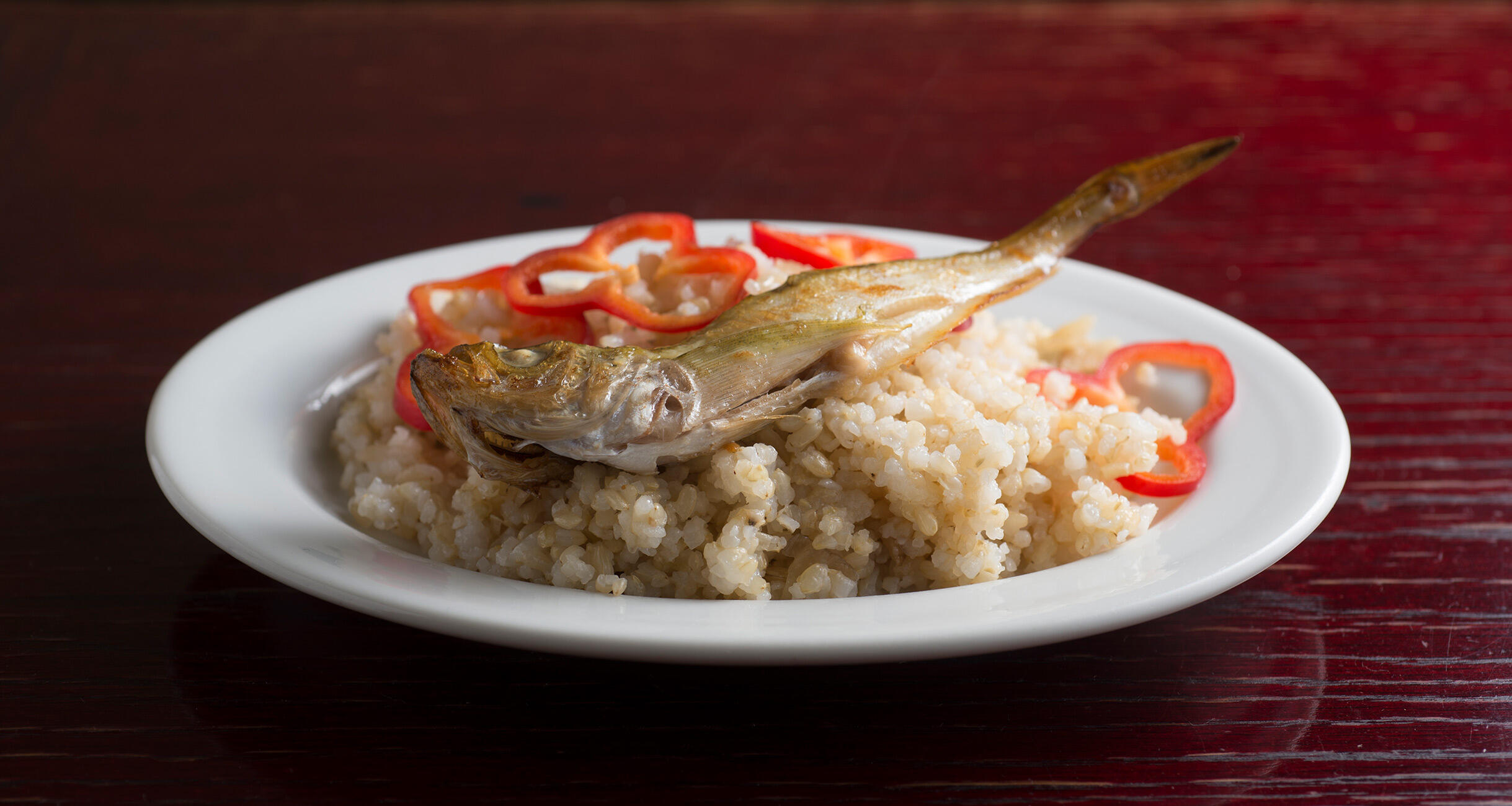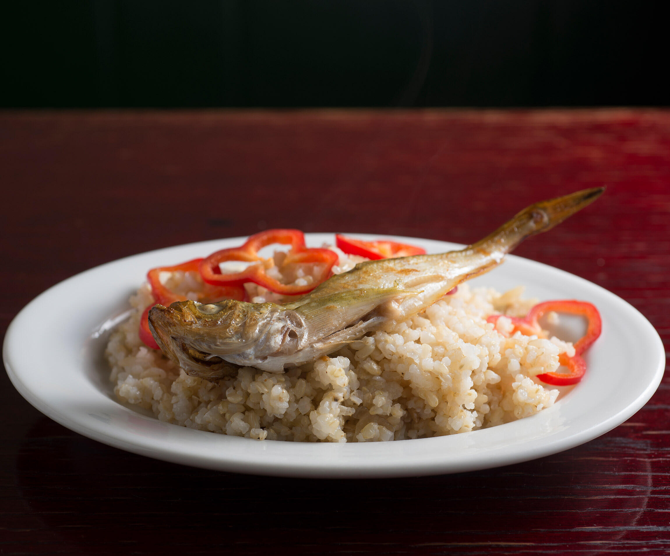 ハタハタをほぐしながらご飯と合わせて食べれば、思いのほか上品な旨さ。いぶりがっこは主張を控え、旨みの下支えに徹している。ところが……アイラ・モルト(今回はラフロイグ)をロックでぐびりとやった瞬間、強烈なパンチが炸裂した。淑女の静かな微笑みが、一転して妖艶&ワイルドに変わる不思議。こりゃ、たまらん。