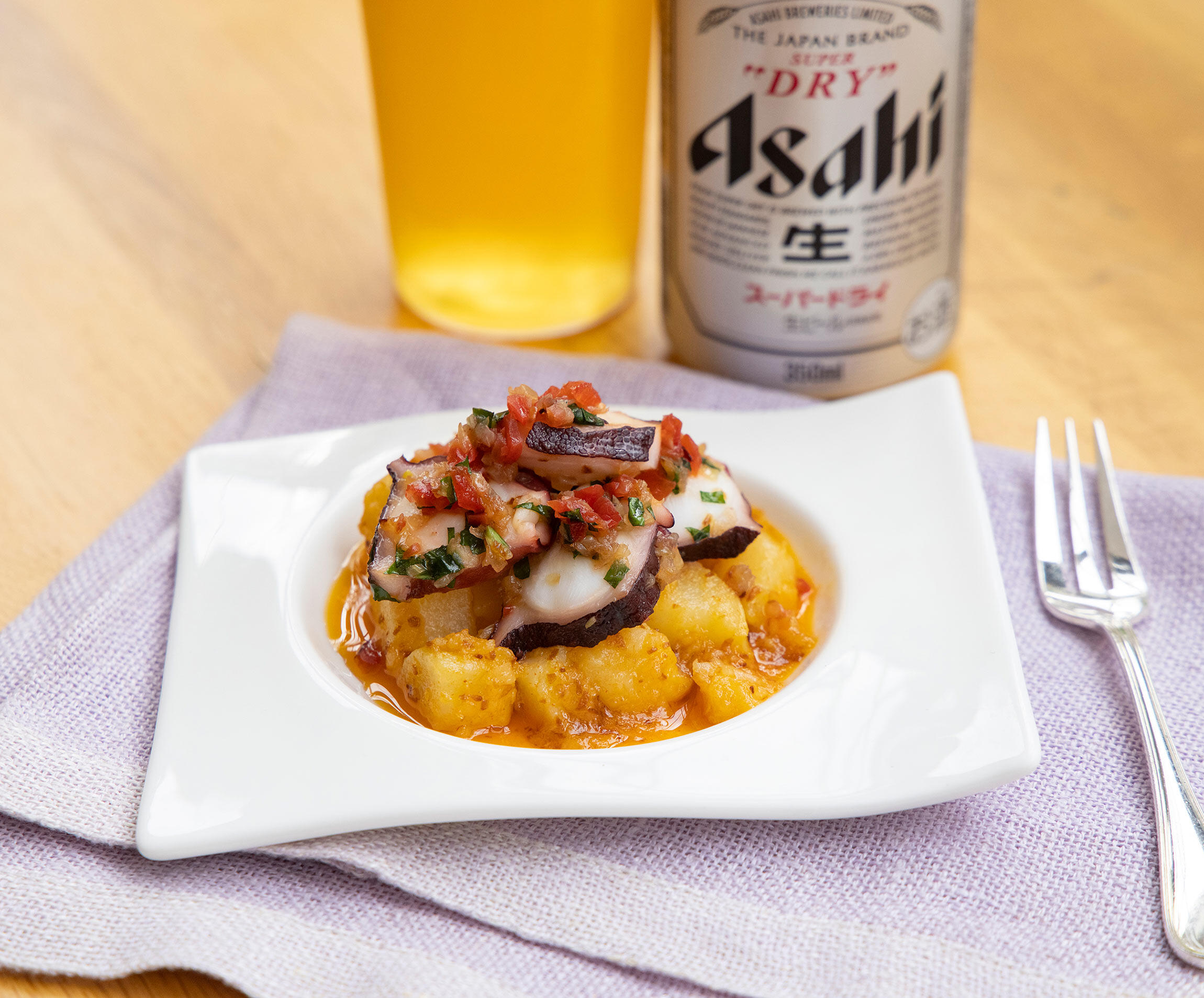 1品目の“タコとじゃがいものスペイン風”は、日本でも人気の「タコのガリシア風」をビールのつまみにアレンジしたもの。