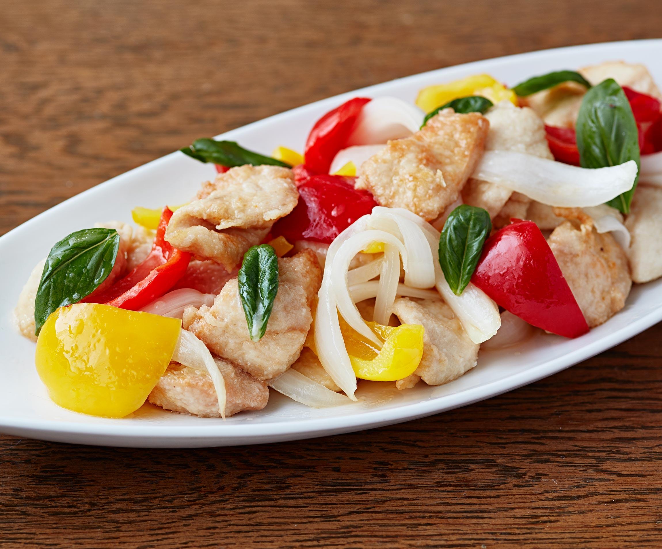 鶏肉は、食べやすい大きさにそぎ切りにし、塩小さじ1/2、胡椒少々をすり込み、表面に小麦粉を薄くはたきつける(鶏肉と小麦粉をビニール袋に入れて振るときれいにできて楽!)。