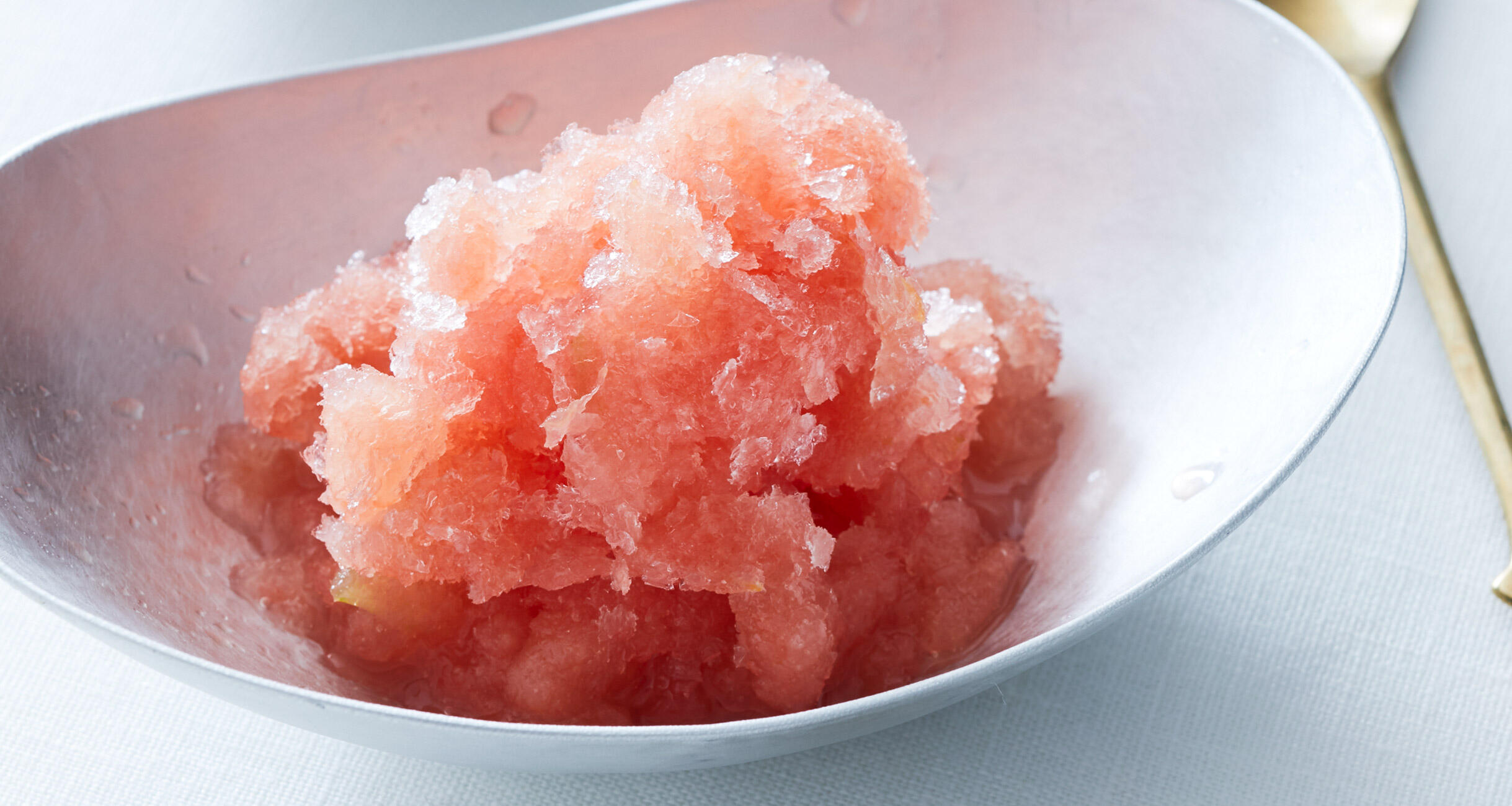 「グラニテ」とは、フレンチのシャーベット状の氷菓です。一口食べるだけで口の中がひんやり、すーっと爽やかになります。つくり方はいたって簡単。旬のすいかを手軽に、そしてぜいたくに楽しんでください。植松良枝さんが主宰する料理教室で登場する季節ごとに食べたい、つくりたい料理のレシピをご紹介します。ぜひ、つくってみて季節のおいしさを味わってみてください!
