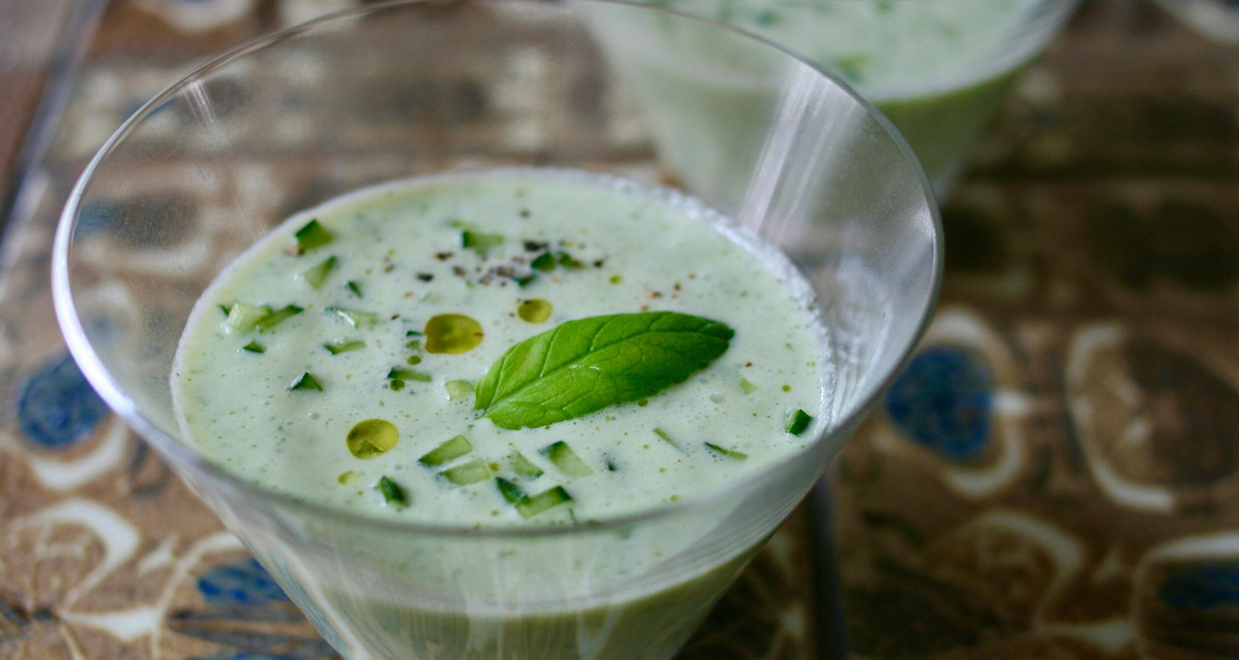 見た目は日本の白和えみたいなものだけど、ハーブが効いていて、頬張ると口の中に清涼感が生まれる。欧州の人は、夏の暑い時期にこれをパンに塗って、白ワインと一緒につまむ。このザジキをスープ状にしたような一品が今日紹介するギリシャ風スープということになる。冷蔵庫で冷やして、食欲のない暑い日などに、これを飲むだけでも、にんにくも入っているし元気が回復する。しかも、とっても簡単なのである。これからの季節、ぜひ、ご自宅で試していただきたい。