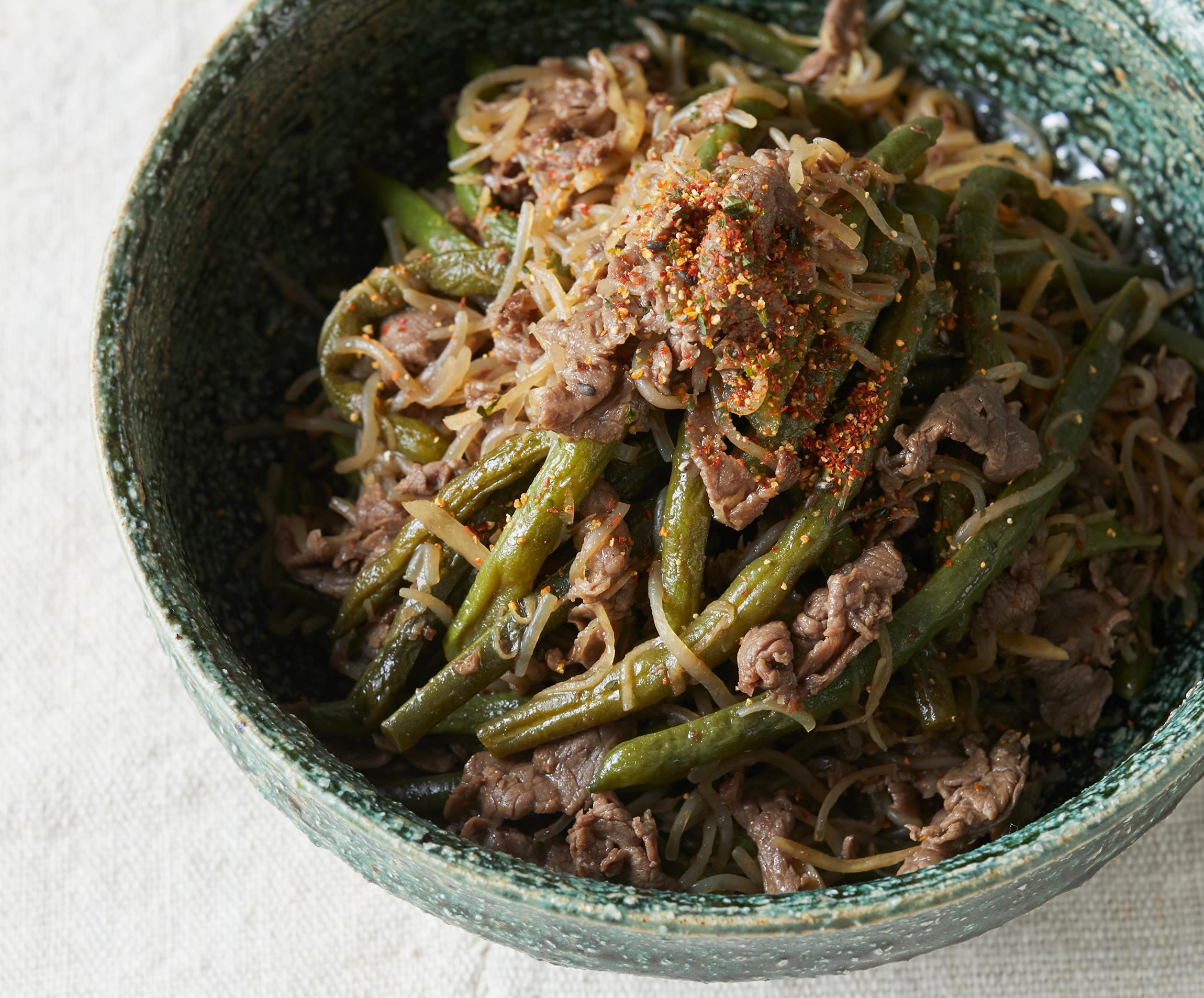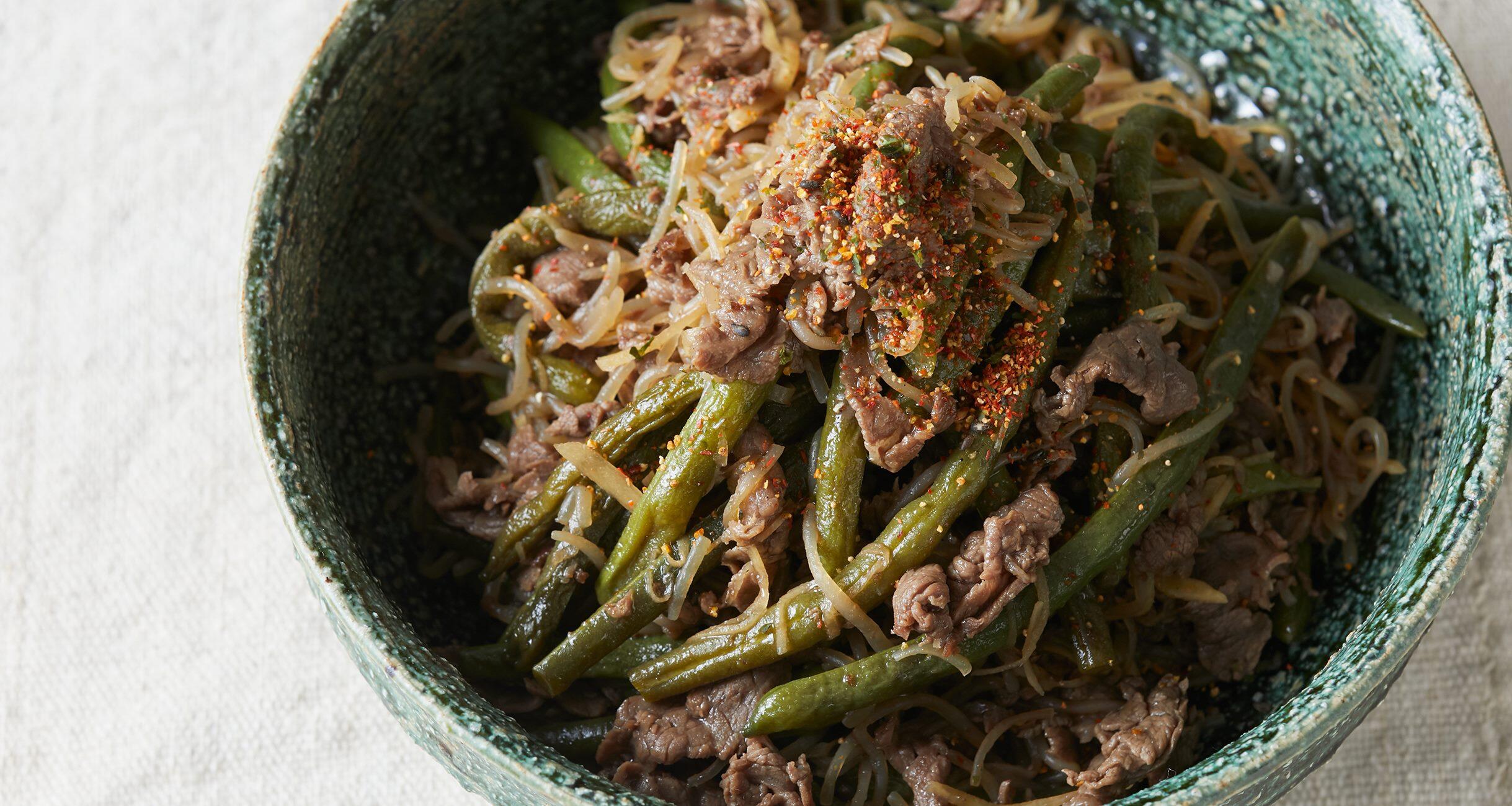 牛肉の旨味と醤油をまとったいんげんは、ご飯がもりもりと進む魅惑のおかずになります。シンプルに焼いて、さっぱり和えて、豪快に炒めて、と夏野菜の旨味を最大限生かした、植松良枝さん直伝の直球料理をご紹介します。
