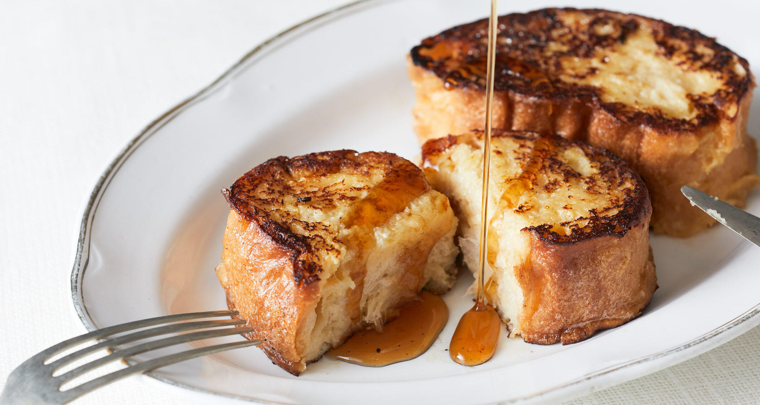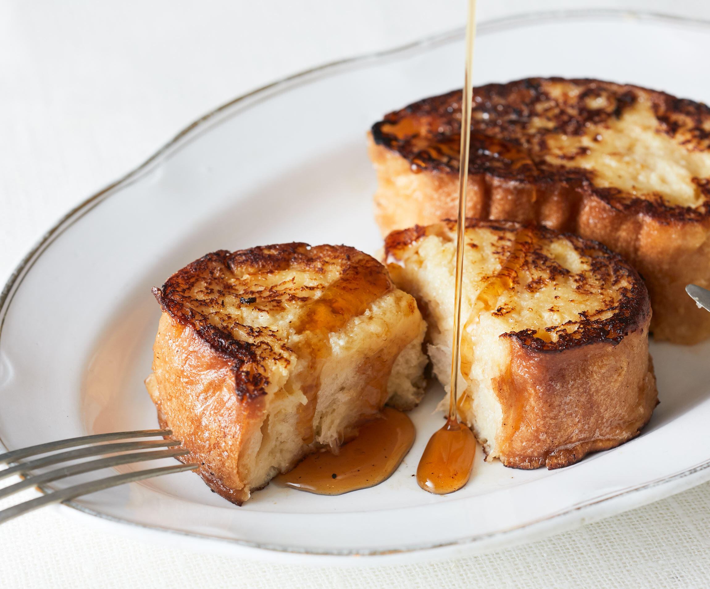 メープルシロップのほか、水で薄めたはちみつや黒蜜、和三盆糖やきな粉をふっても。