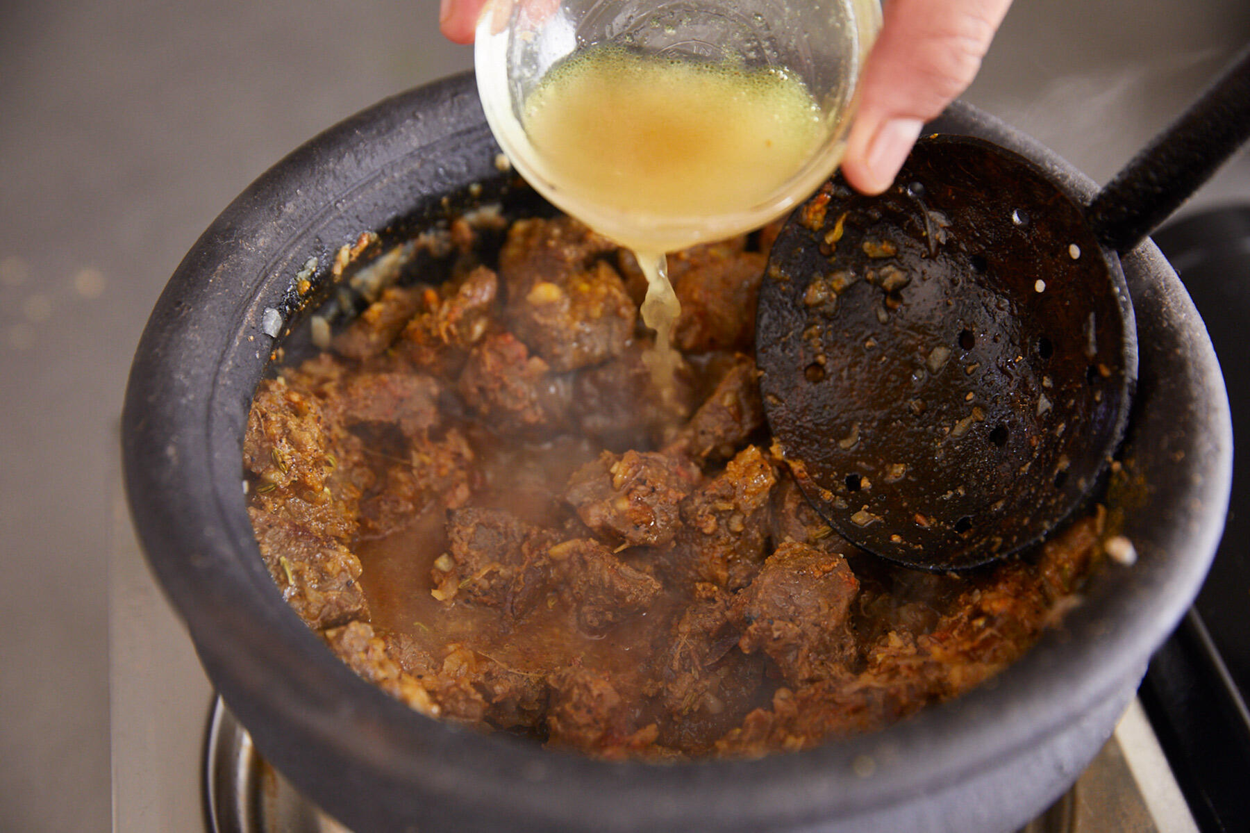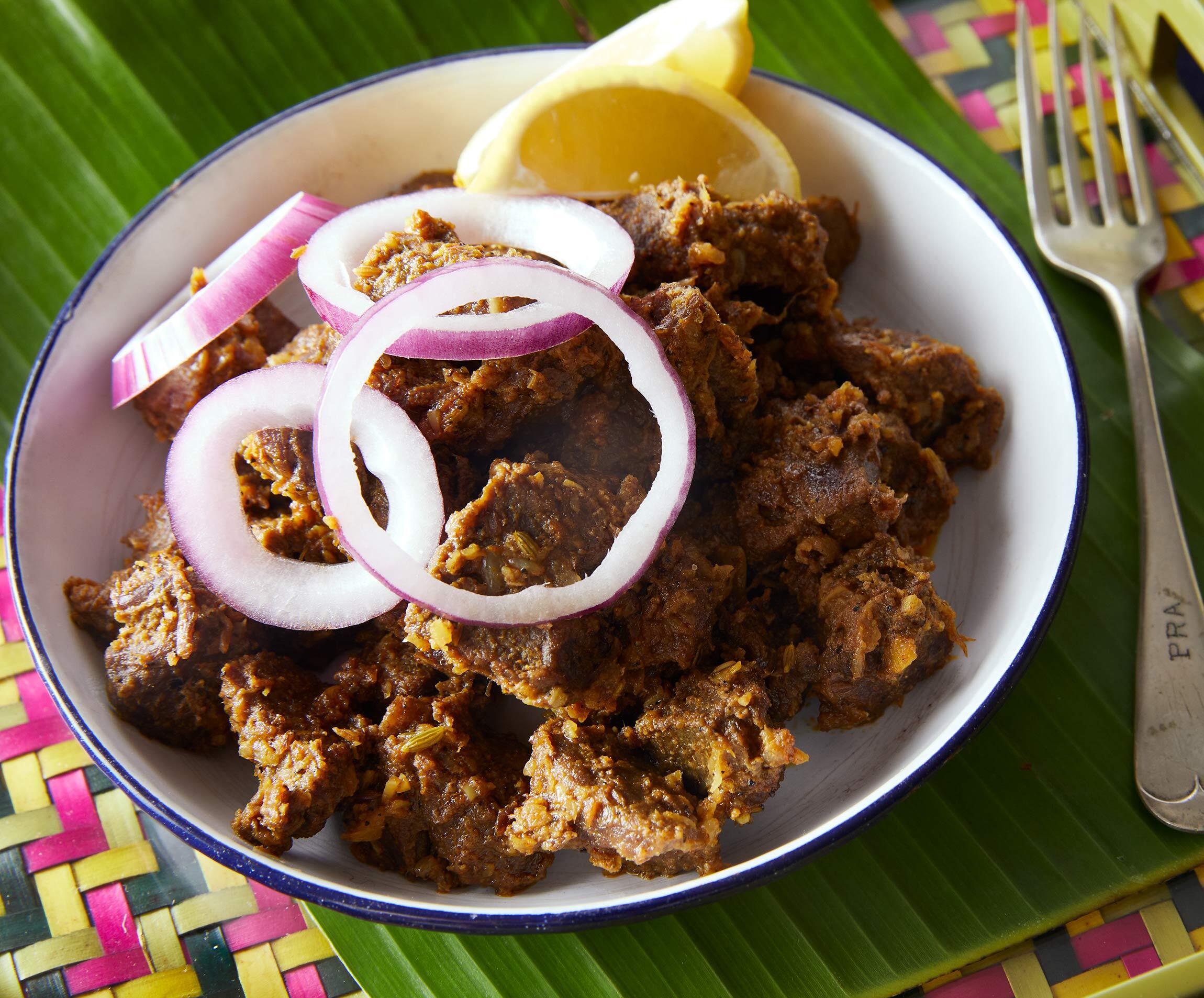 汁気をとばしドライな状態に仕上げる、スパイシーで香り高いマトン料理は、かの地でもご馳走料理。肉のゆで汁もおいしいので、捨てずにスープとして味わいたい。