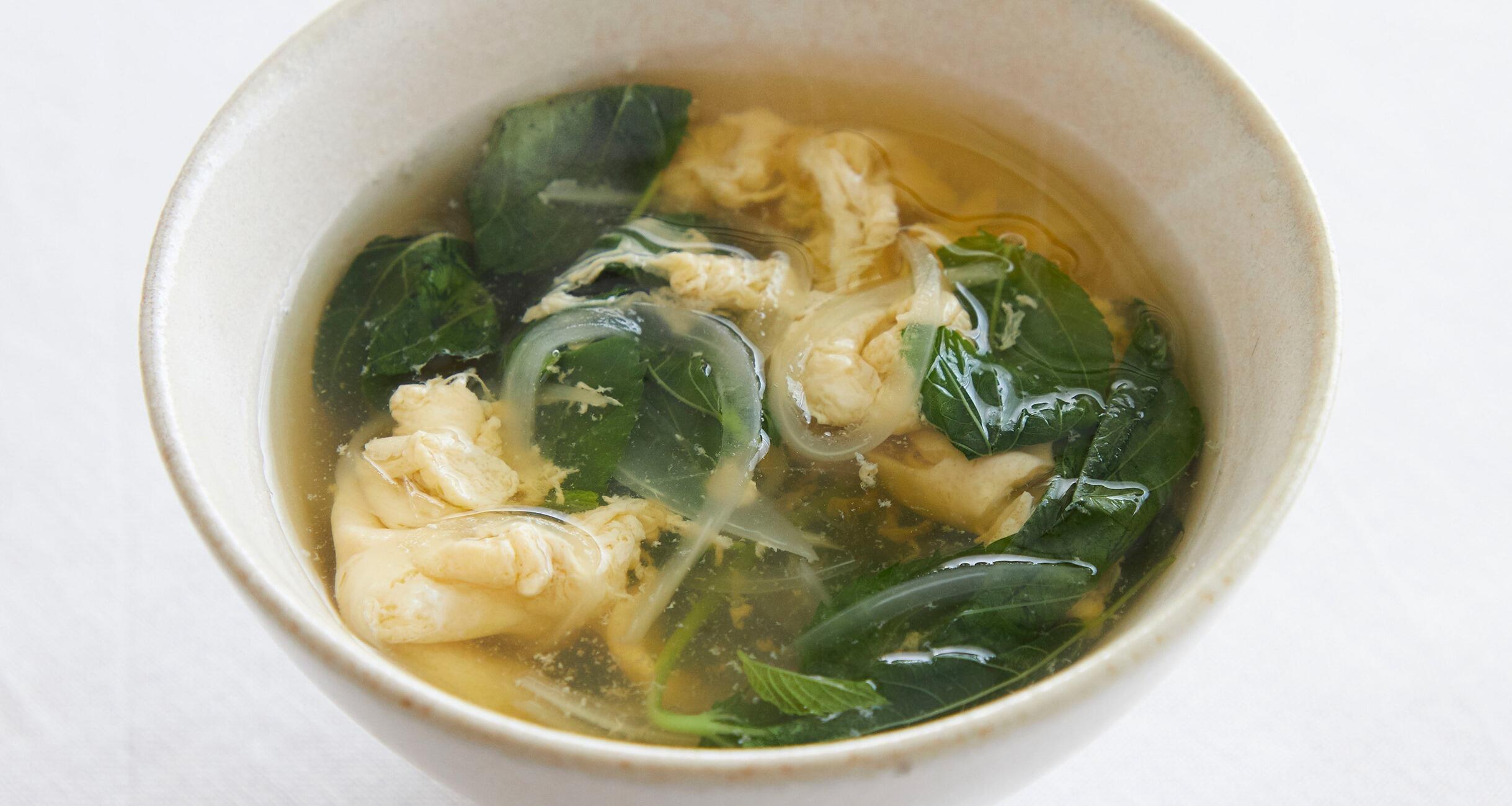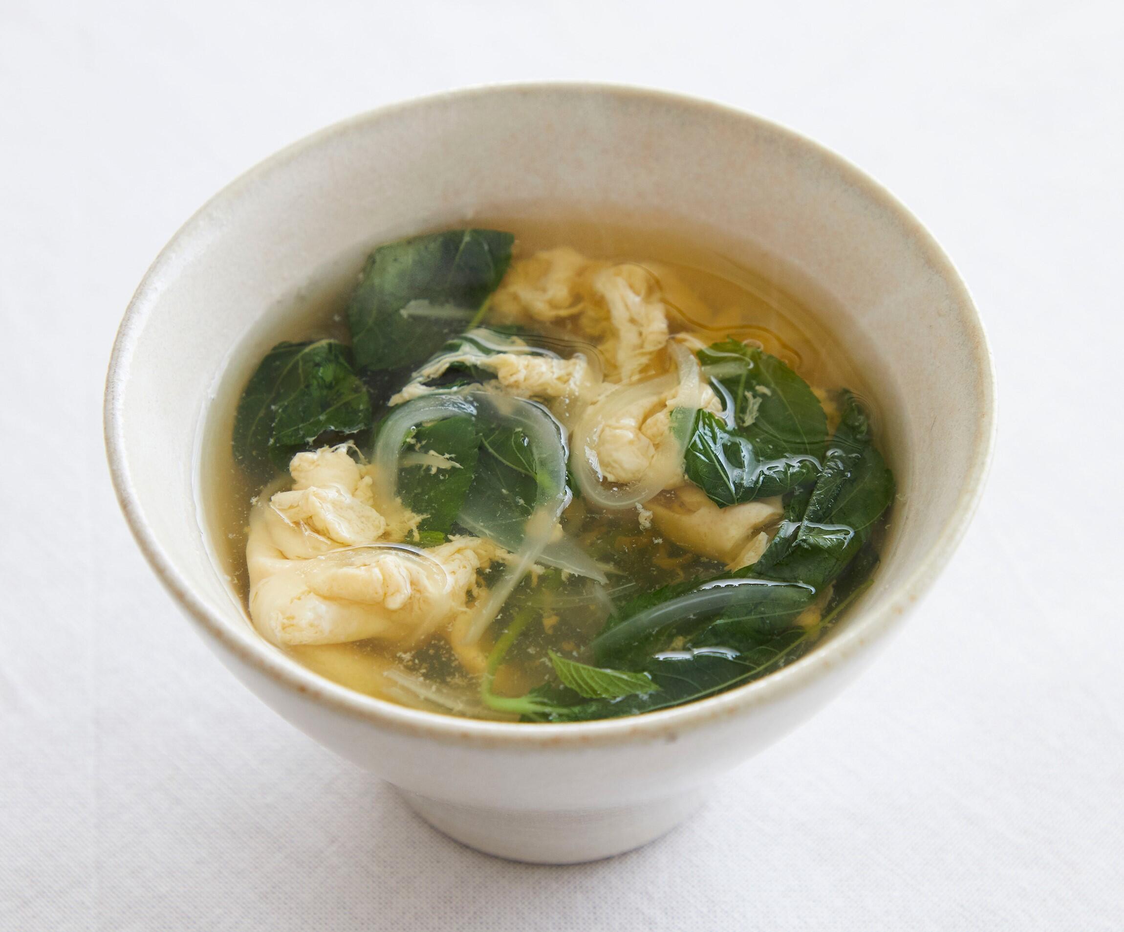 モロヘイヤでとろみがつくので、卵がふんわりとまとまります。ご飯とおかずが一緒になったお寿司は、それだけで大満足。あとは汁物があるだけで、立派な献立になります。温かい汁物を口にすると、体も心もほっと和むから不思議。出盛りの食材を使って、お椀の中でも夏を満喫しましょう。