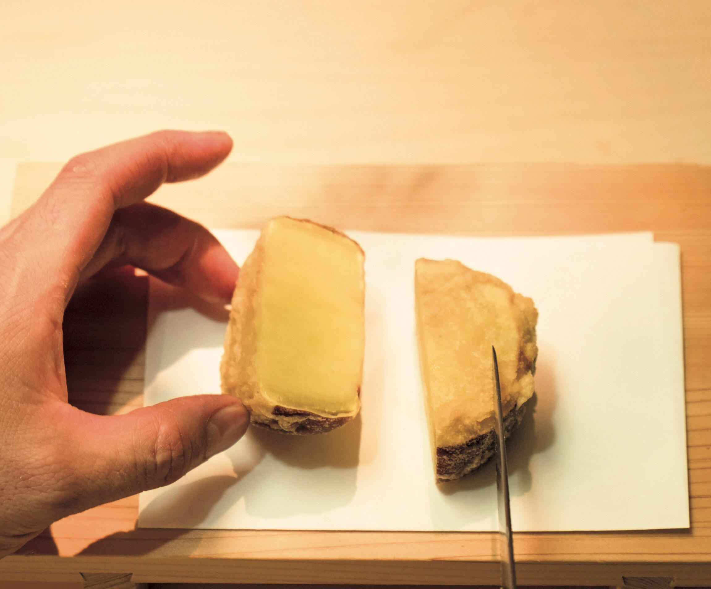 東京・南青山にある天ぷらの人気店「元吉」の主人・元吉和仁さんに、確実に美味しく揚げられるさつまいもの天ぷらを習いました。時間はかかるけれど、お店で食べるような、甘くて厚みのあるホクホクのさつまいもを、ぜひご自宅で揚げてみてください!