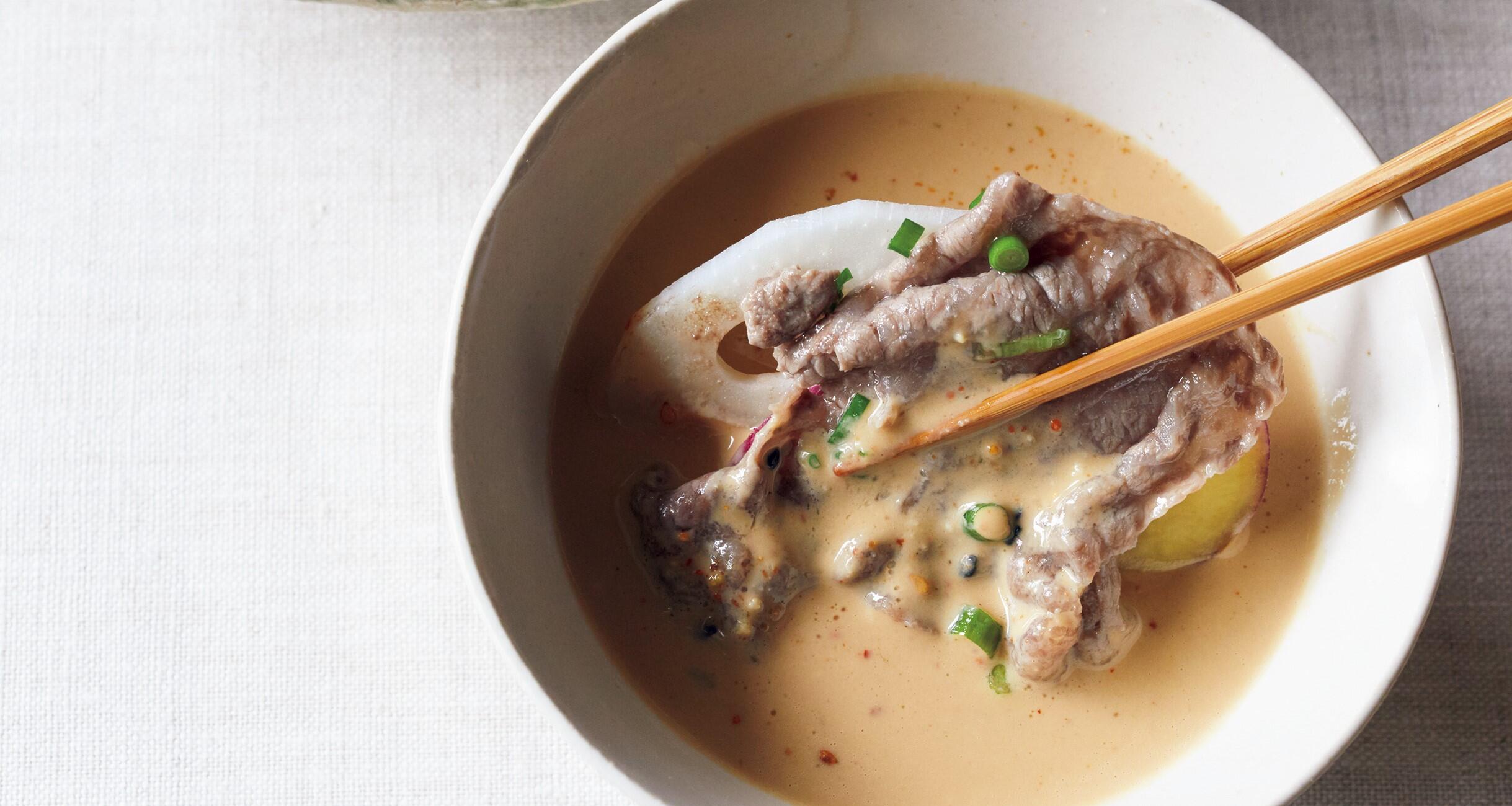 牛肉の旨味を纏った野菜が美味しい温野菜サラダです。生姜風味の胡麻だれで体も温まります。せいろを使ったほかほか蒸し料理を料理研究家の大庭英子さんに教わります。