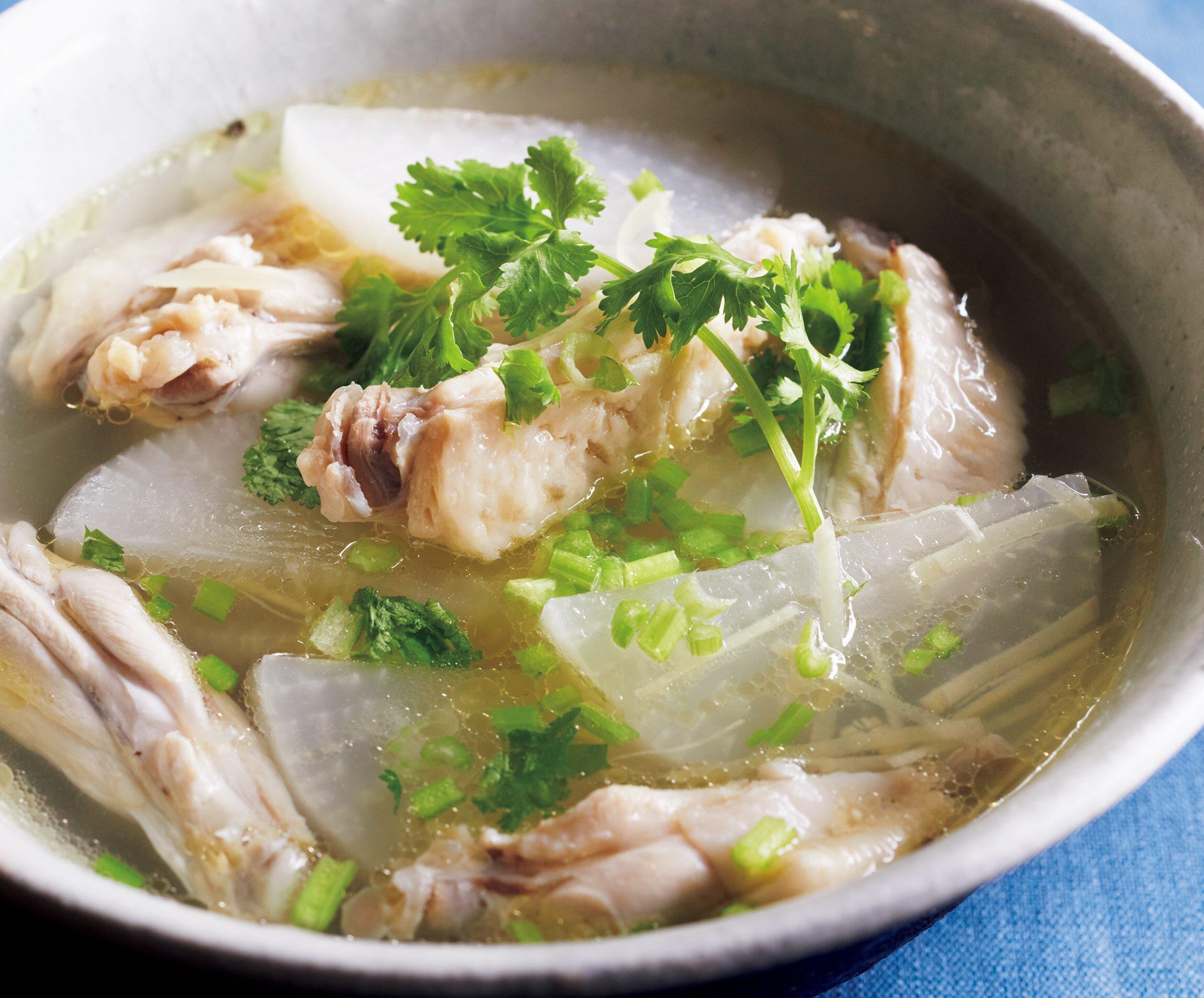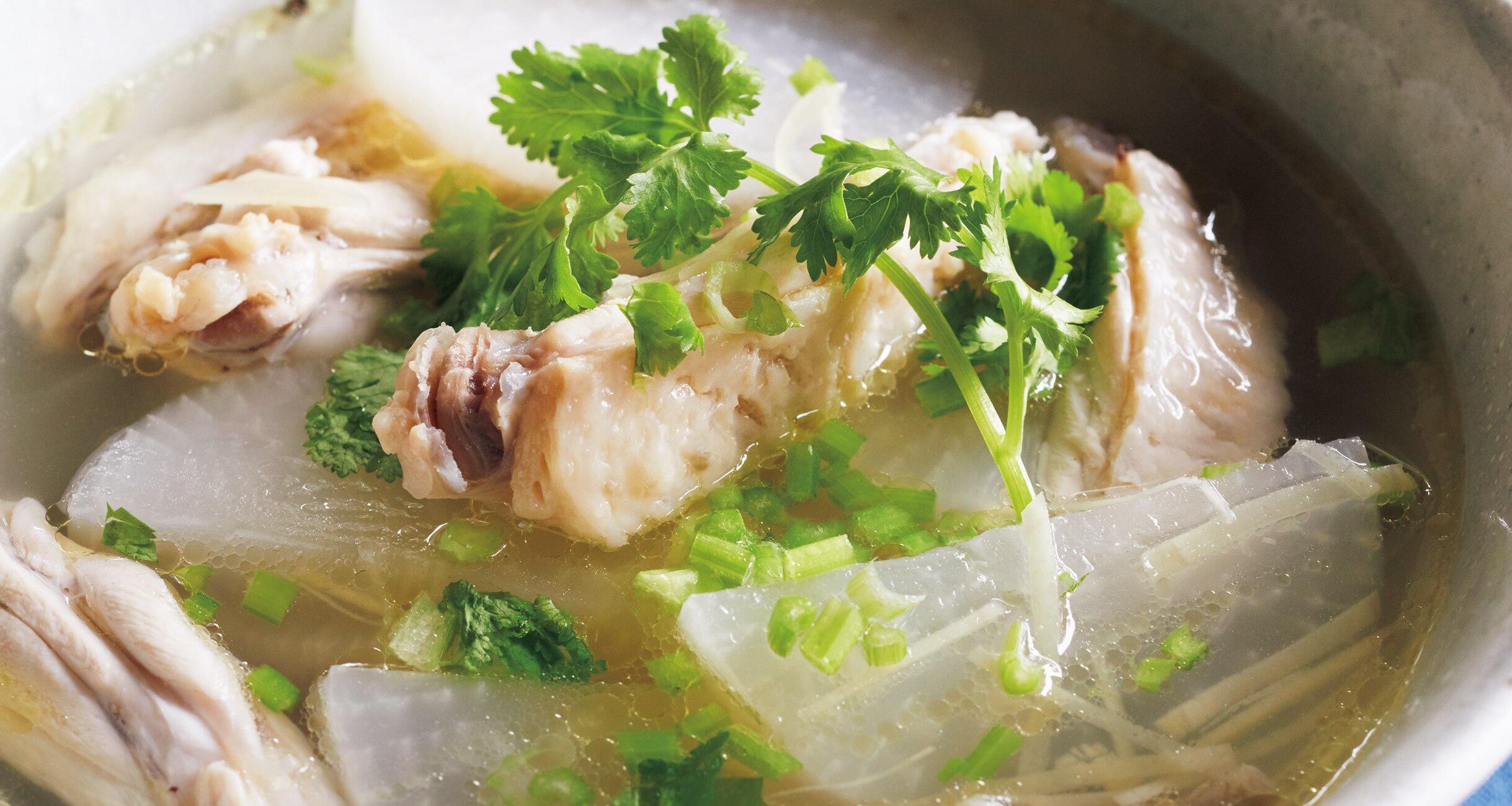 骨から染み出した旨味が体に染みるスープです。トッピングの香菜がすっと爽やかに香ります。せいろを使ったほかほか蒸し料理を料理研究家の大庭英子さんに教わります。