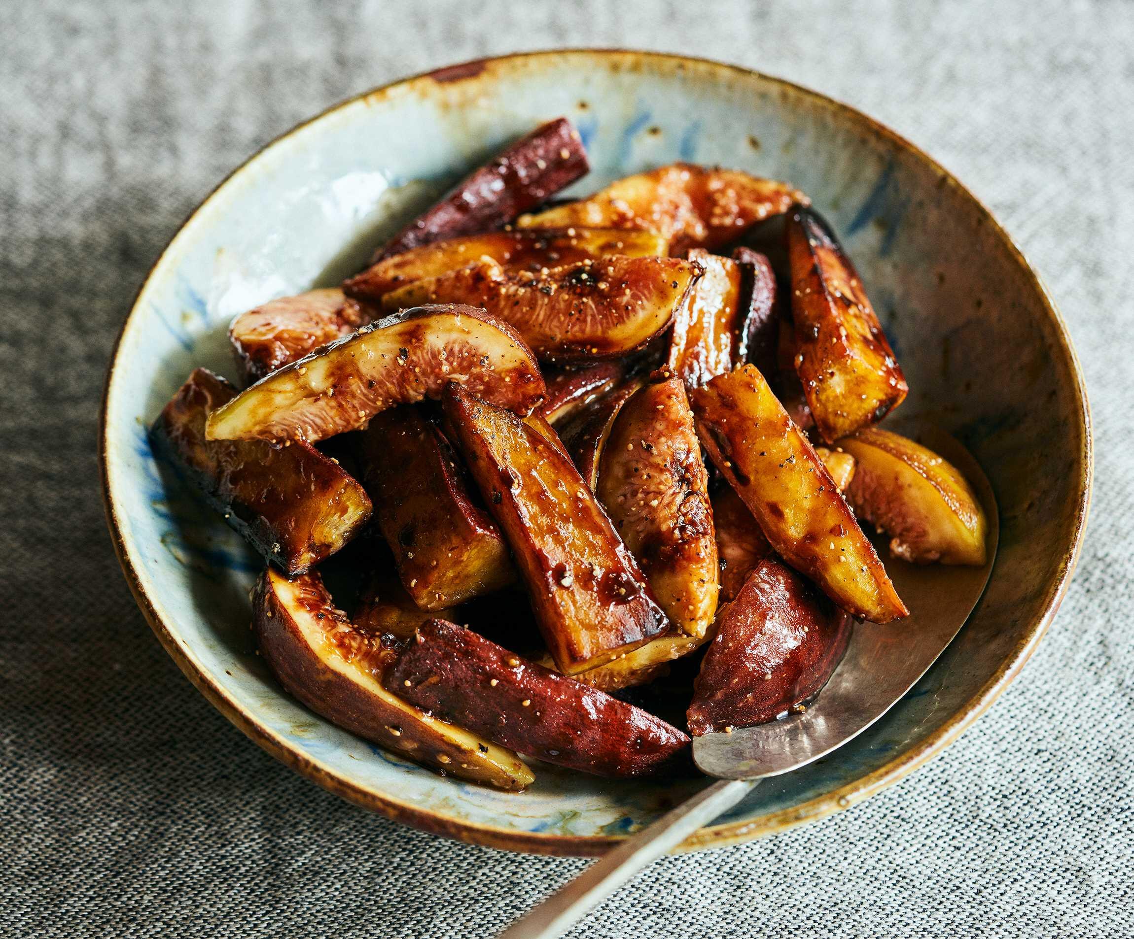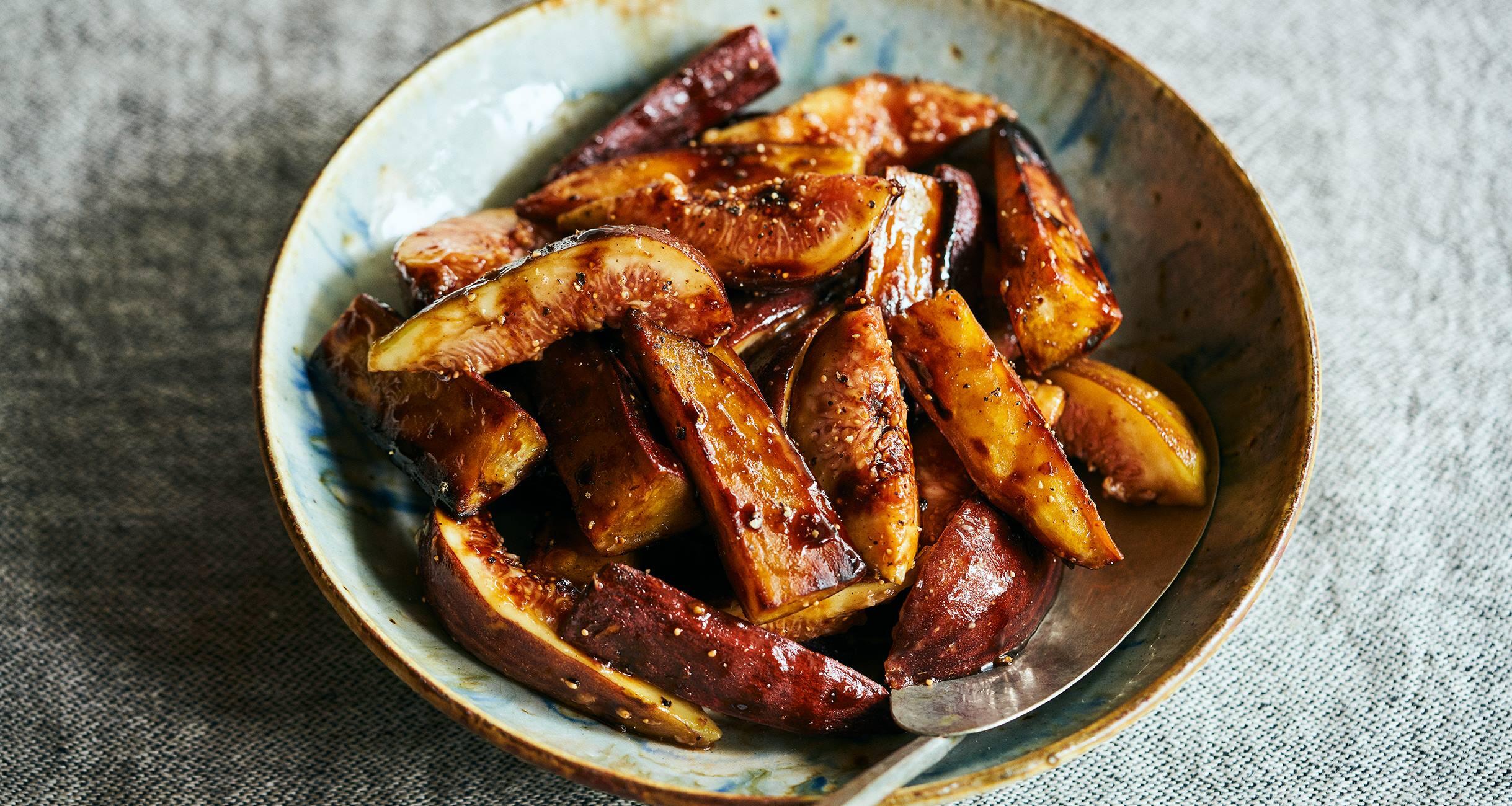 バルサミコ酢でつくった大学芋です。さつまいもの甘味にバルサミコ酢の豊潤な旨味と酸味が合わさり、ご飯もお酒も進む味わいとなっています。旬の食材を使った、白いご飯に合う和のお惣菜を料理研究家である小堀紀代美さんに教えてもらいました。