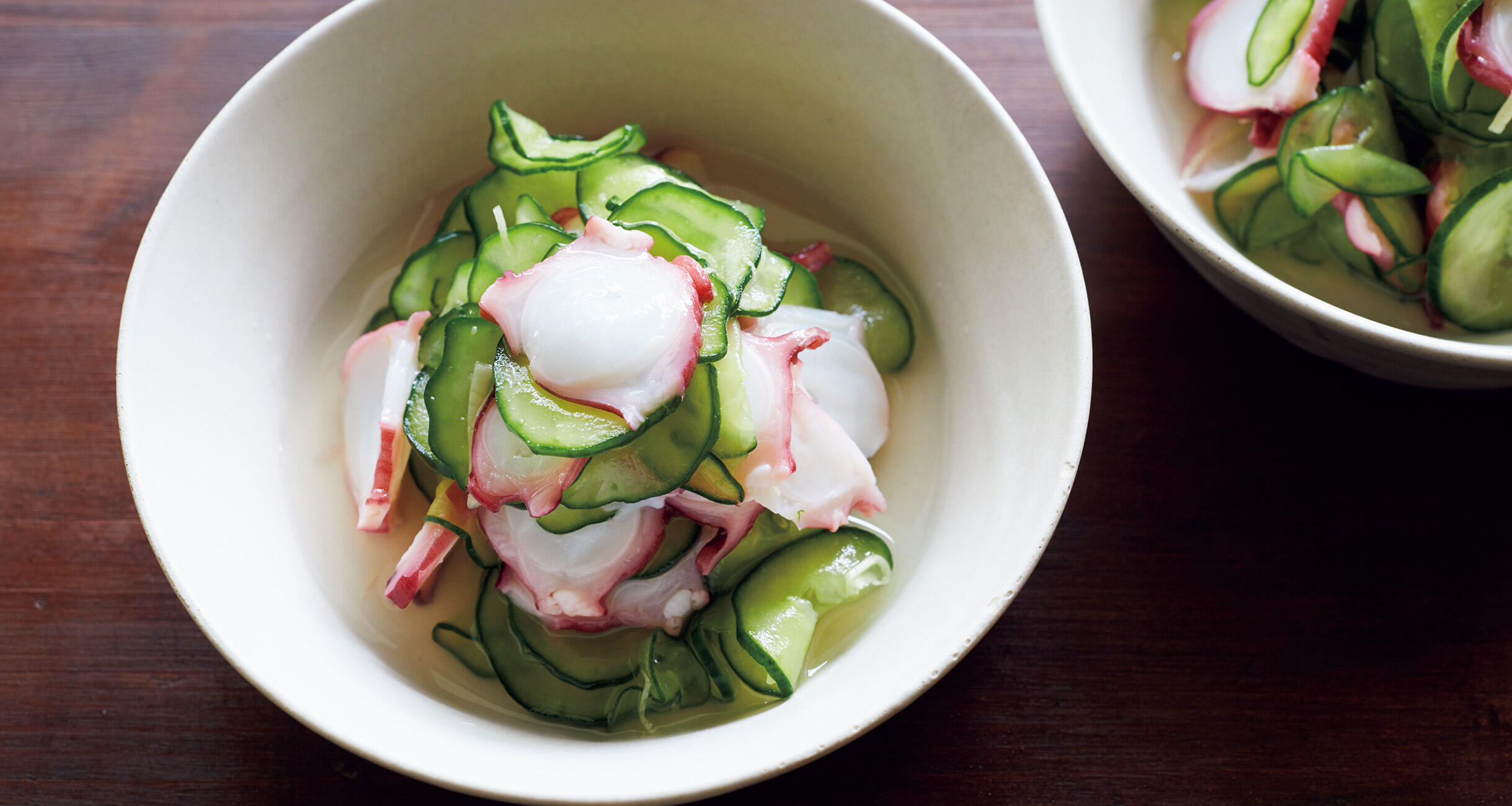 定番のおかずに定番の酢の物で最強の献立になります。酢にだしや水を加えておだやかな酸味に。
