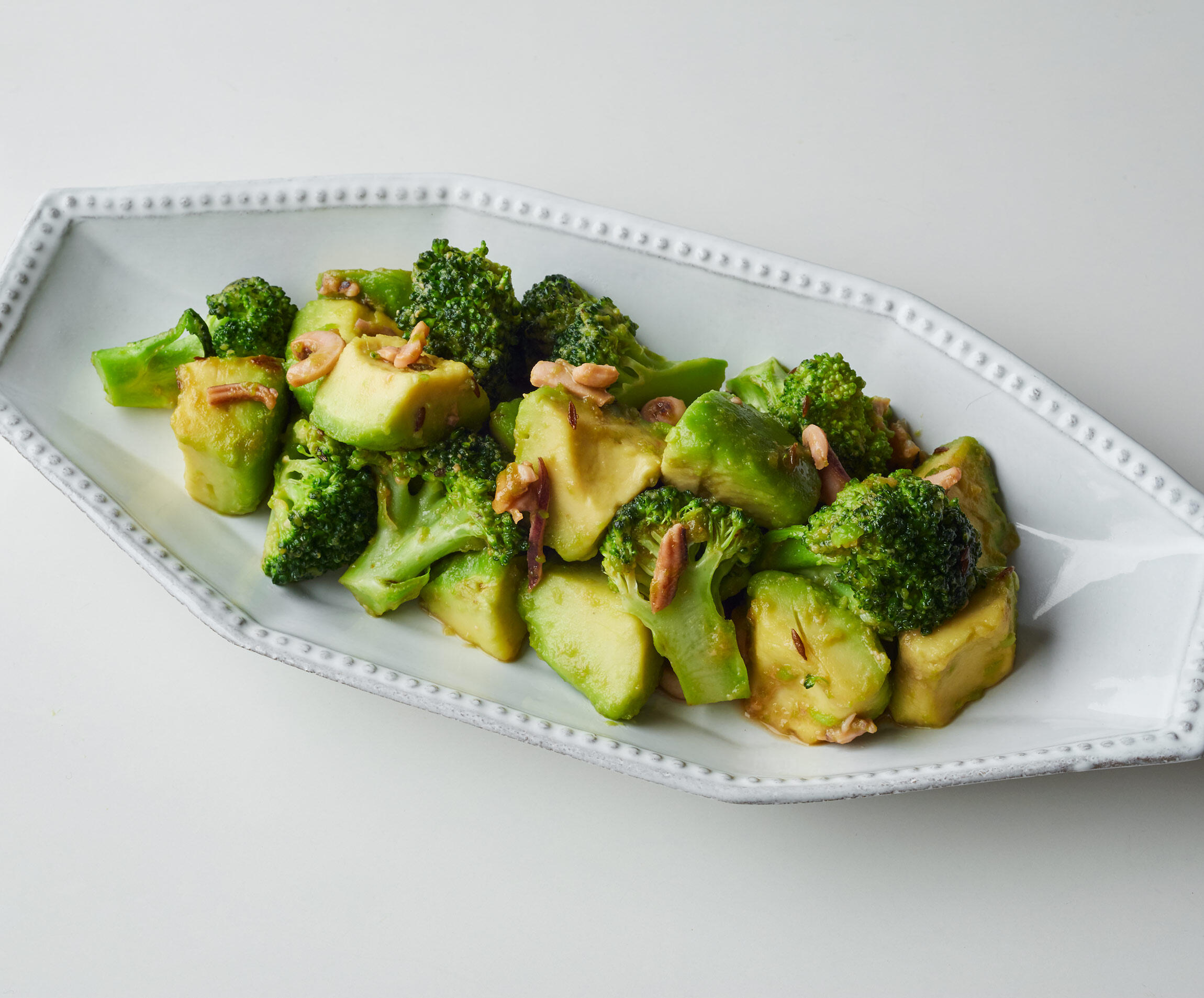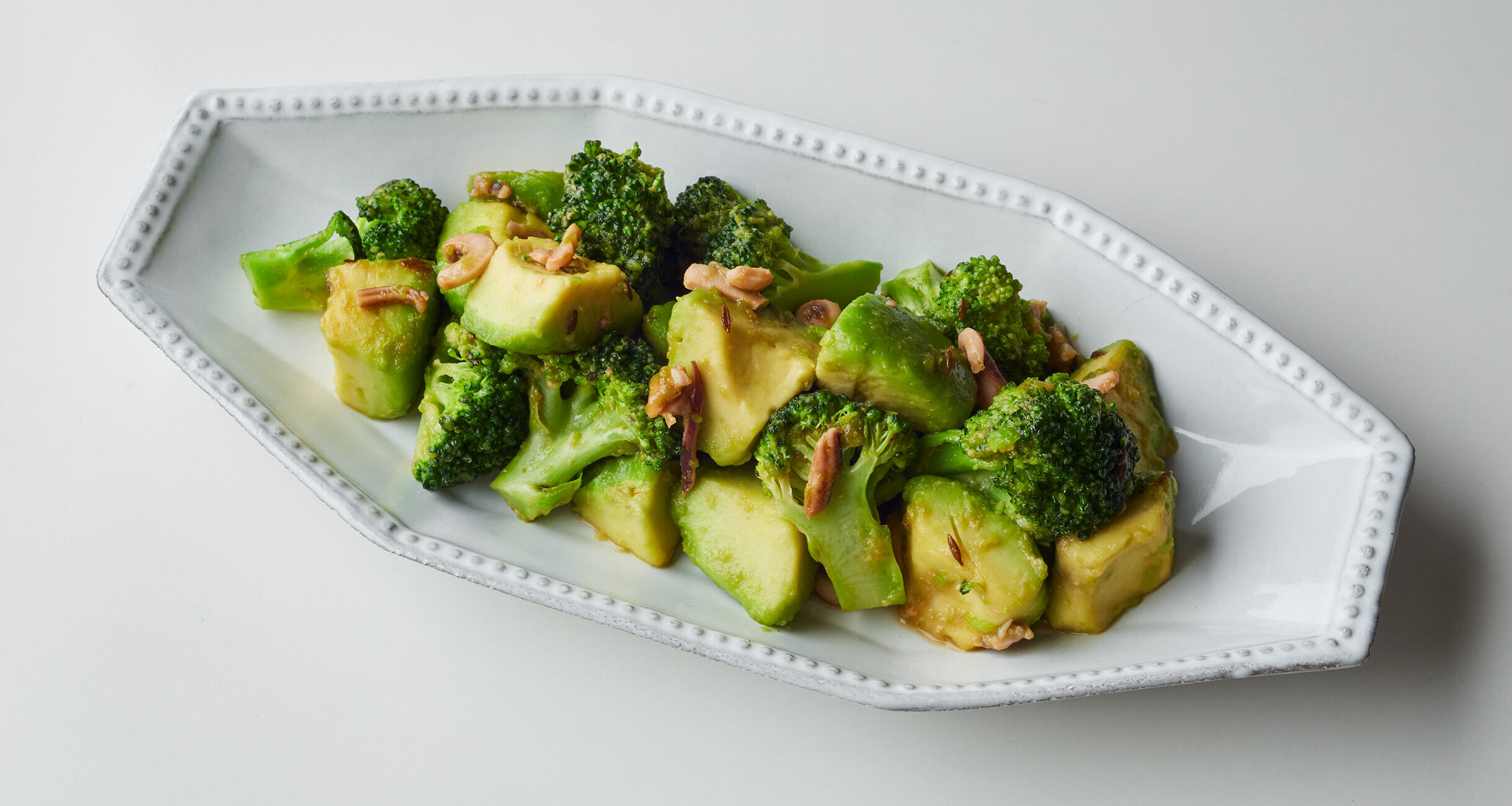 身近な食材を使い、簡単なのに圧倒的に美味しいレシピを提案する料理研究家の大庭英子さんに習った、おかずとしてはもちろんつまみとしても優秀な一皿です。イカの塩辛とアボカドの旨味にブロッコリーの食感が合わさると、ビール以外にも日本酒やワインにも合う万能酒肴に仕上がります。