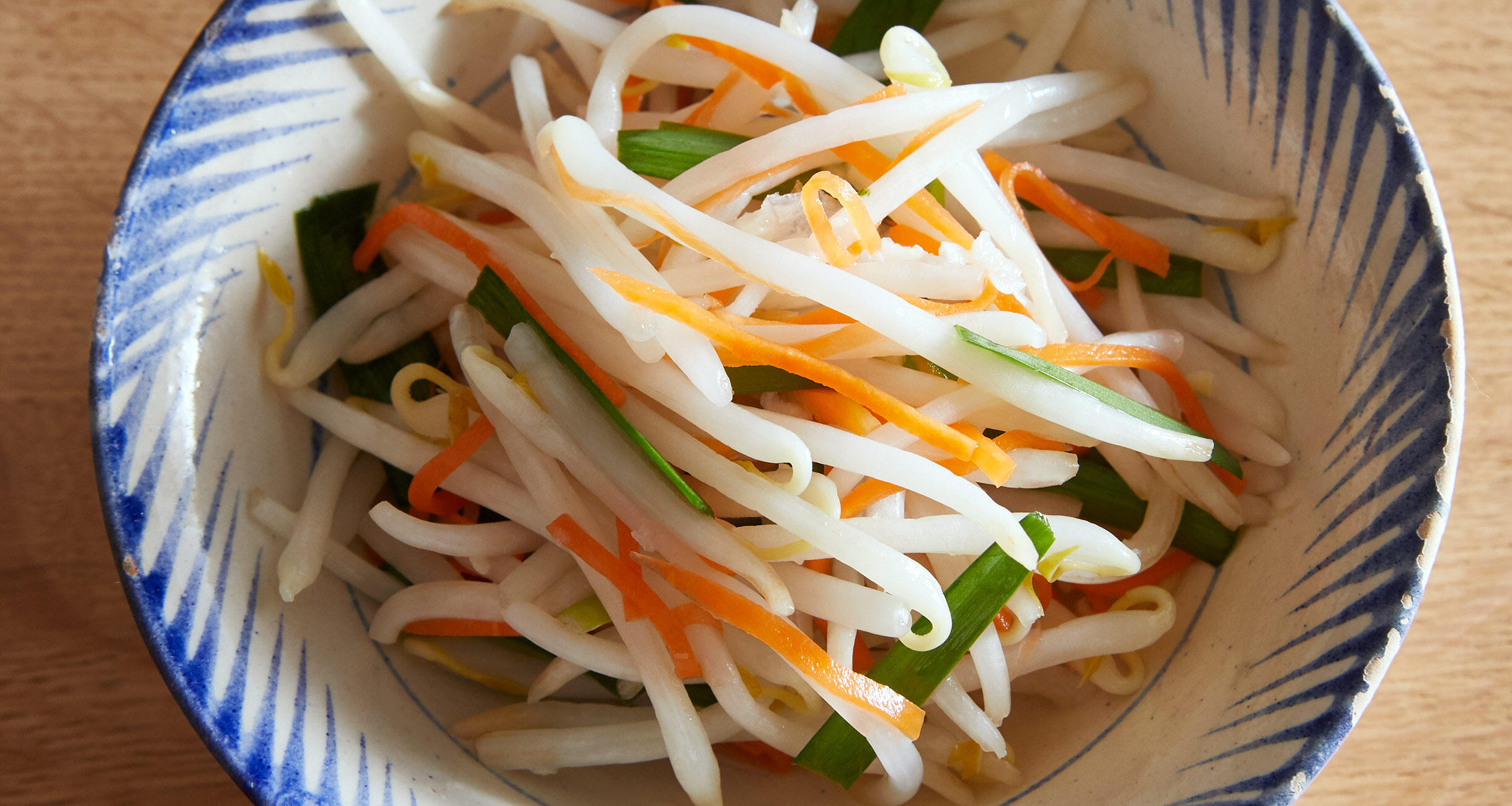 豚の角煮に必ず添えられるのが、もやしの漬物。本来は塩水に漬けてじっくり乳酸発酵させますが、即席漬けでも楽しめます。生食するので水洗いはしっかりと。