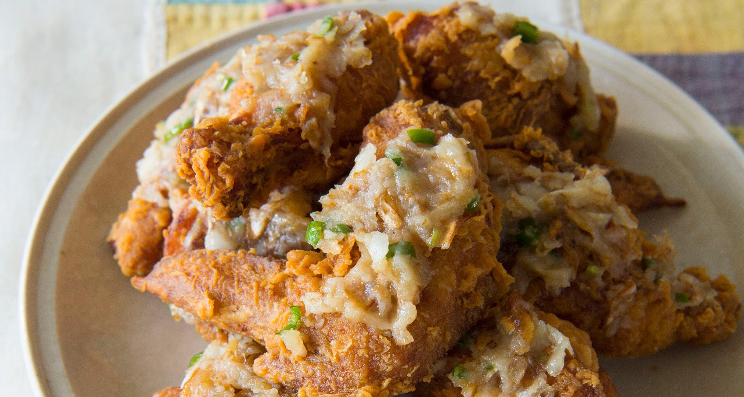 今回はその中から、他の国のから揚げを一つ紹介します。から揚げの定義は「食材に粉をはたいて油で揚げたもの」ですが、韓国のマヌルチキンは、揚げた鶏肉にたっぷりのにんにくペースト!韓国料理にも詳しい、料理研究家の重信初江さんに習いました。