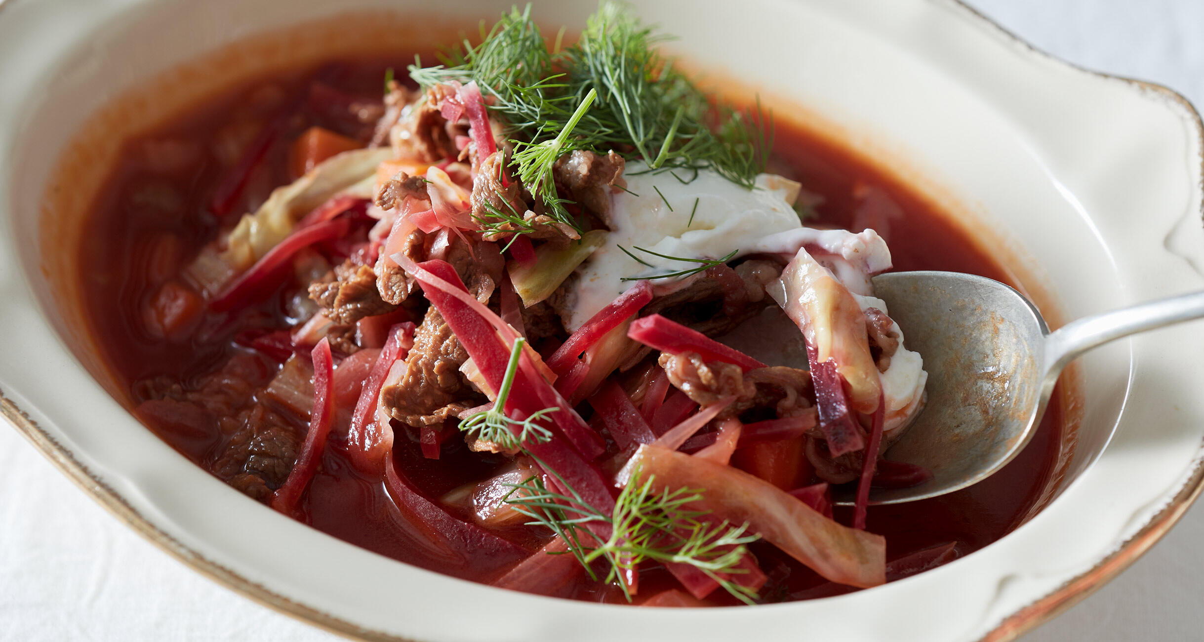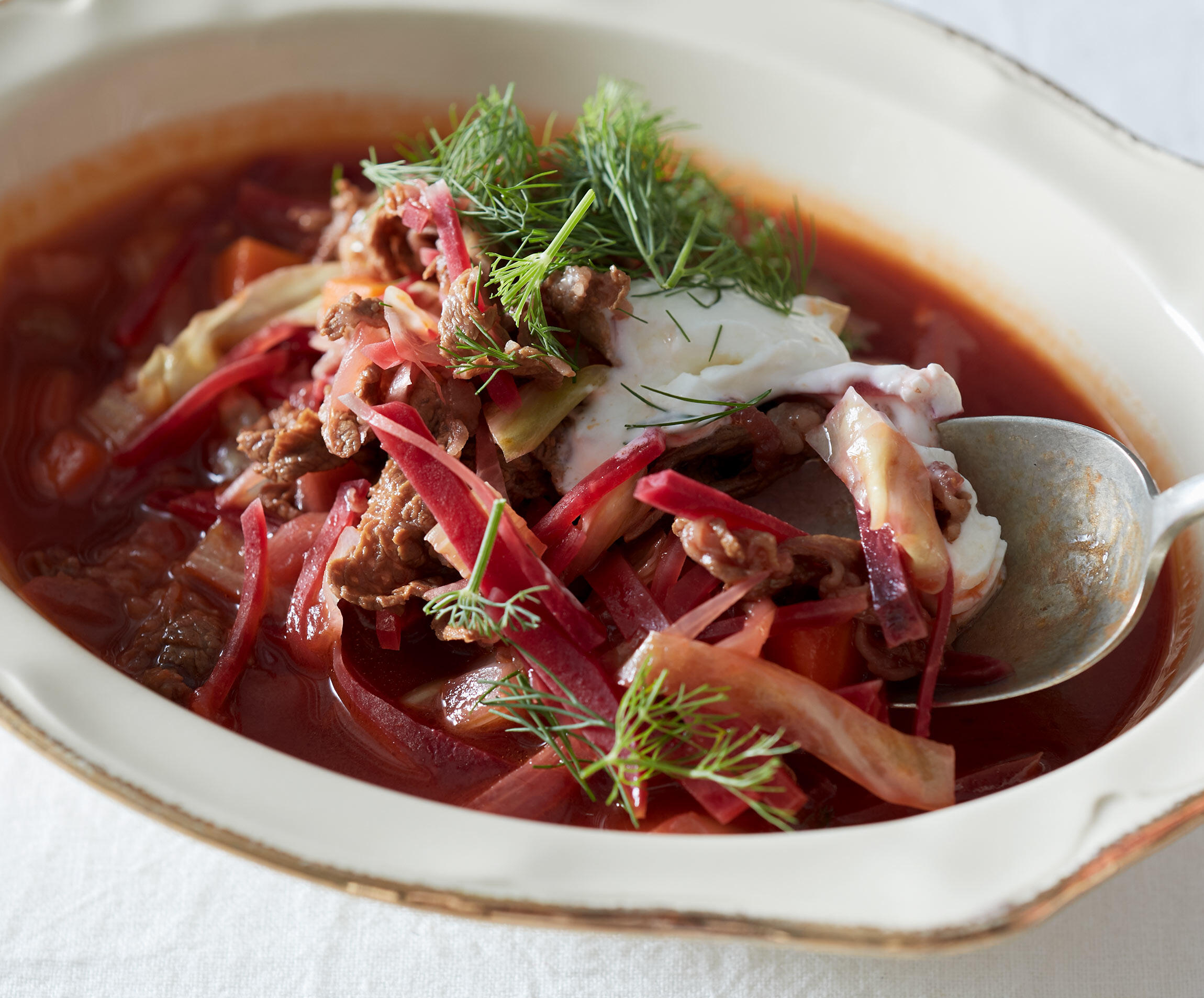 ロシアのおふくろの味。本格的に塊肉を煮込むものもありますがあっさりとシンプルなボルシチを、たっぷりつくるのがおすすめ。冬の日を暖かく軽やかに過ごしましょう。