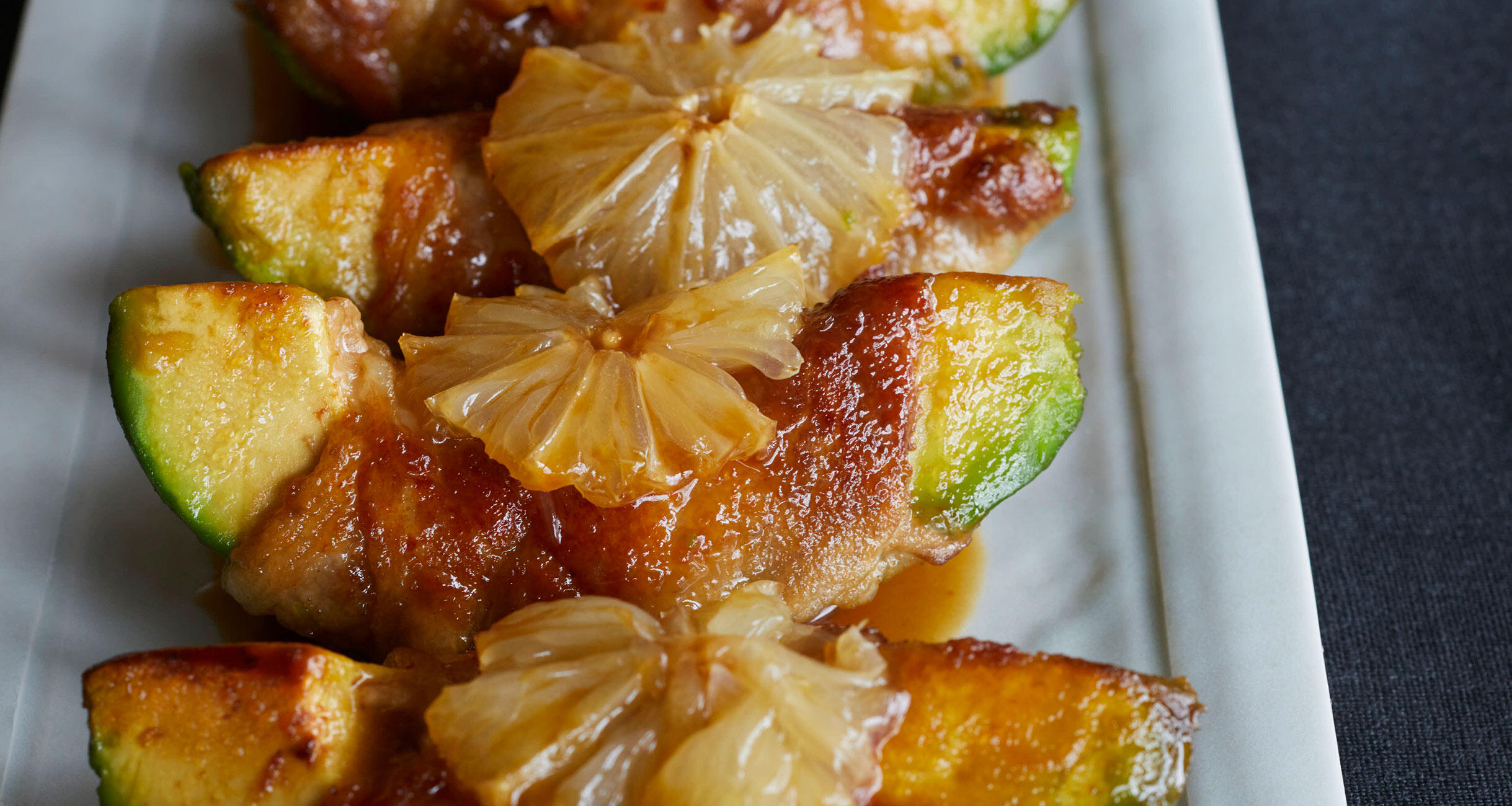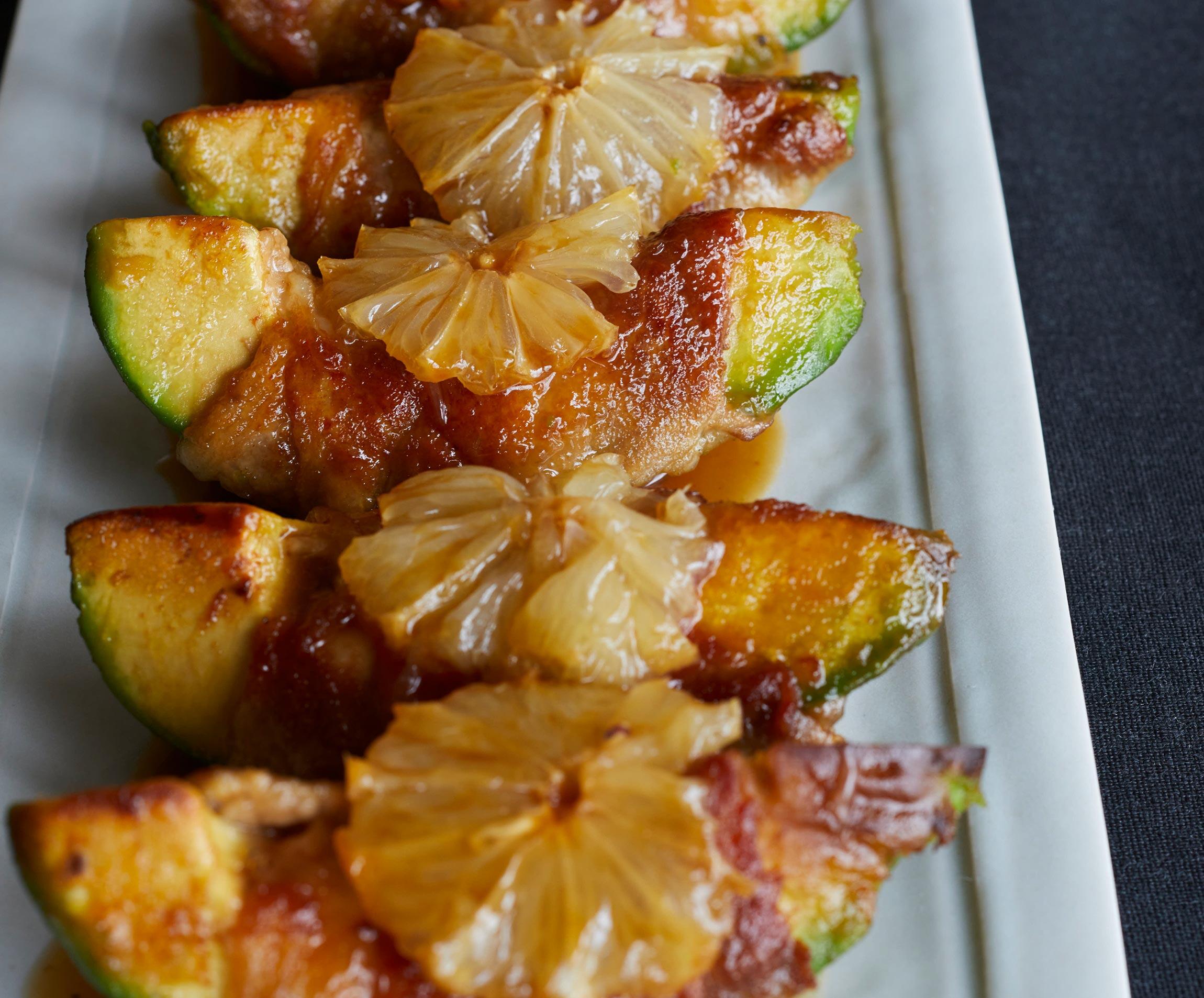 アボカドに豚肉を巻いて照り焼きに。予想どおり安定のおいしさです。味のポイントはレモン。輪切りにして具のひとつとして加えると、酸味が味わいを深くしてくれます。
