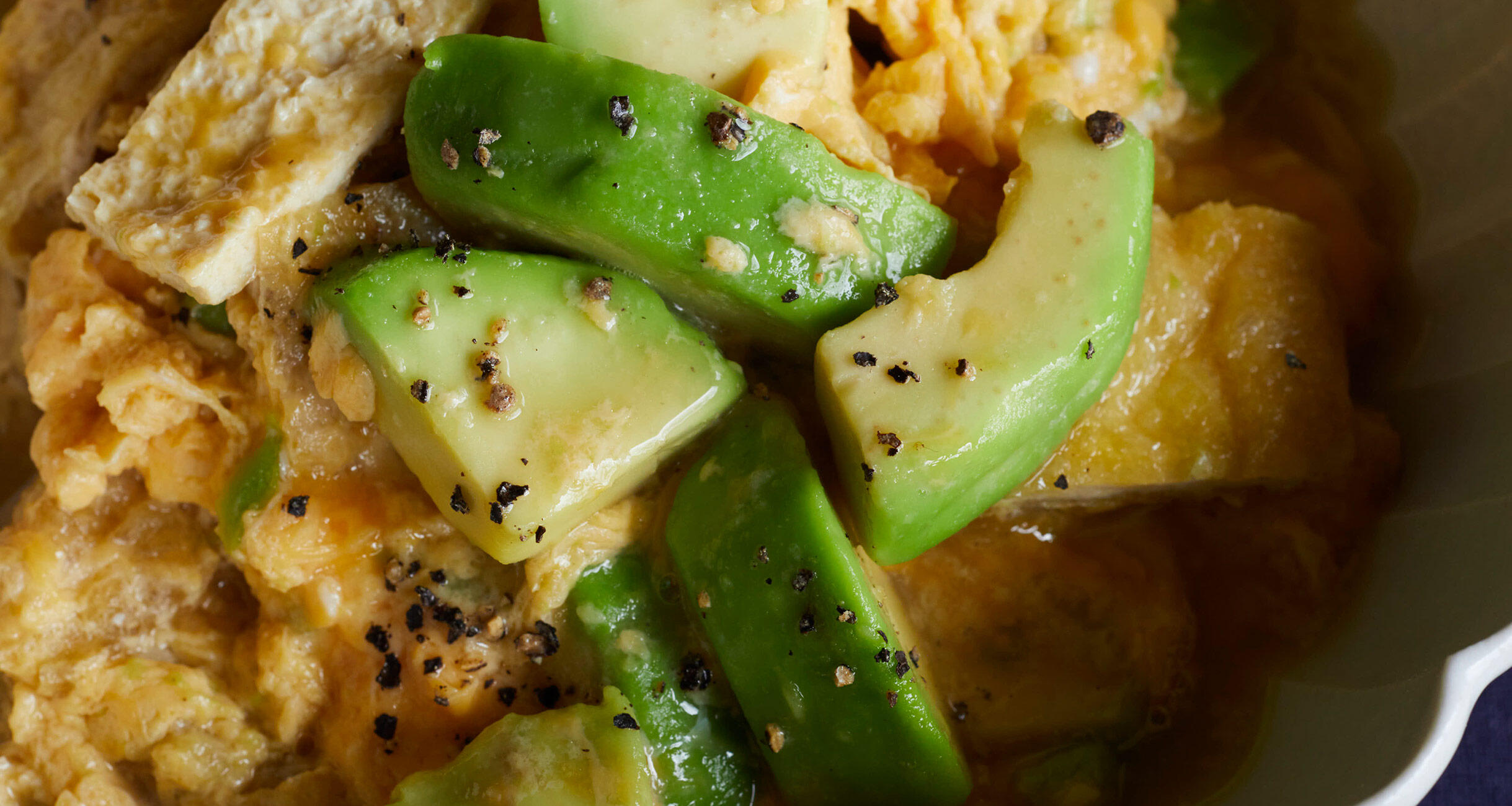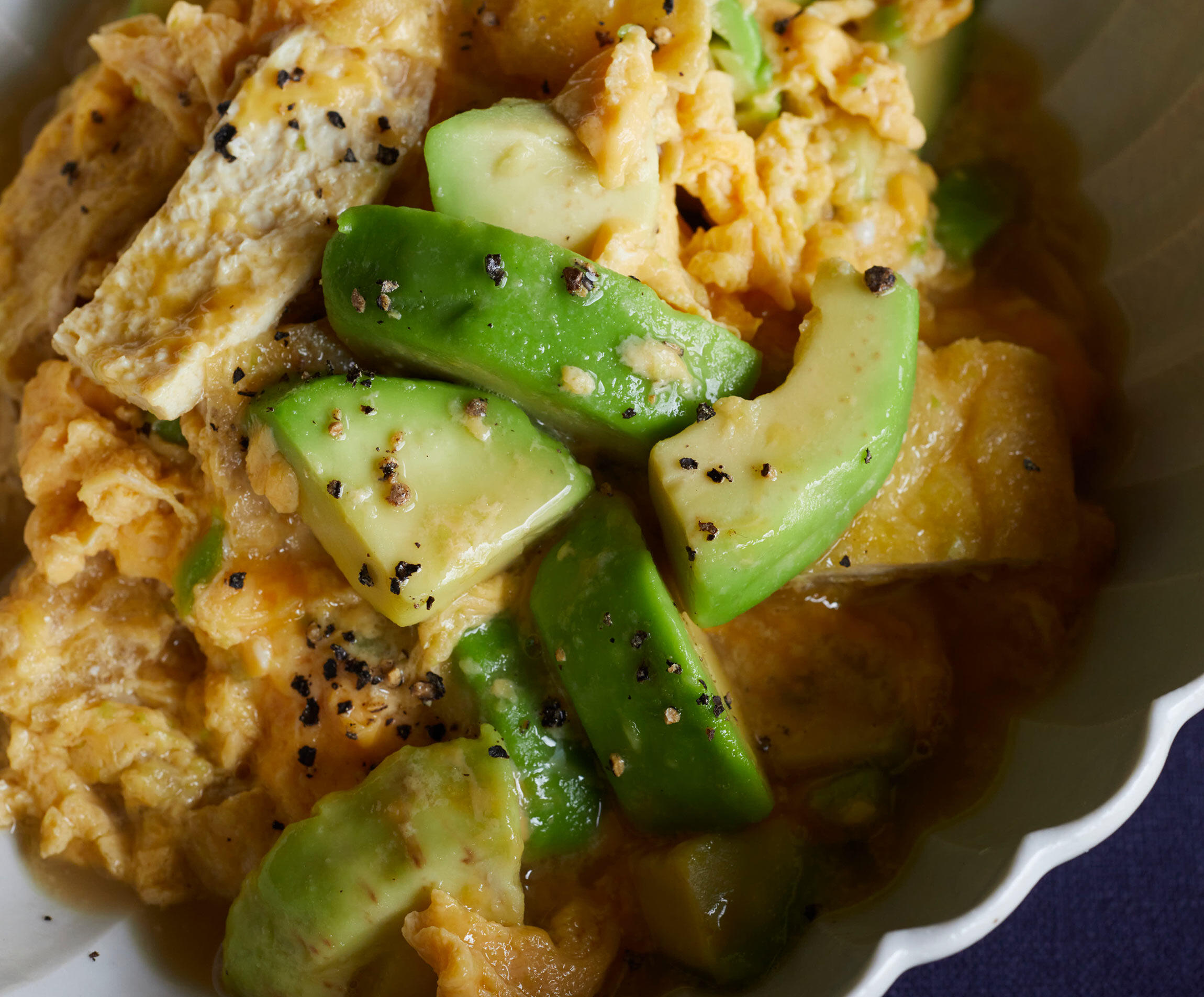 卵でとじることで、ボリューム満点のおかずになります!アボカドを「豆腐」のように使って、ご飯がすすむおかずに仕上げます。甘辛味はもちろん、焼いたり、煮たり、揚げたりと、いろいろな調理にオールマイティーに使えるアボカドレシピを、料理研究家の大庭英子先生に習いました。