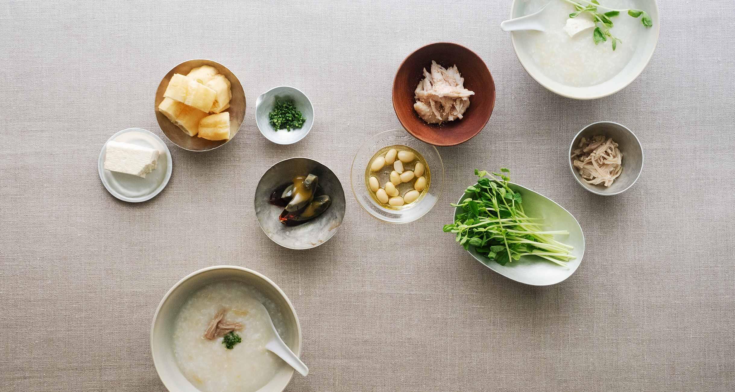 起き抜けのからだに染み渡る、中華粥のレシピです。器と料理の組み合わせを提案する店「カモシカ」を主宰するオカズデザインさんに、器の紹介と、その器を引き立たせる、目にも舌にもおいしいレシピを教わりました。
