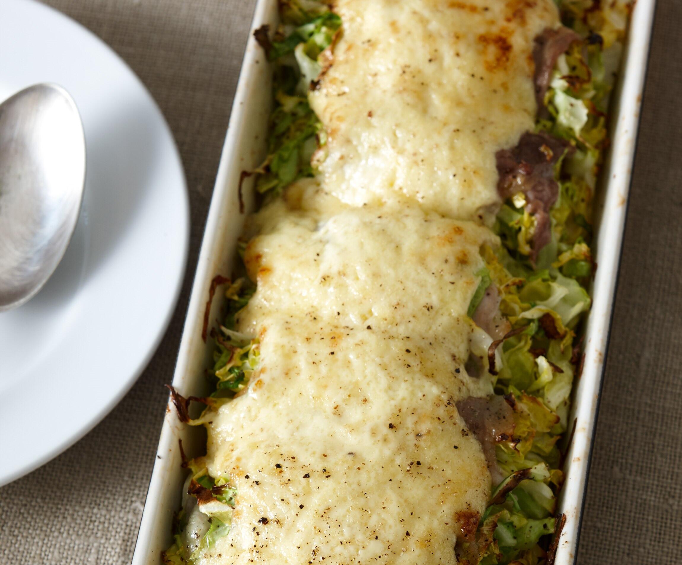 大庭さんお薦めのアイディアグラタンです。春キャベツはやわらかくて甘味もひときわ。ソースはチーズを活用して、簡単につくれます。定番のグラタンから、旬の野菜や季節の魚を使った個性あふれるレシピを大庭英子先生に教えてもらいます。自由自在なグラタンの世界をお楽しみください!