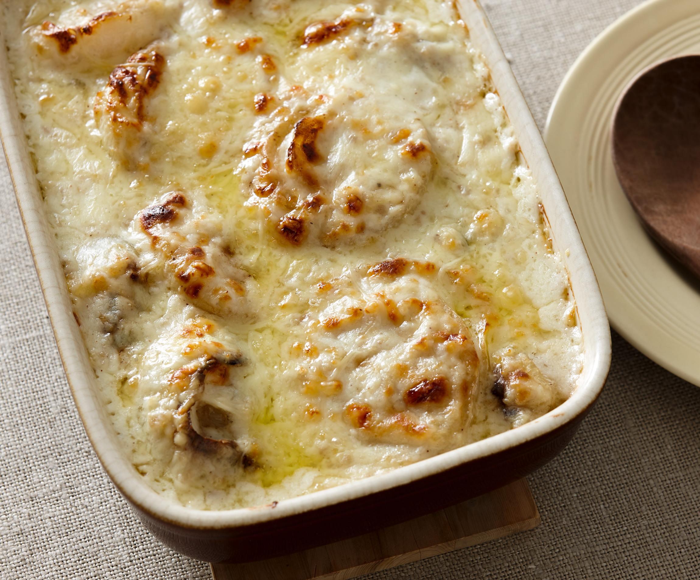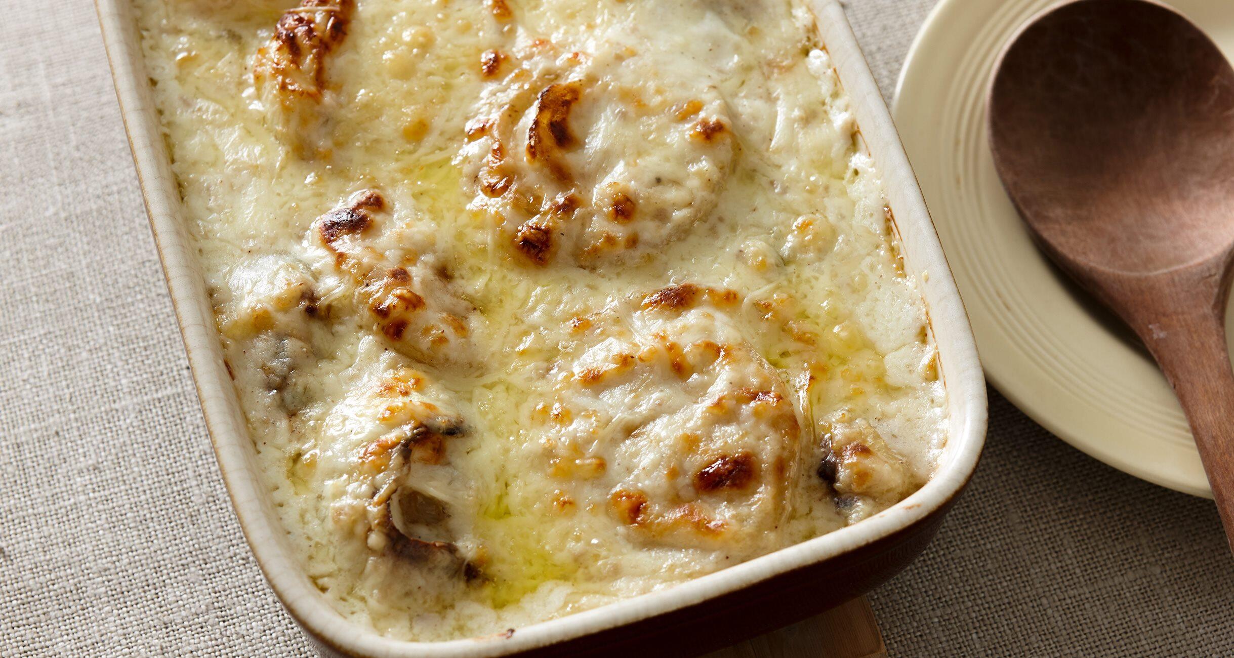 鶏挽き肉入りのホワイトソースを、甘味豊かな新玉ねぎにたっぷりからめたボリュームグラタンです。定番のグラタンから、旬の野菜や季節の魚を使った個性あふれるレシピを大庭英子先生に教えてもらいます。自由自在なグラタンの世界をお楽しみください!