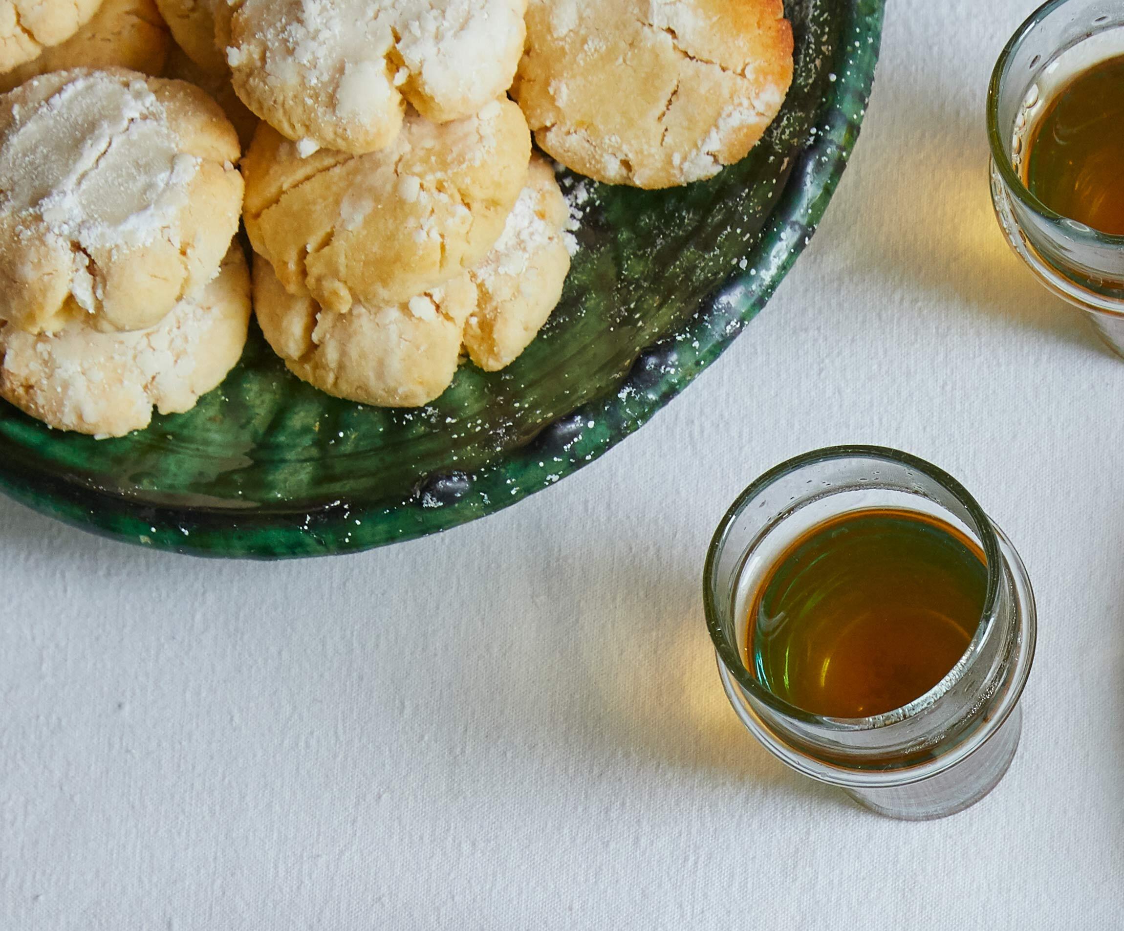 モロッコでは朝ごはんとして食べることが多いゴリバ。アーモンドの香ばしさと素朴な甘味が楽しめるクッキーと、熱々のミントティーがしみます。