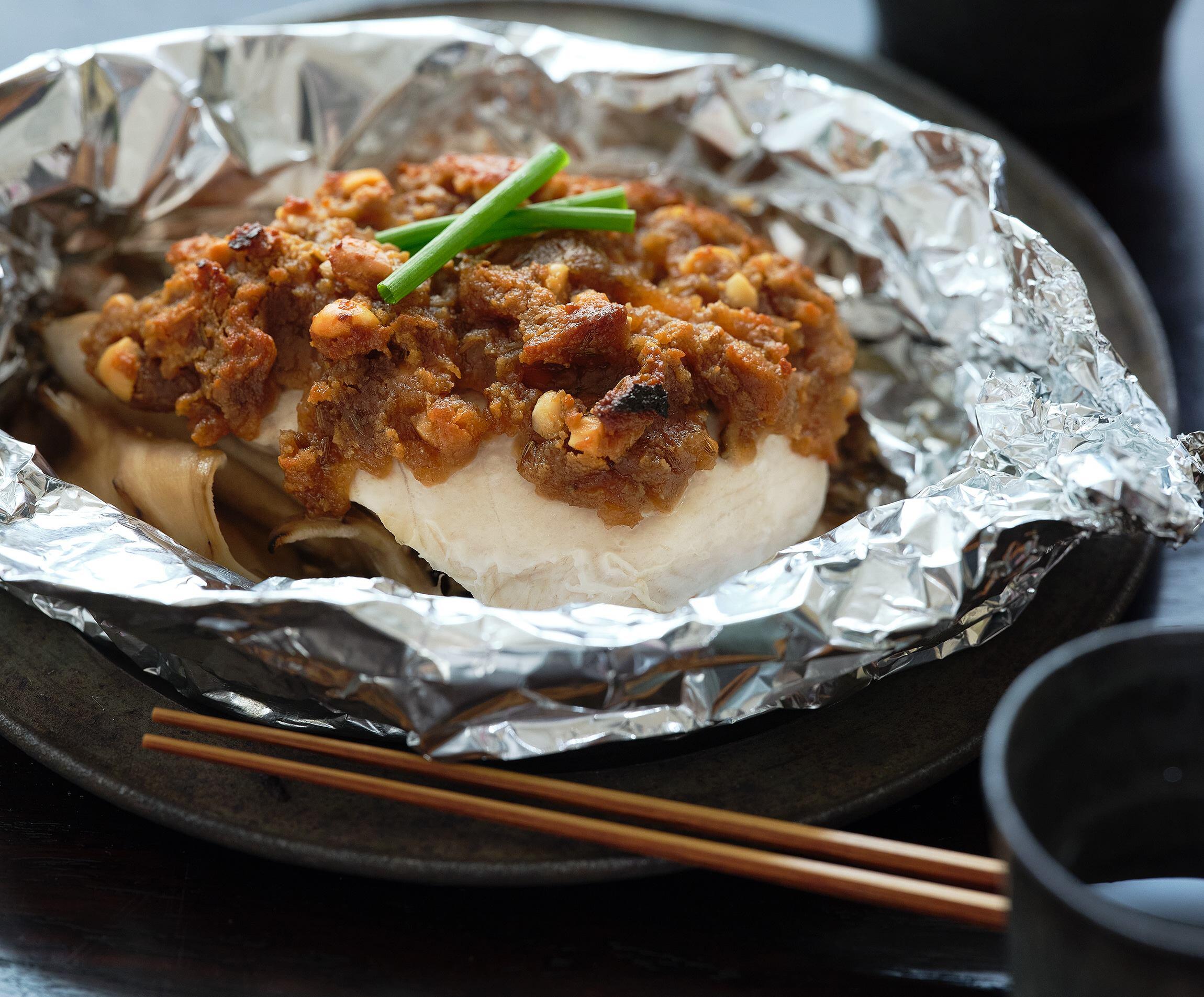 アルミホイルで全体を包み、魚焼きグリルやオーブントースターで15分ほど焼く。焼き上がりにアルミホイルを開けて少し焼き、表面に香ばしい焼き色をつける。