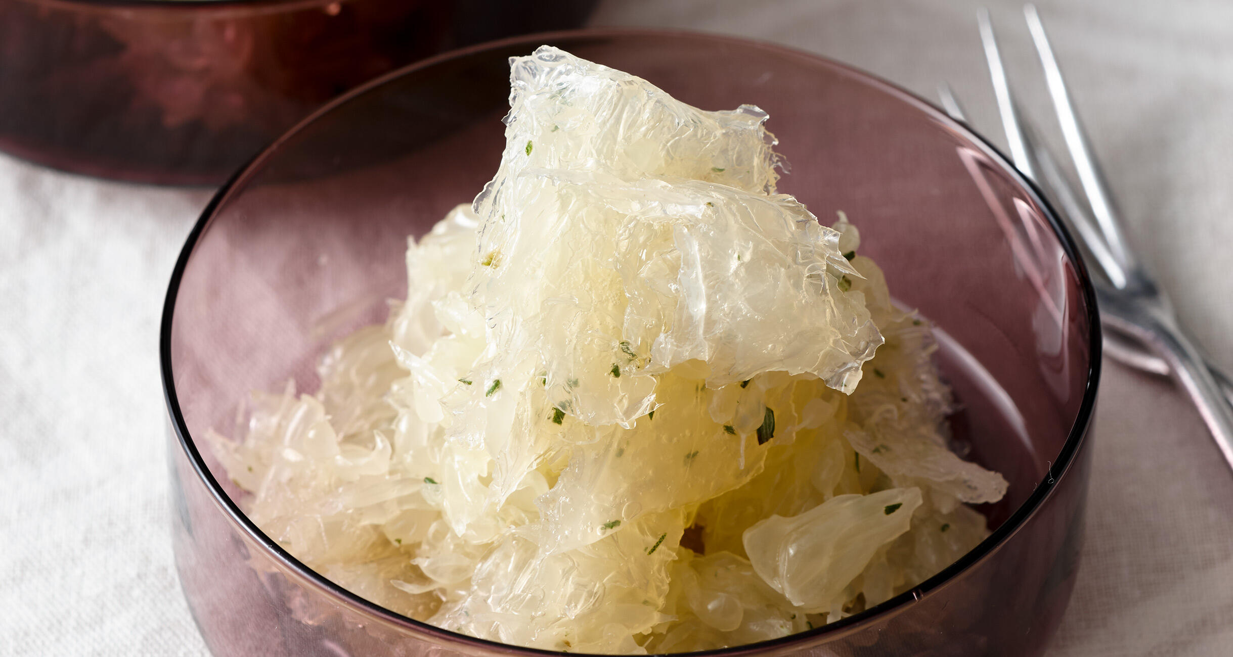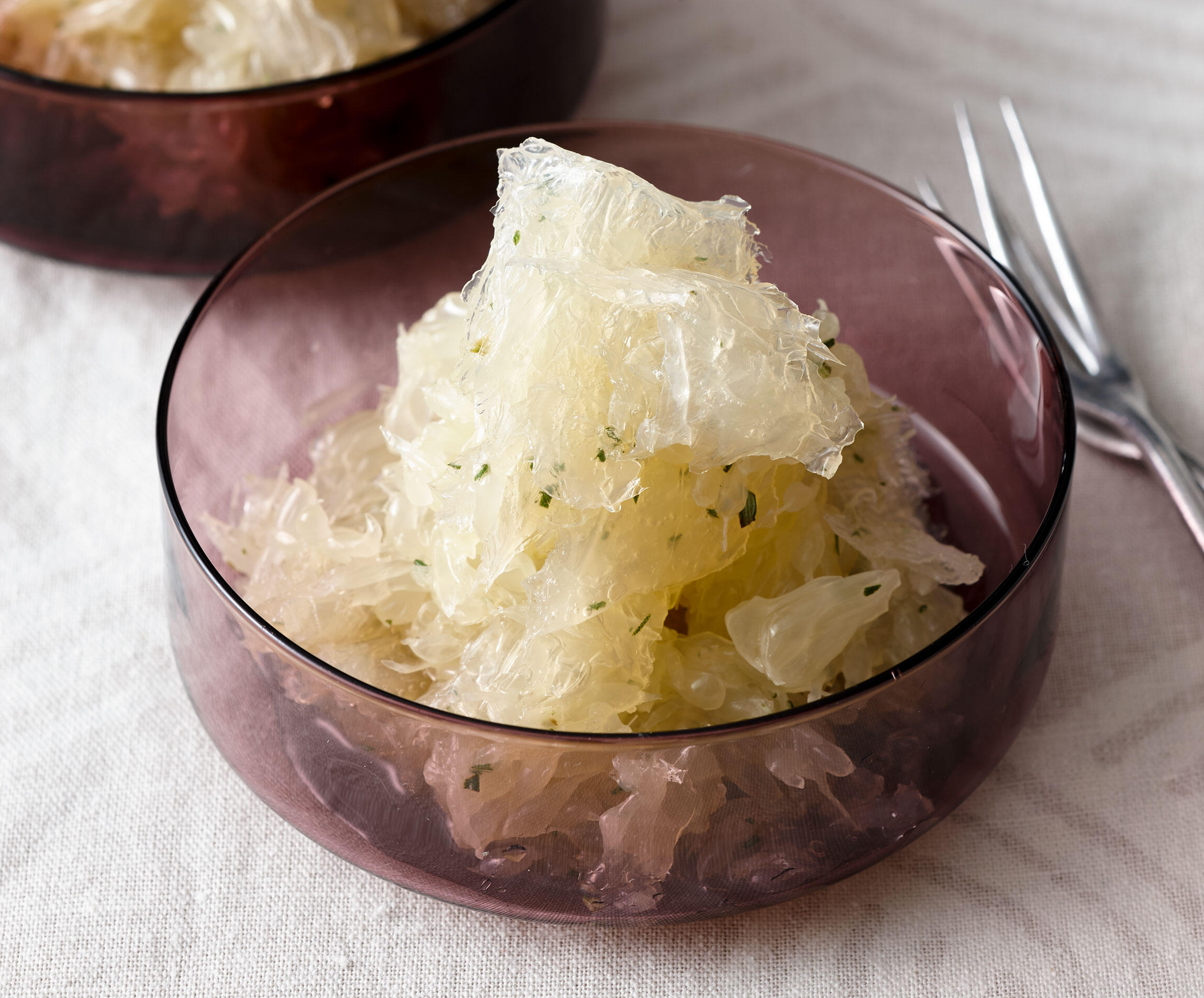 寒天とグレープフルーツが渾然一体となった不思議なビジュアル。口の中で察知した寒天の存在に改めて感動。