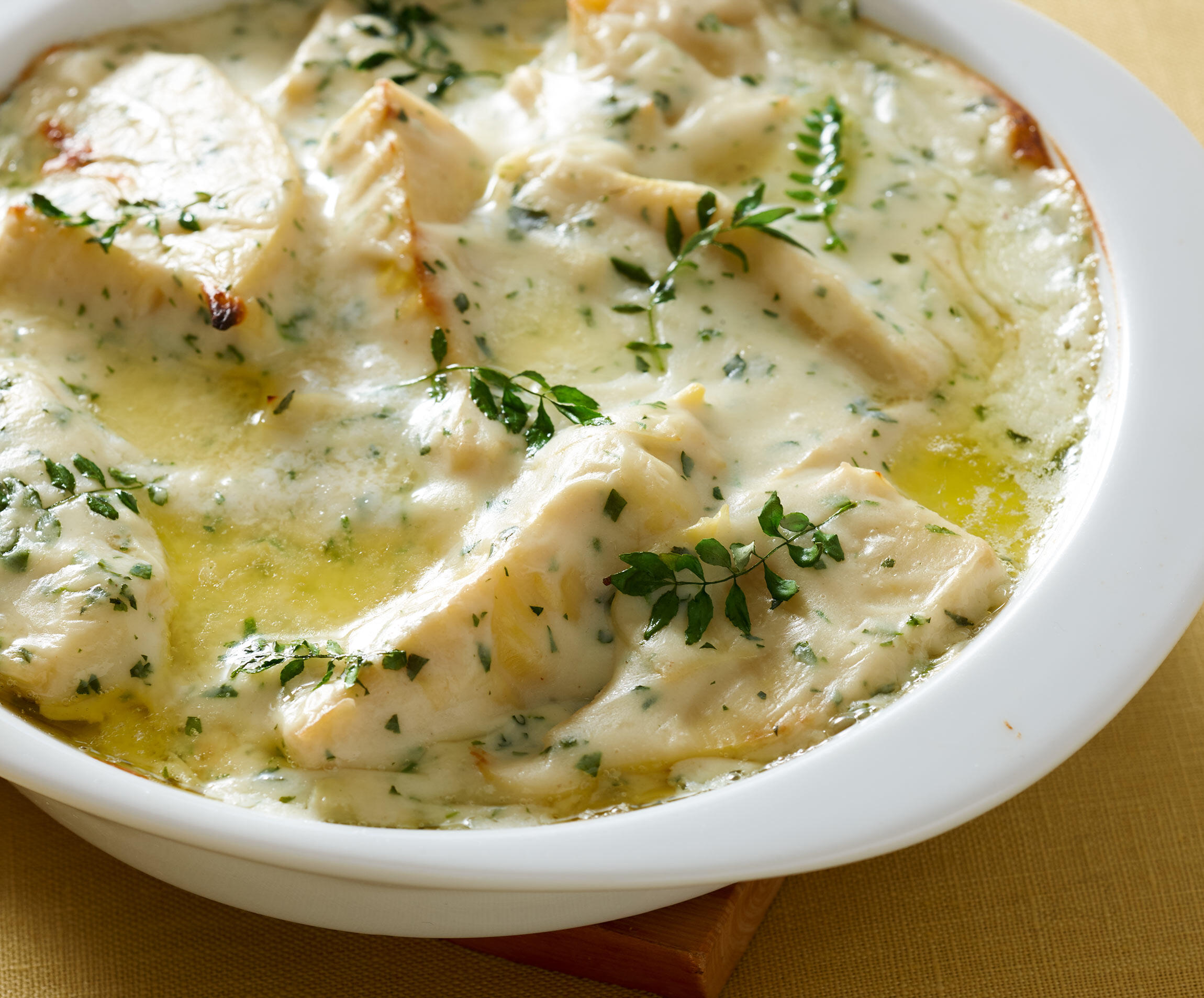 旬の野菜使いは絶妙な料理研究科・大庭英子さんに教えてもらった一品です。たけのこの歯ざわりを活かした、味噌風味のホワイトソースでつくるグラタンです。木の芽とたけのこの香りが合わさり、春の風味を存分に楽しむことができます。