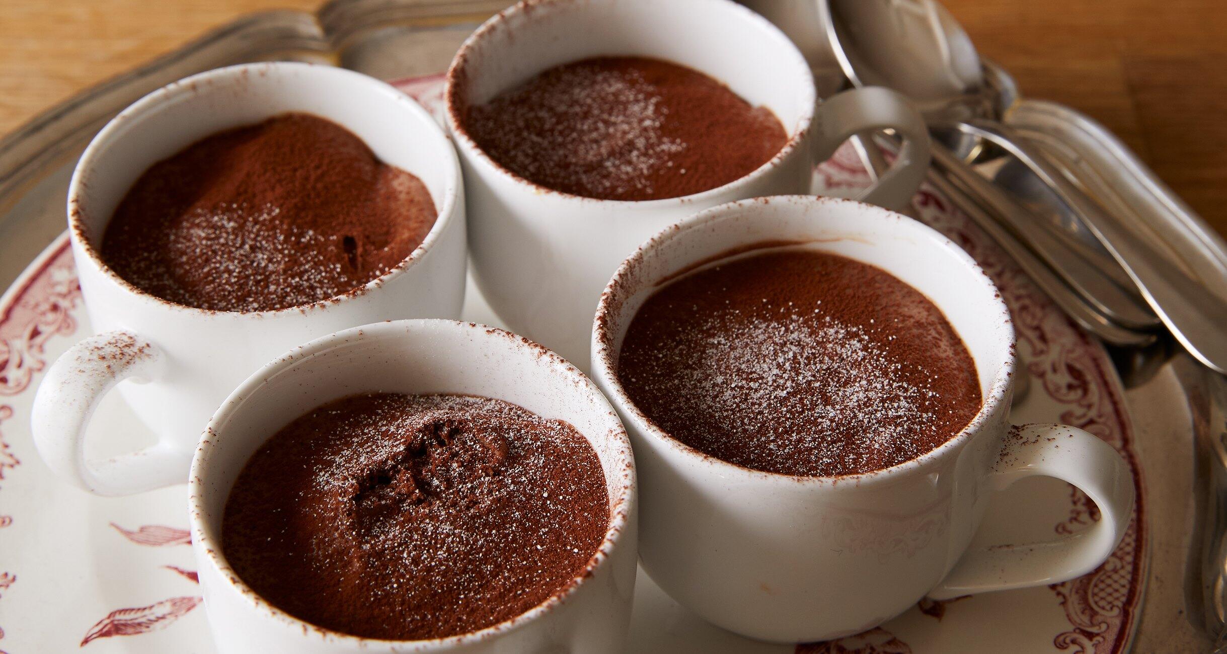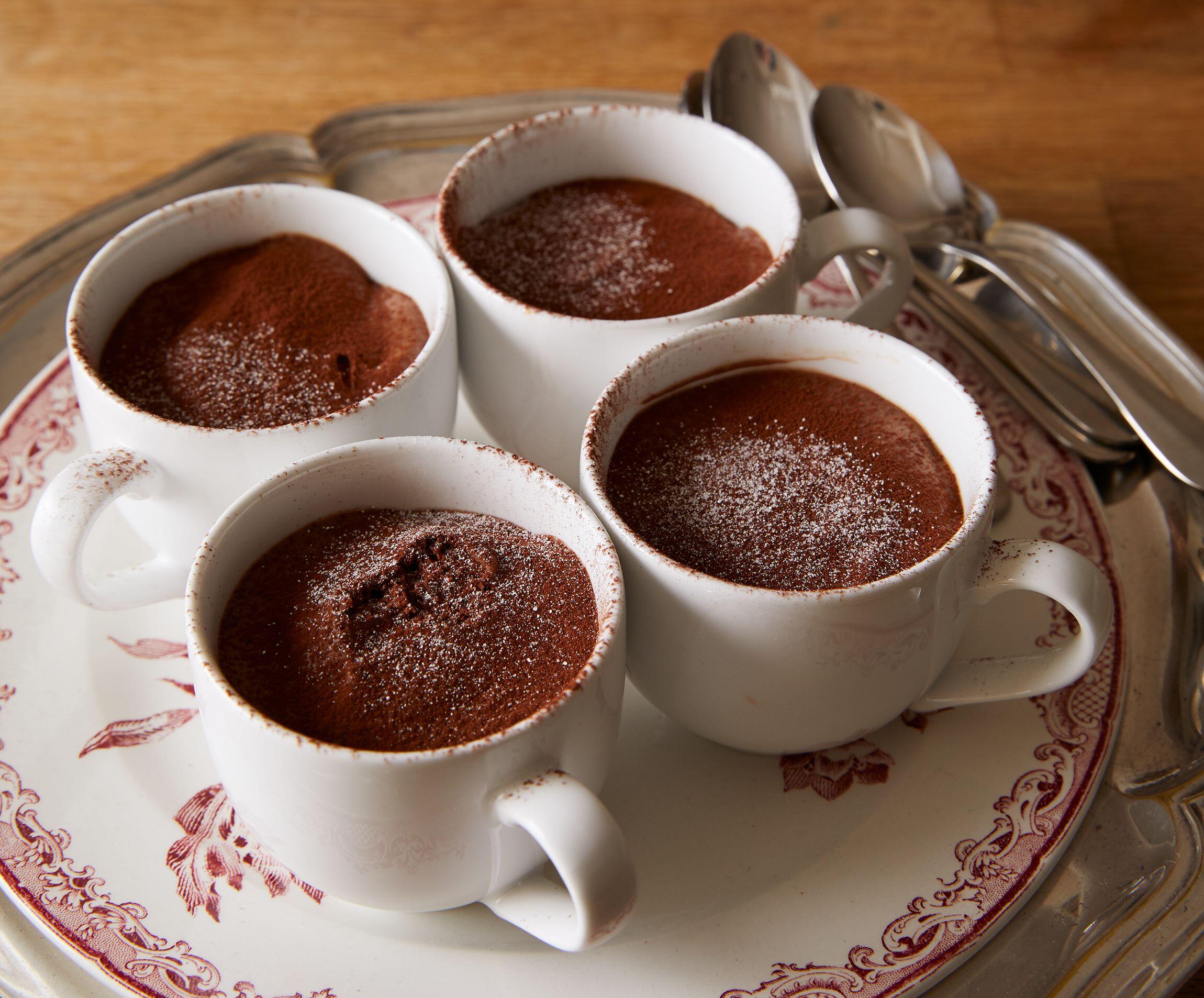4を食べる20分前に冷蔵庫から取り出し、表面にカカオパウダーをふり、粉砂糖をふる。