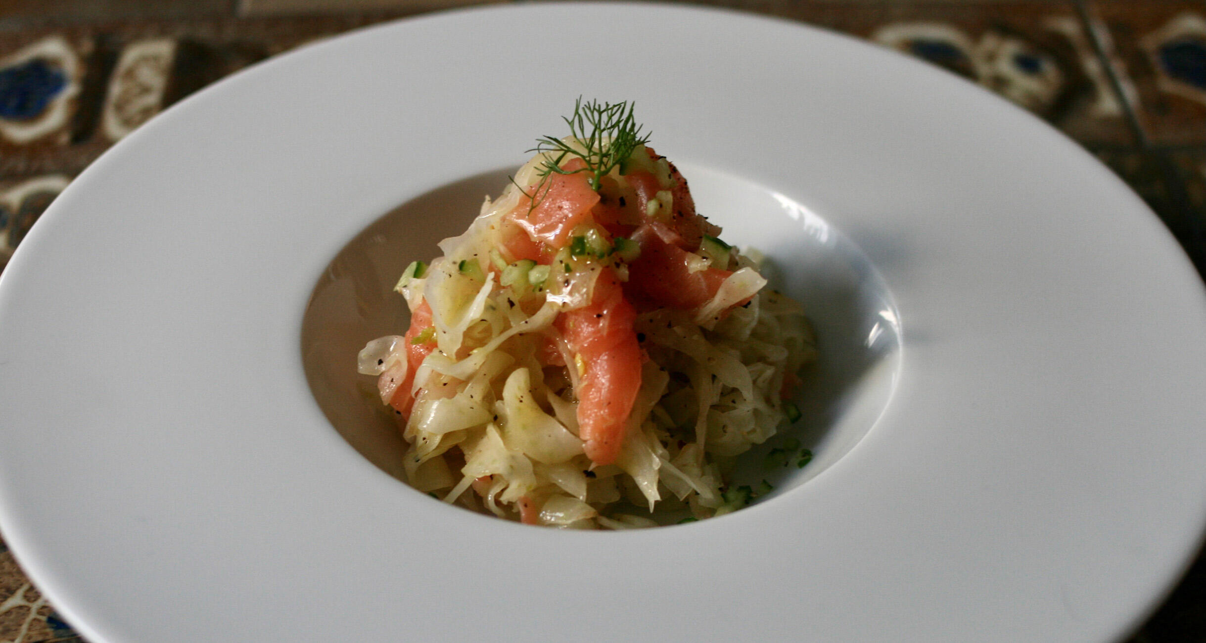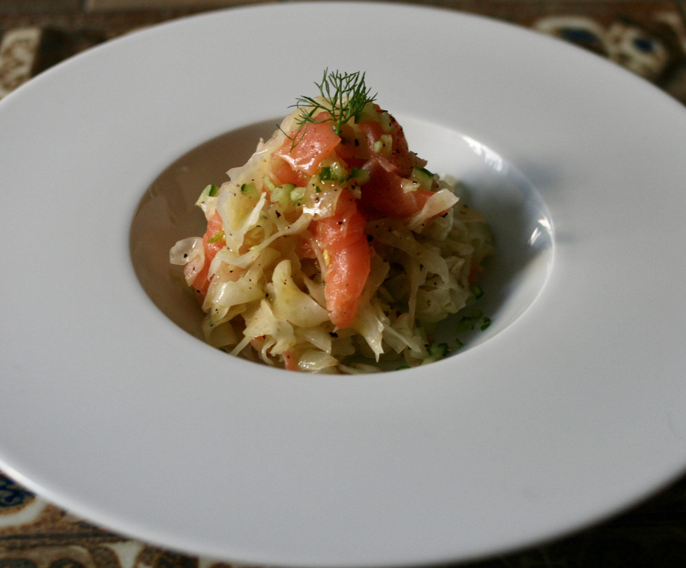 ということで、今日、ご紹介する「フェンネルとスモークサーモンのサラダ」はそこから始まって、たどり着いたレシピである。