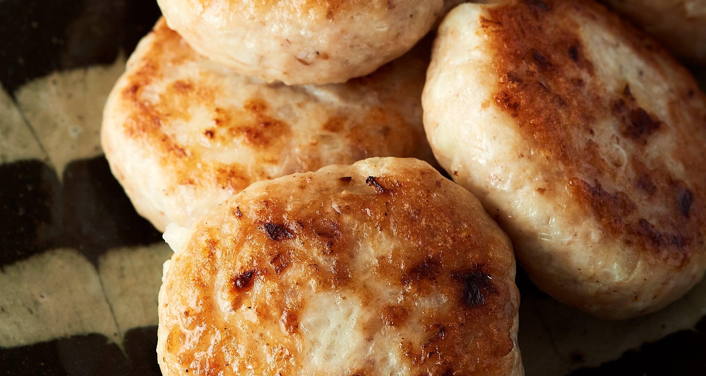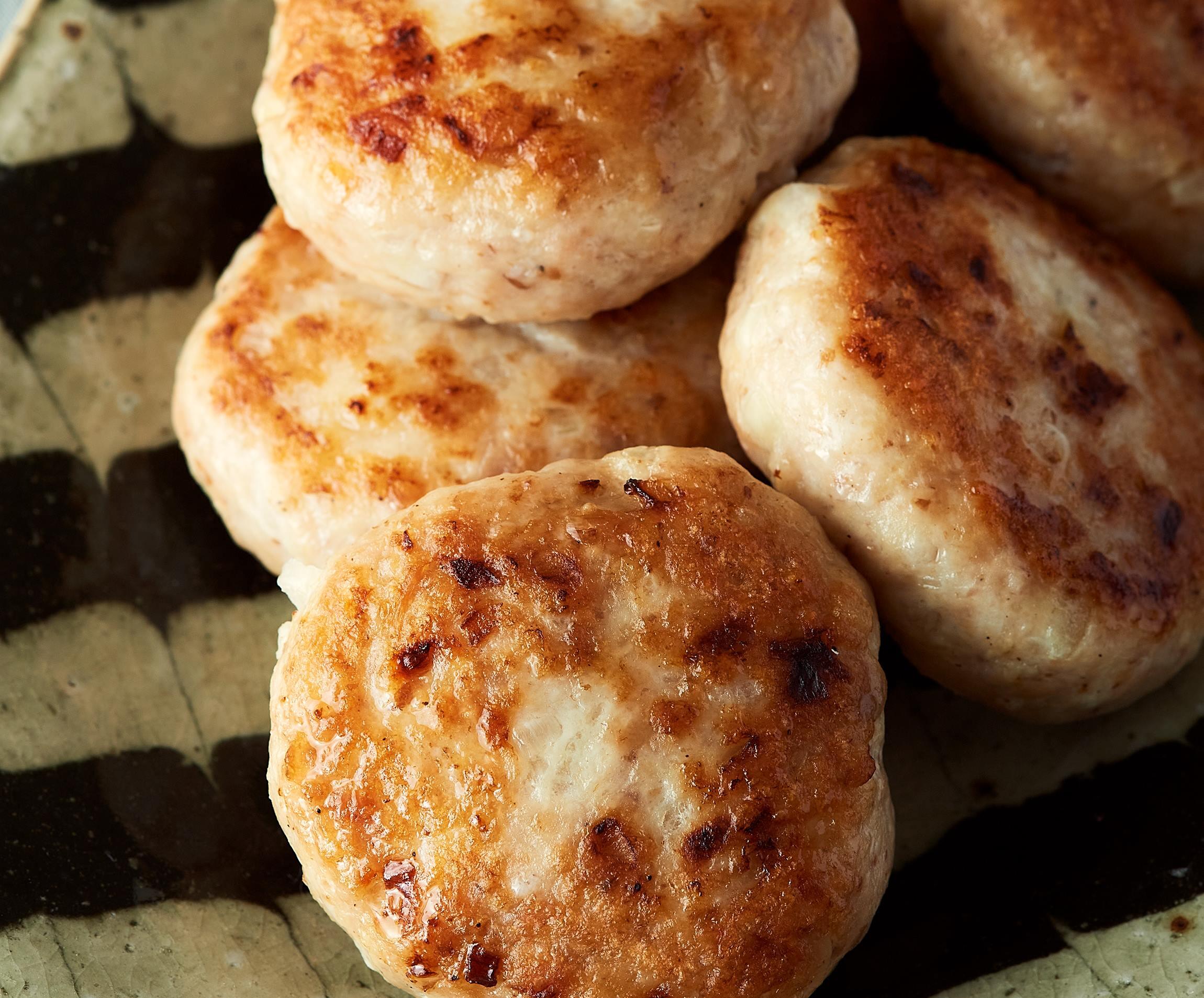 つくねのたねを丸めるときに手にくっついて丸めにくいので、手のひらに油を少しつけながら円盤状にすると成形しやすい。