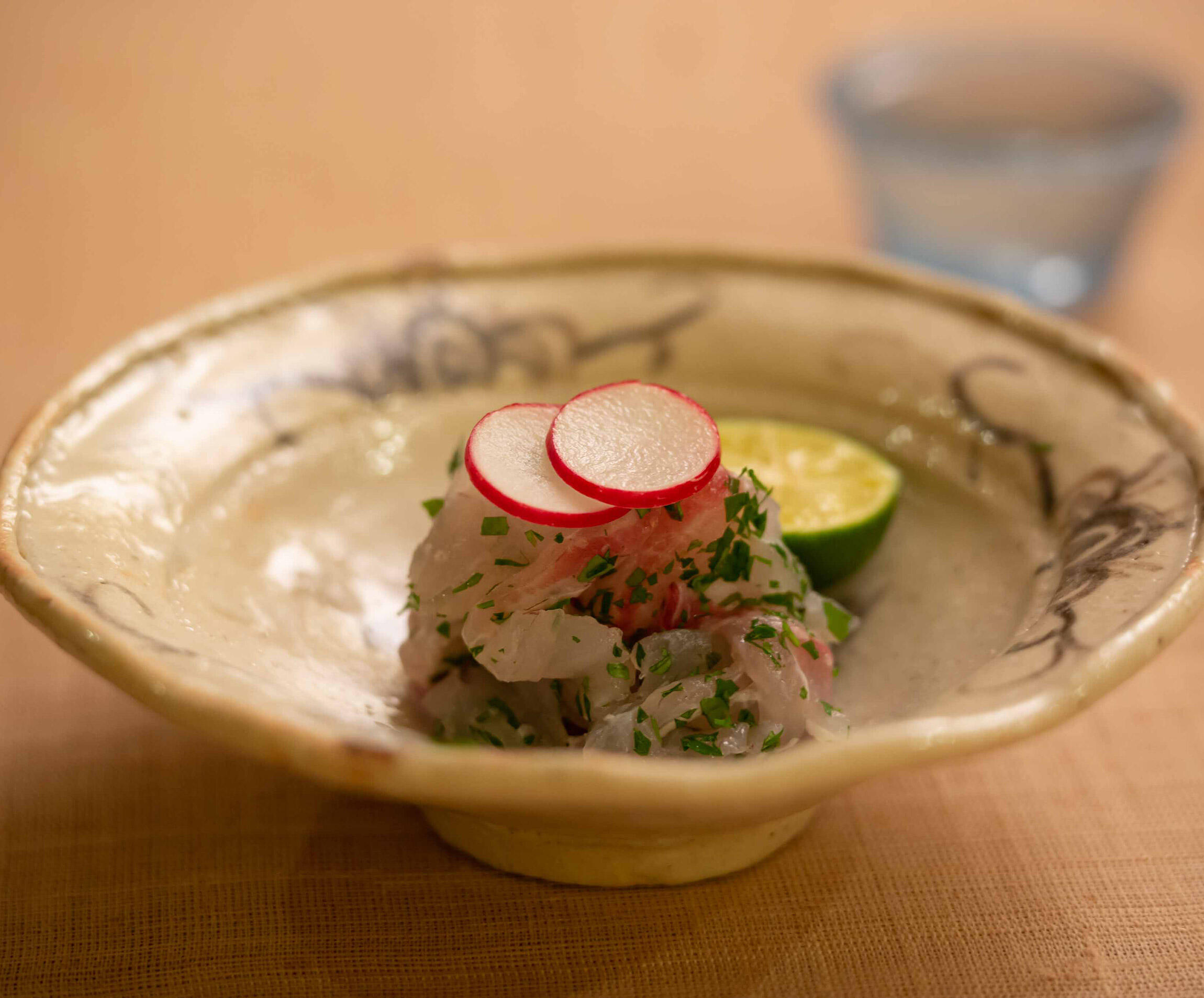 すだちを添え、あればラディッシュの輪切りをあしらう。