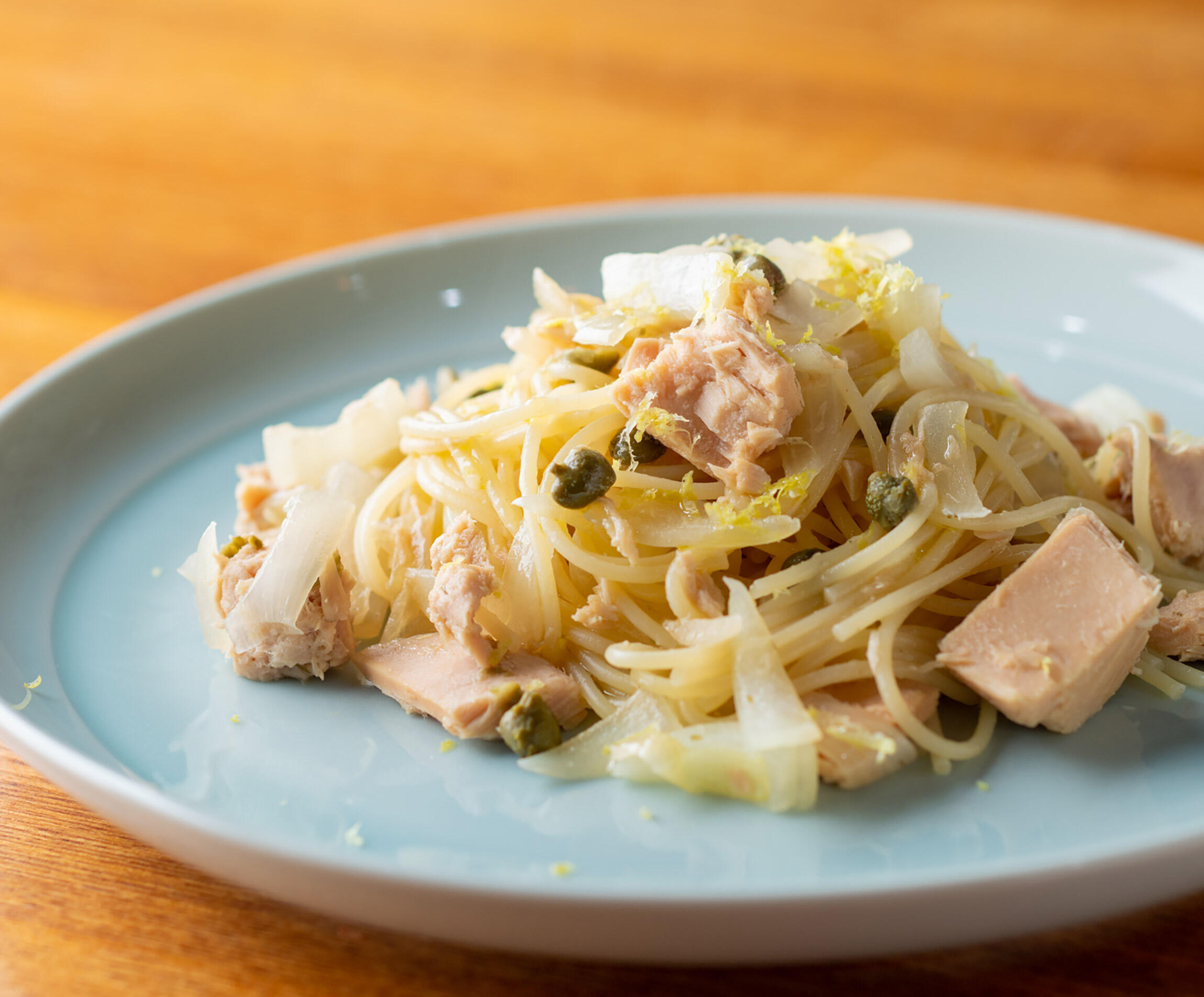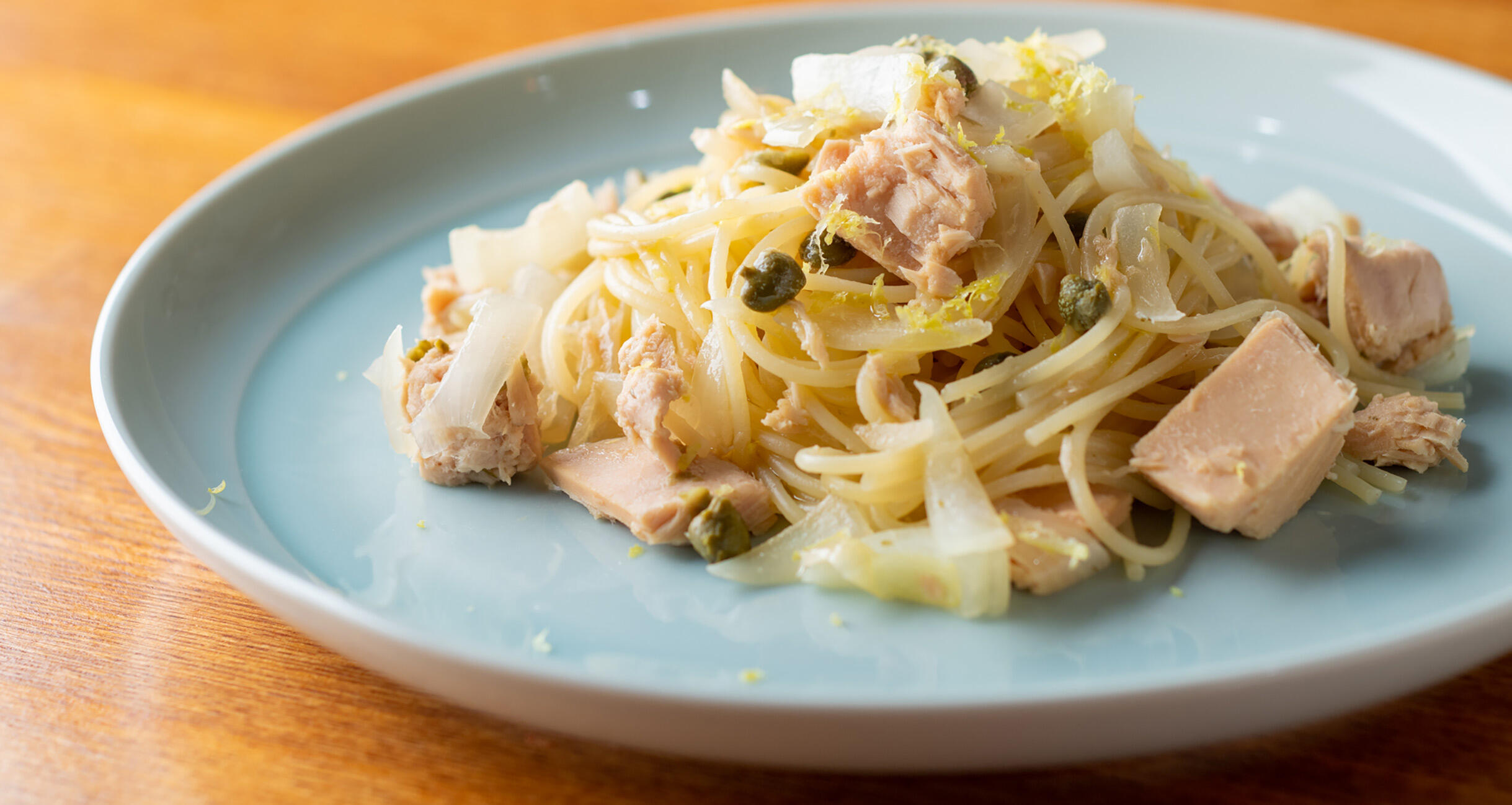 イタリア留学中や、日本に帰国してすぐの頃、よく食べたのがこのパスタ。冷蔵庫に何もない時だって、ツナ缶と玉ねぎはある。後はちょっとのケイパーがあれば良い。
