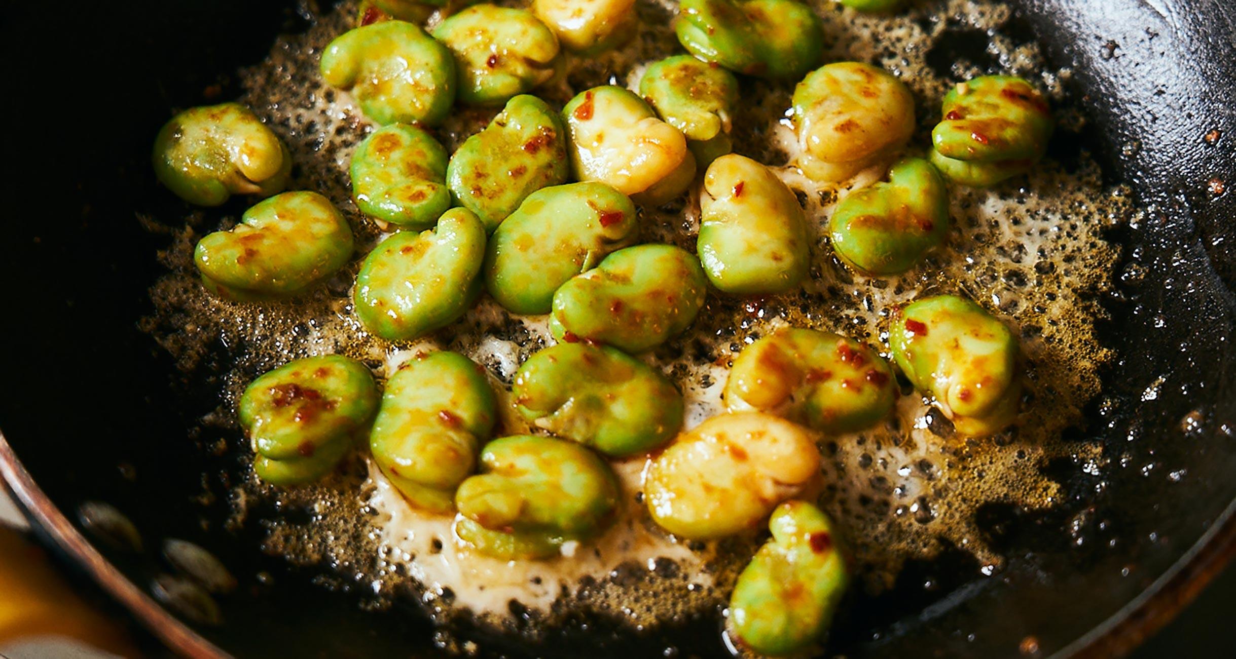 モロッコ料理研究家の口尾麻美さんに教わったレシピです。そら豆の甘味とにんにく、スパイスの風味が合わさり、満足感があるペーストに仕上がります。後を引く味わいなので、パンをもりもり食べてしまいます。