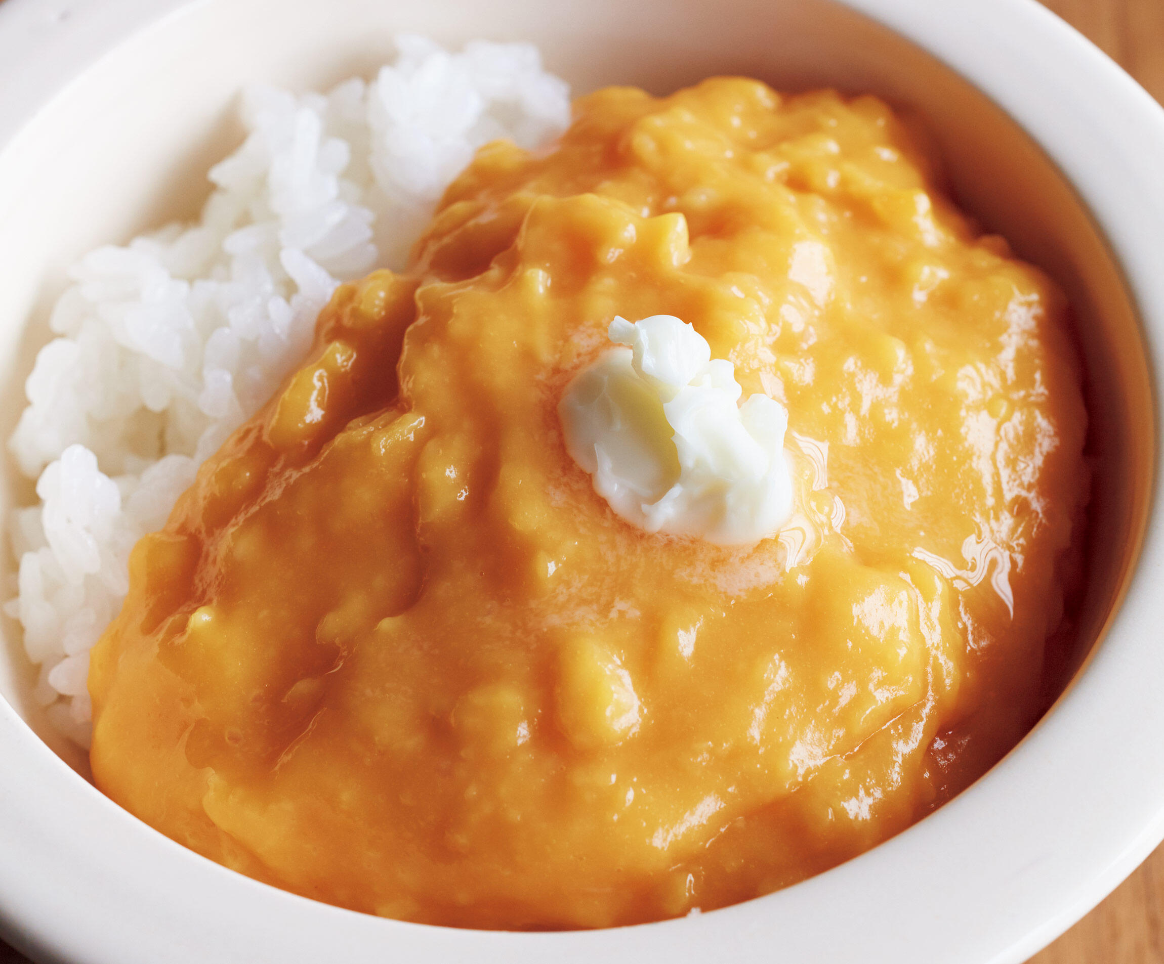 湯煎でゆっくりと仕上げた本格派のスクランブルエッグが、とろとろとご飯にからむ。まさに、進化形卵かけご飯。一口含むだけで、バターと卵が醸す、まったりとした舌ざわりとふくよかな味わいに陶然……。これぞ、どんぶり界の輝けるプリンセス!