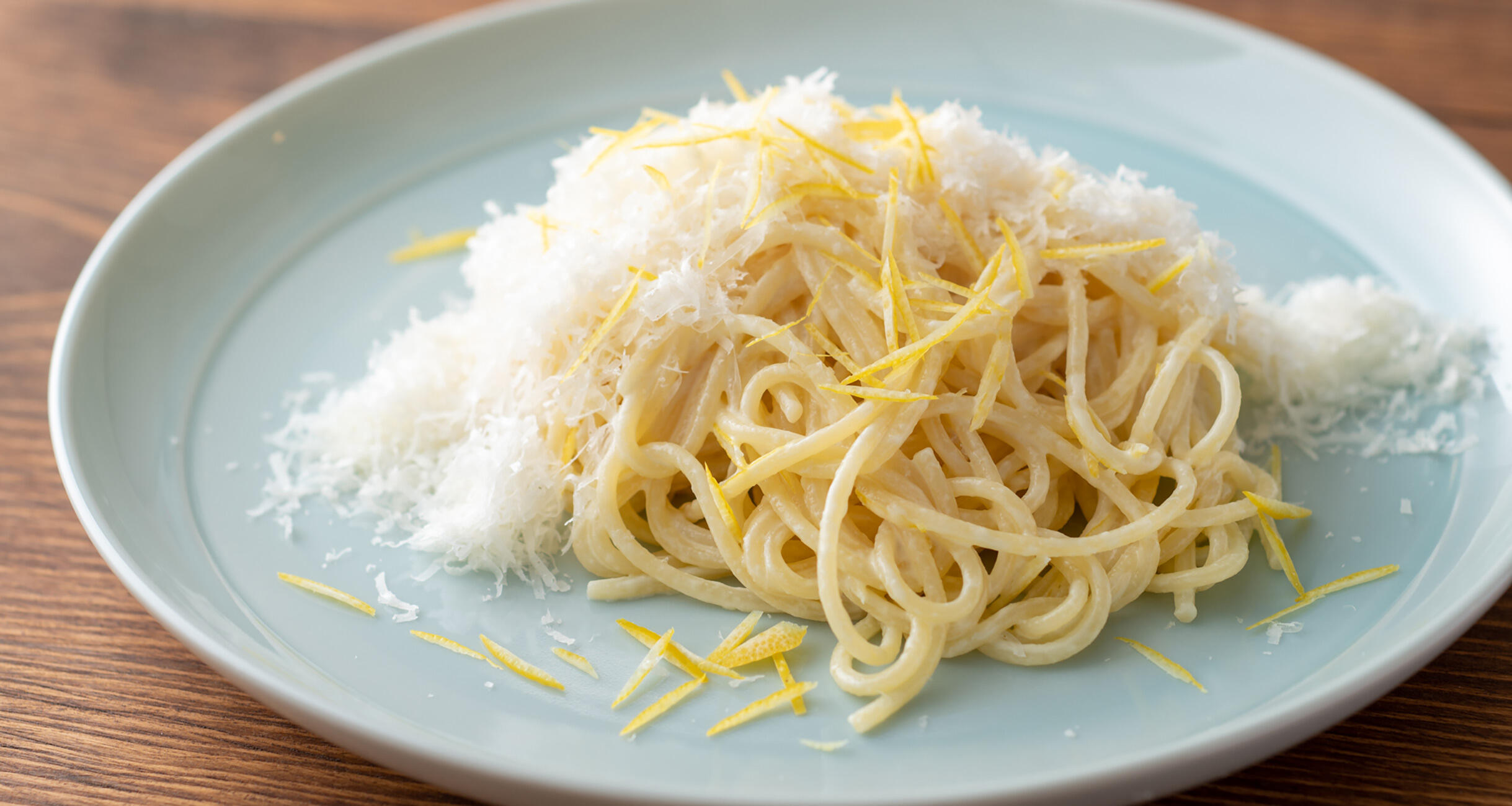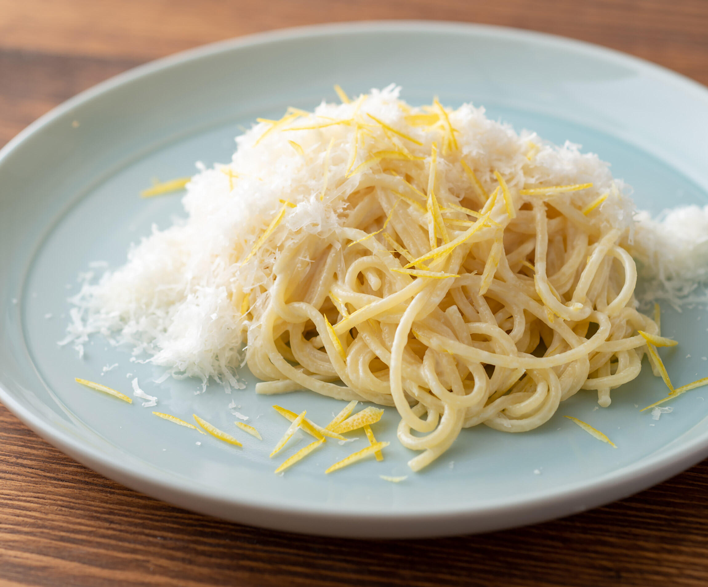 器に盛り、レモンの皮とグラナパダーノチーズをふりかけて完成。