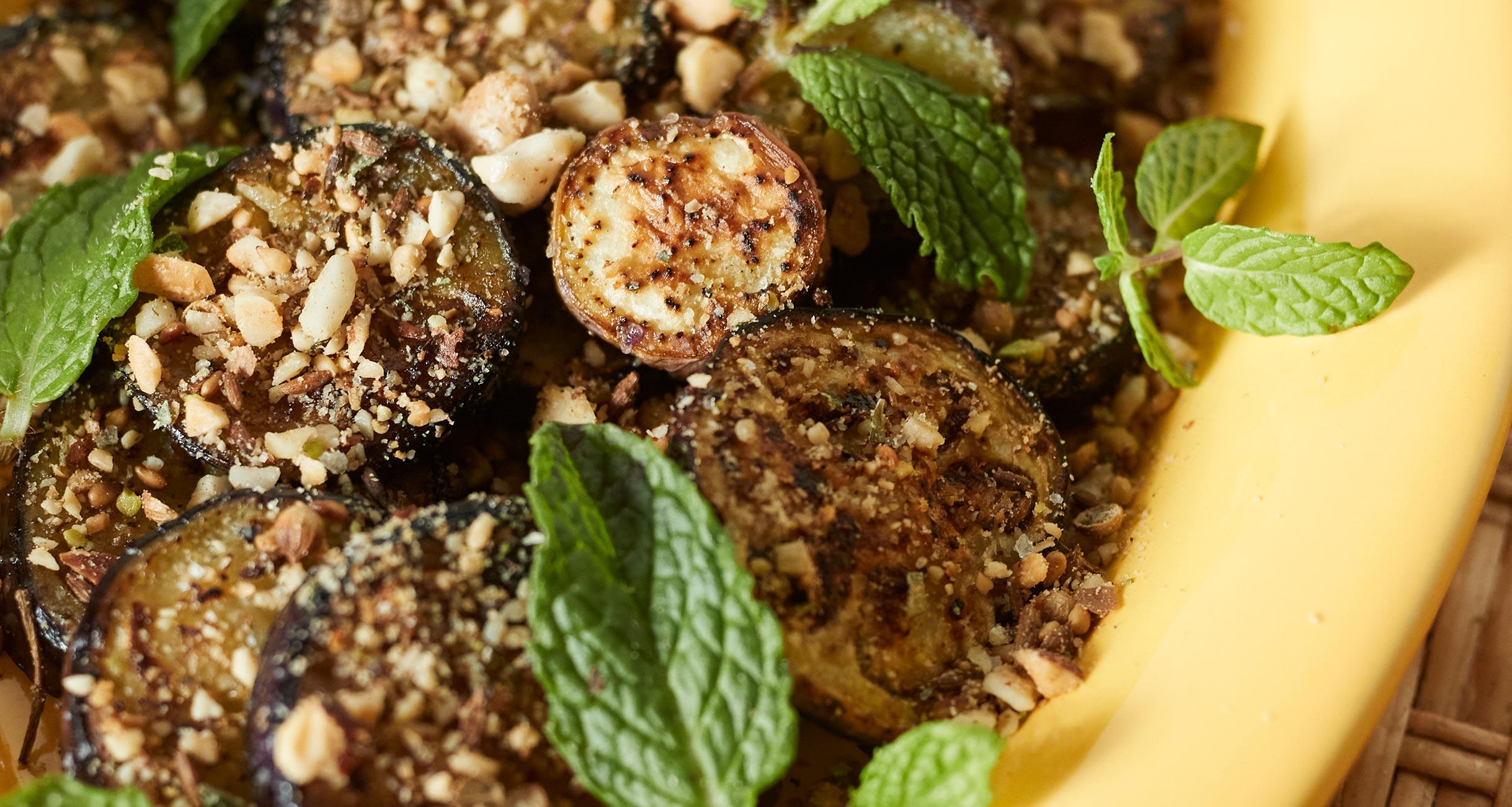 ジューシーにソテーしたなすに、スパイスたっぷりのデュカを振りかければ、見た目も可愛くテーブルを賑わす一品に。ピリッとしたスパイスや爽やかなハーブをつかった夏にぴったりの料理を、料理家の小堀紀代美さんに教えてもらいました。