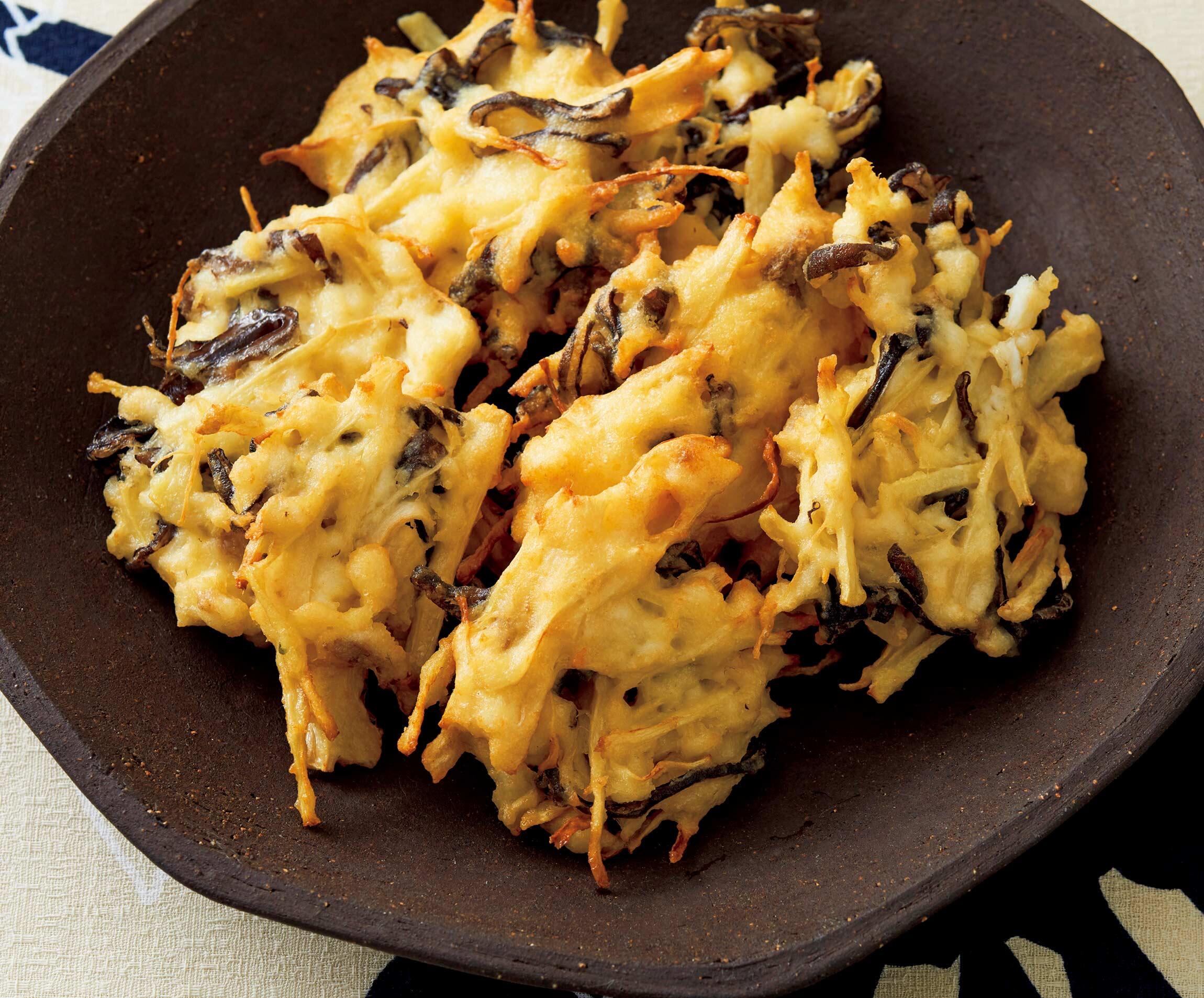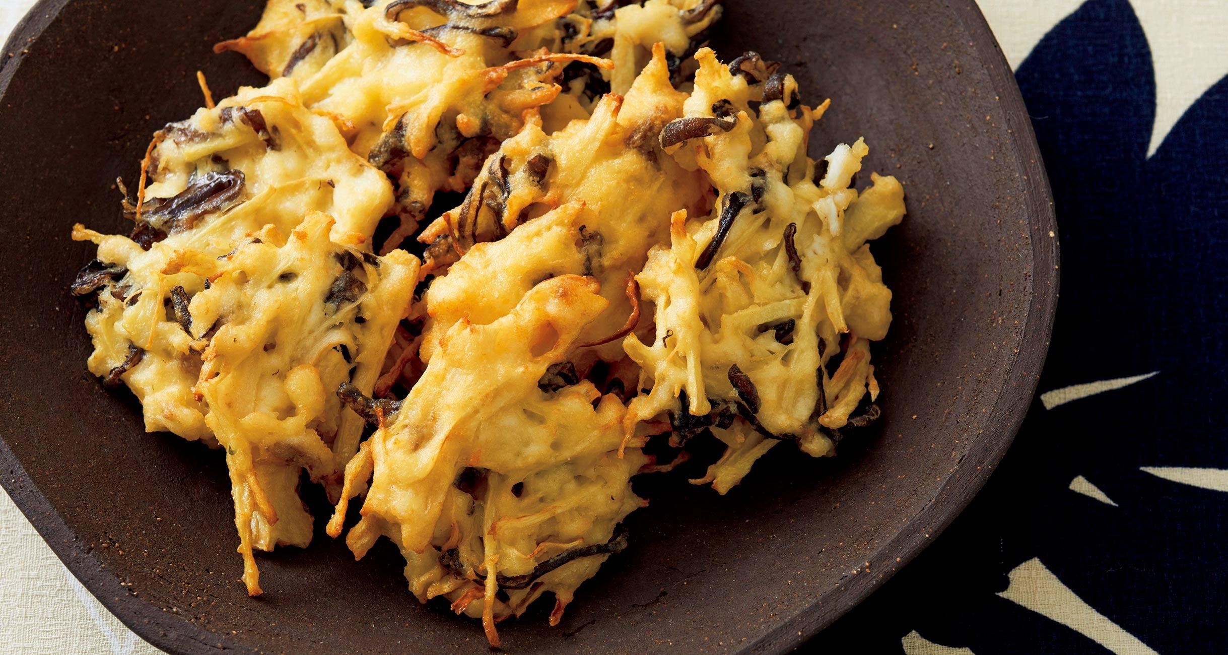 お好きな具材を入れて揚げる寄せ上げ。今回は白身魚と新生姜の辛味が旨い主役の大人の寄せ上げです。揚げ物をカラッとサクサクに仕上げるには、マヨネーズを活用しましょう!衣にマヨネーズを加えると、マヨネーズに含まれる油の温度が上がって衣にある水分が蒸発し、サクッと仕上がります。マヨネーズ衣でつくる揚げ物料理を料理研究家の大庭英子先生に習いました。