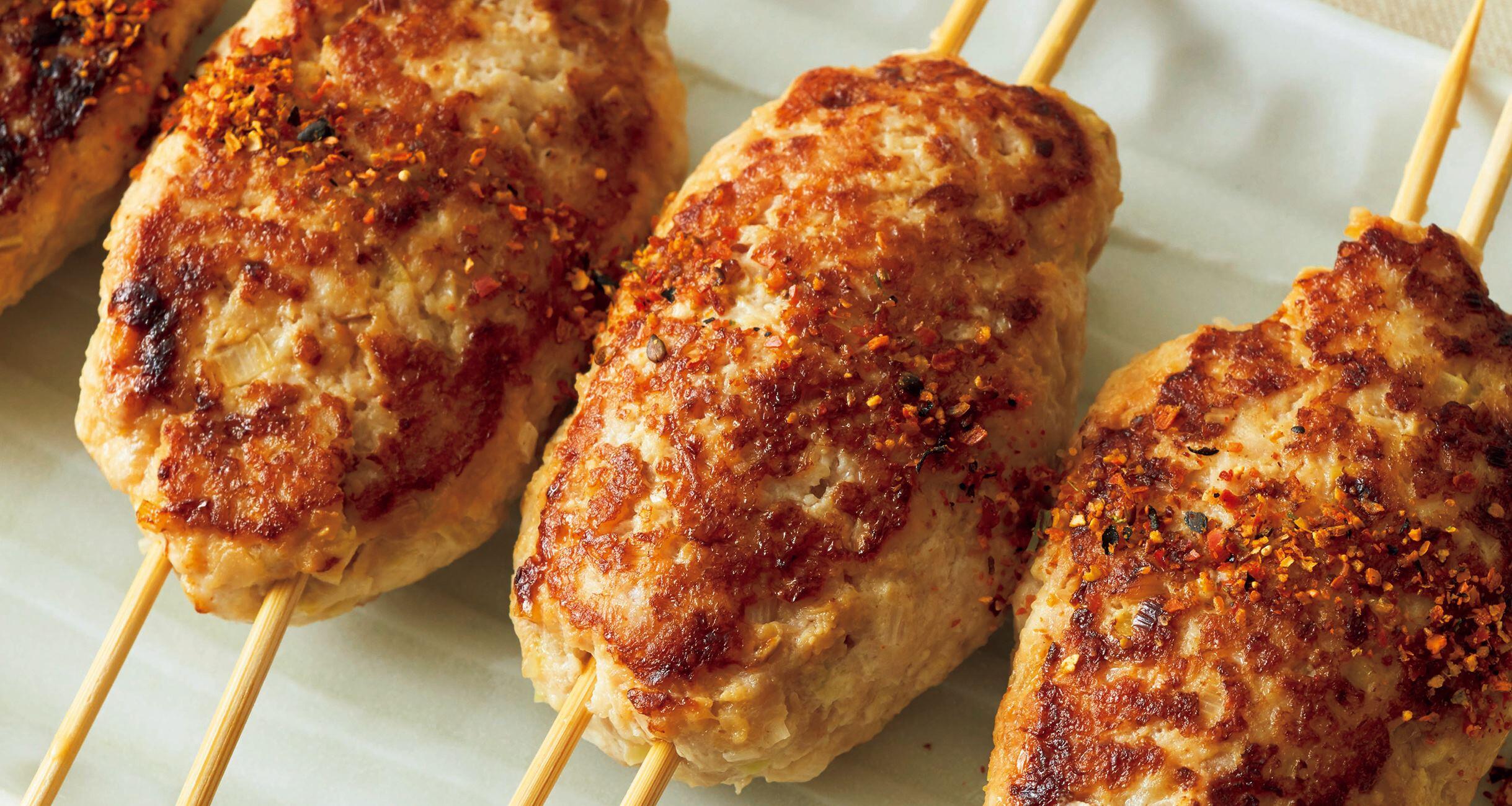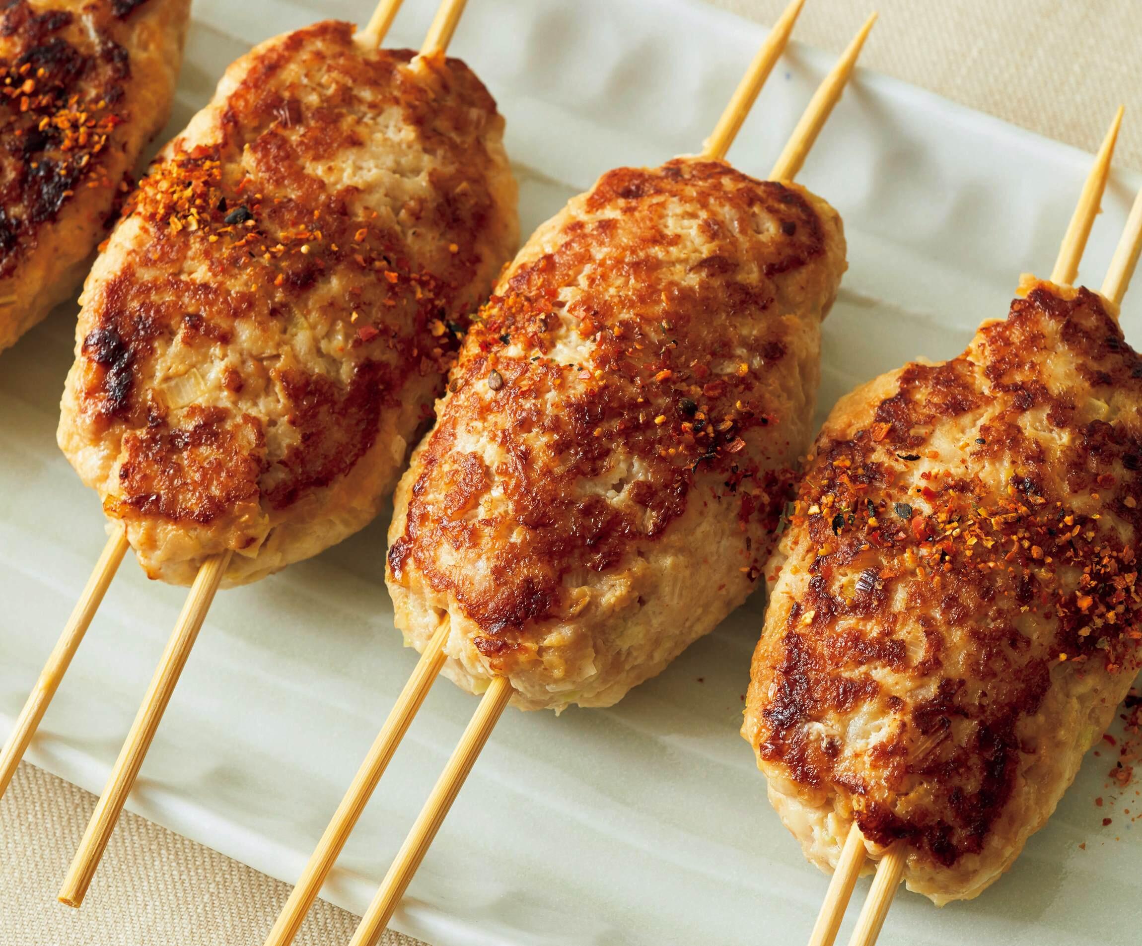 串を刺して焼けば、焼きとり屋風。小さめの小判形に形づくれば、お弁当のおかずにも。冷めてもパサパサにならないのも魅力です。
