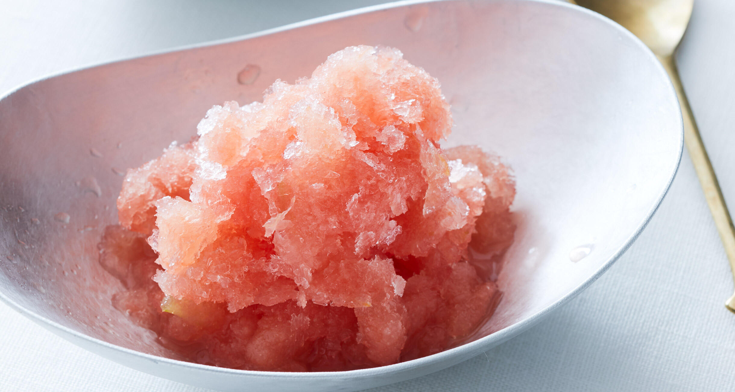 四季折々の食材を生かす料理研究家、植松良枝さんに教わった一品です。「グラニテ」とは、フレンチのシャーベット状の氷菓のことで、つくり方もとっても簡単。夏らしさを存分に楽しめます。