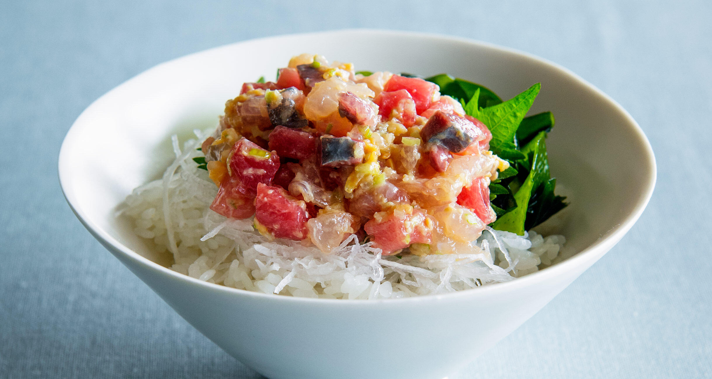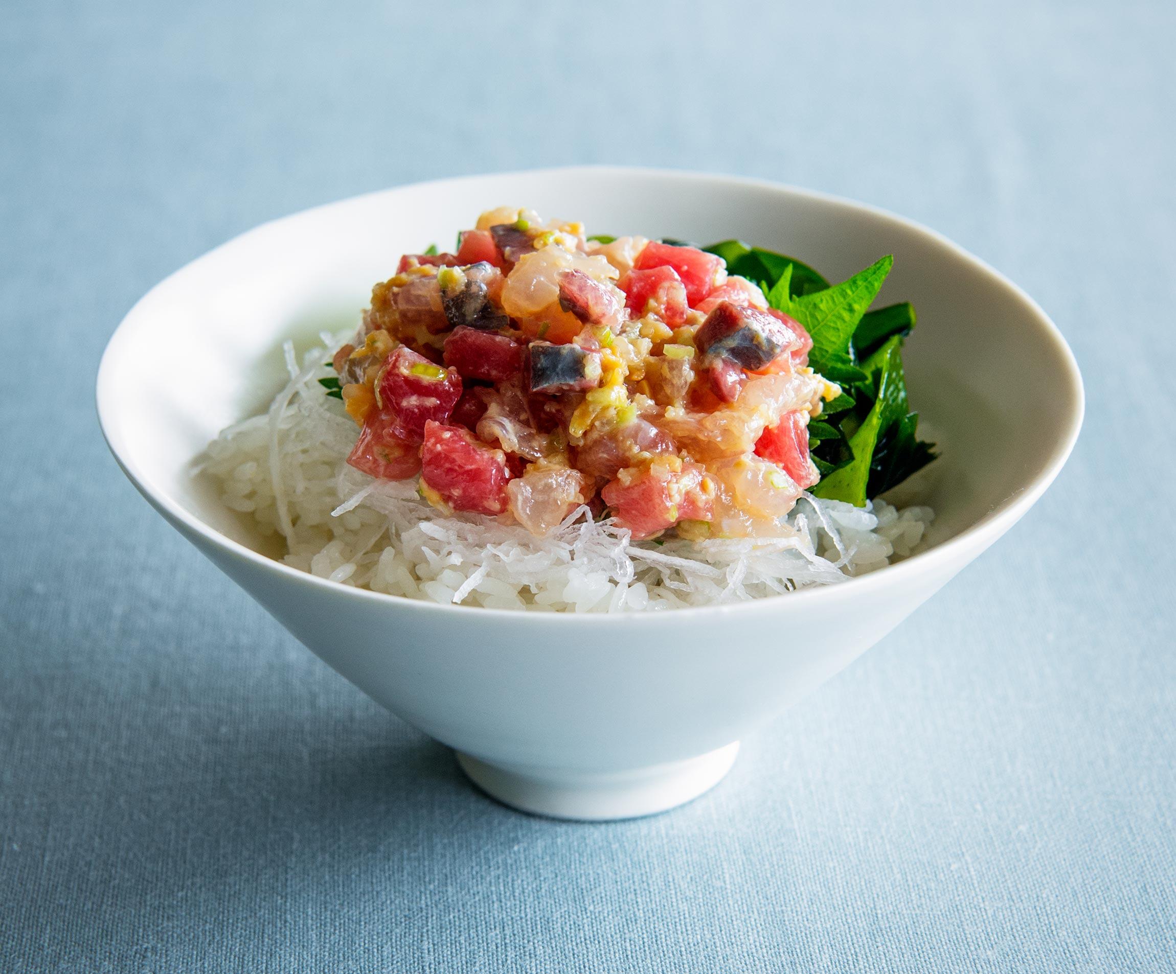 刺身には醤油と決めつけないでください。味噌で和えると骨太の味わいに。刺身の盛り合わせを使えば、いろいろな魚の味がミックスされて味わいも豊か。ゴージャスな見栄えにも拍手。