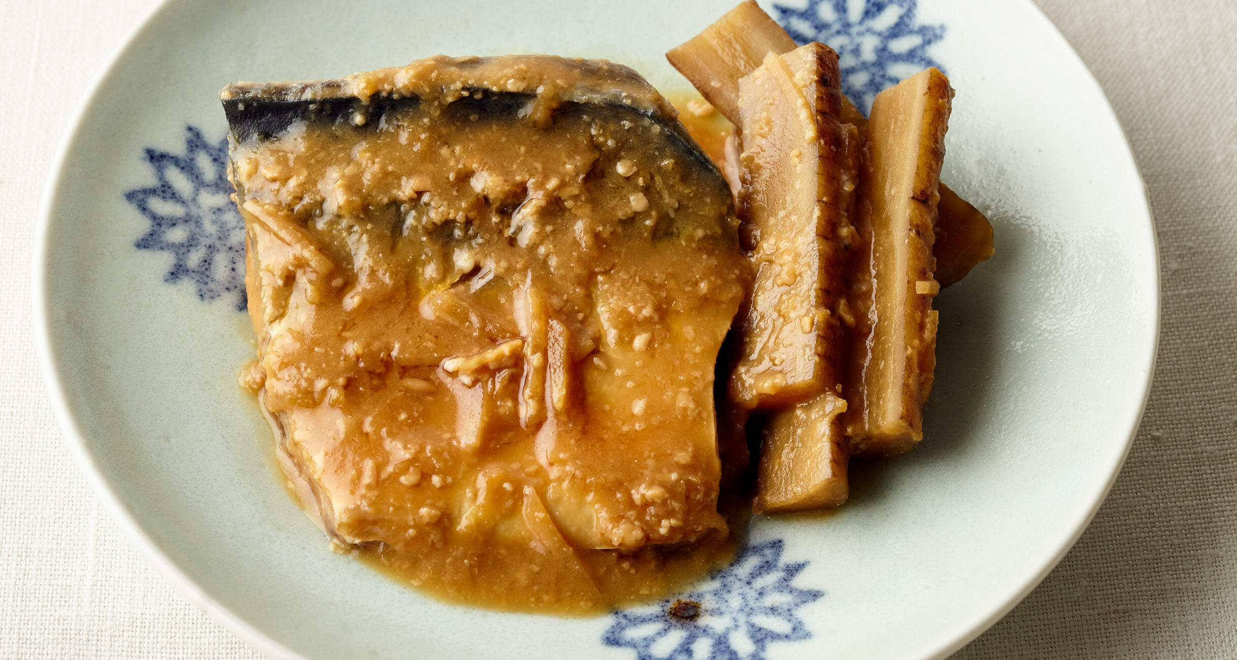 くさみのあるサバを味のしっかりしている味噌で煮た、定番の魚料理です。生姜を入れるのもくさみを消すポイント。味噌は好みのものでつくってください。赤味噌ならばこっくりとした味わいに。白味噌ならばほんのり甘いまろやか味に。どちらもごぼうを入れるのがポイント。香りが全体に広がっておいしさがアップします。