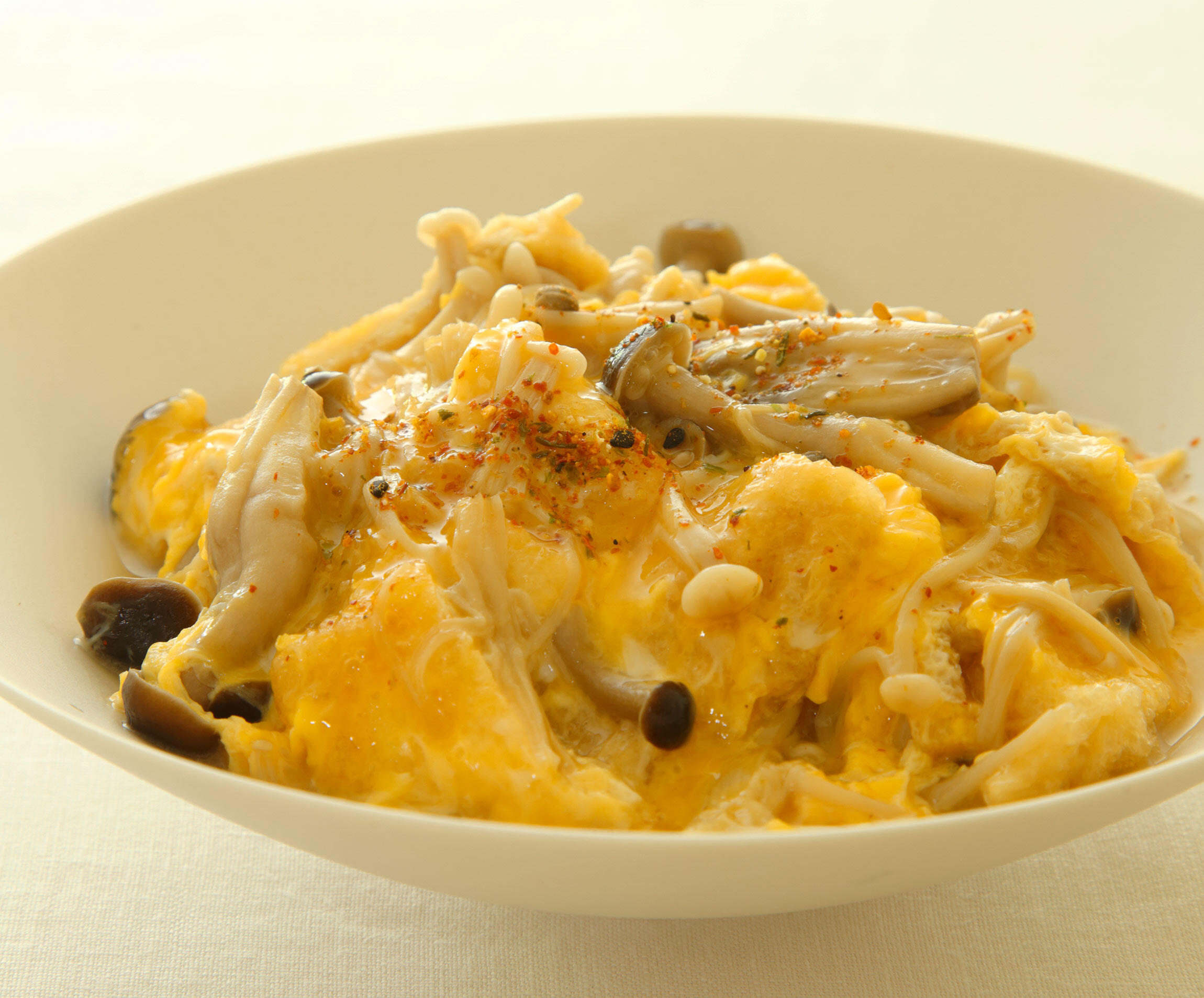 やや半熟の部分が所々残るくらいで火を止める。器に盛り、七味唐辛子をふる。