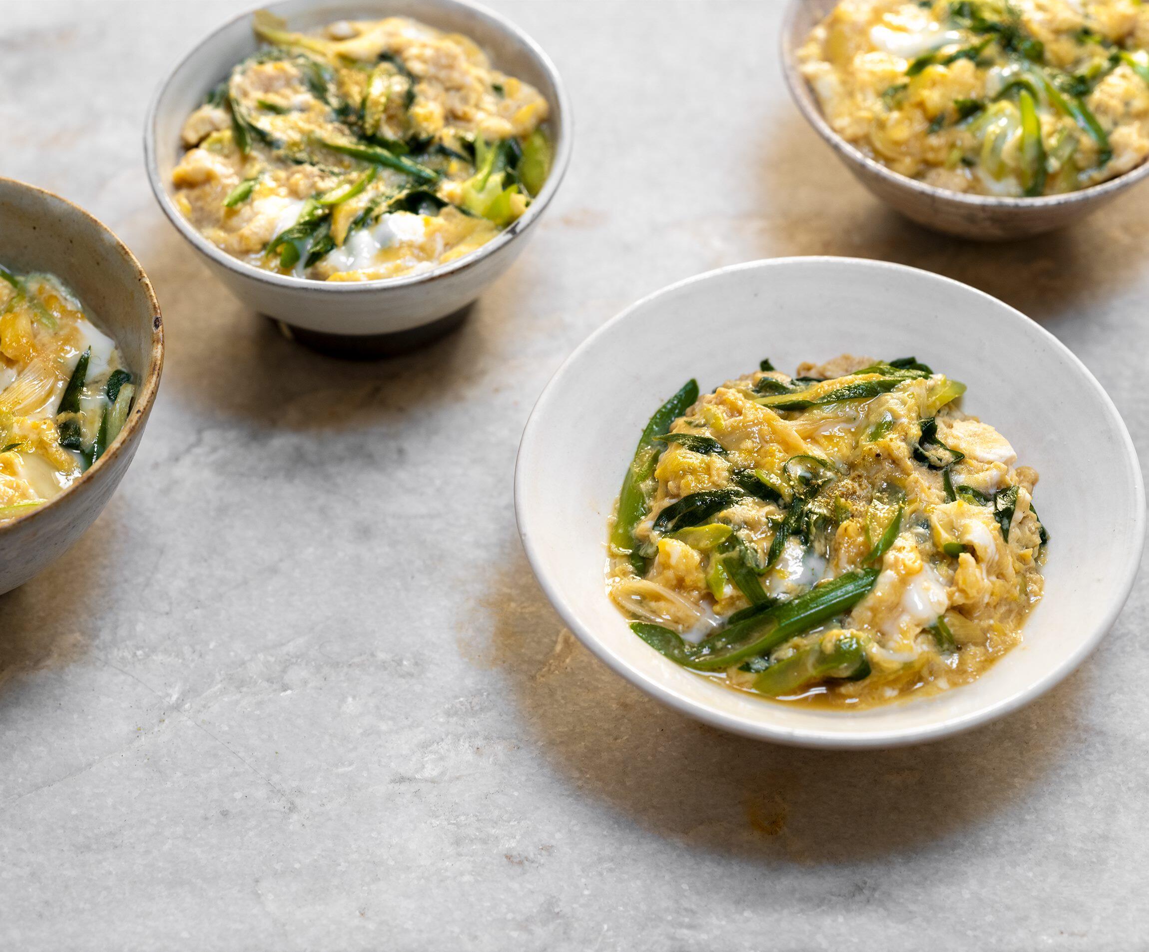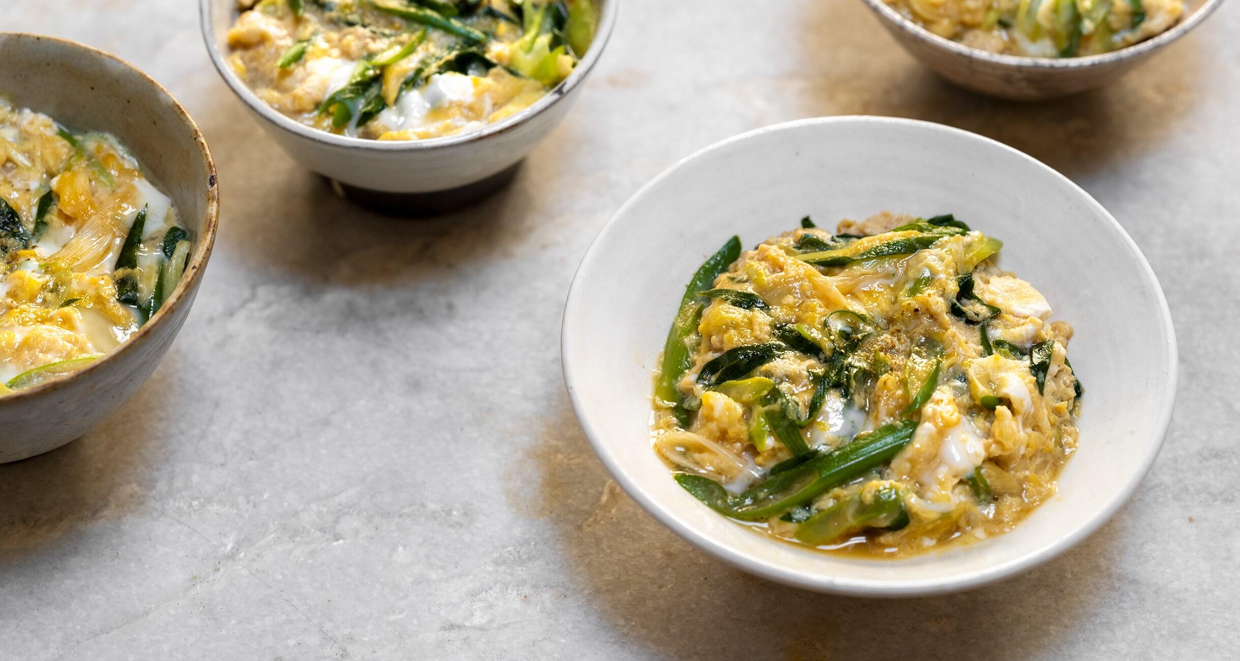だしの準備ひとつでさっとつくれるどんぶりです。粉山椒は食欲を増進させてくれるので、暑さの厳しい季節にはたっぷりと。器と料理の組み合わせを提案する店「カモシカ」を主宰するオカズデザインさんに、器の紹介と、その器を引き立たせる、目にも舌にもおいしいレシピを教わりました。