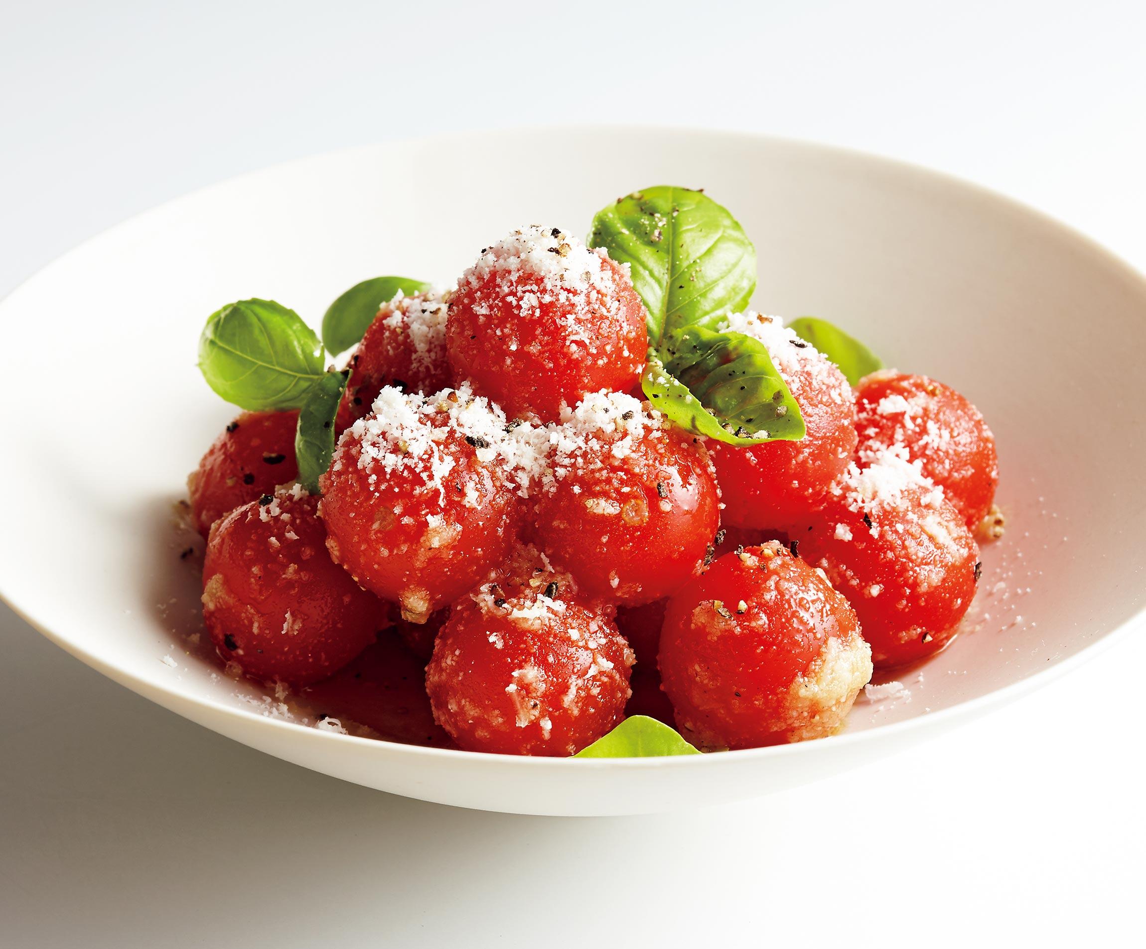 トマトの味わいが最大限に引き出される王道レシピ。チーズがもたらす濃厚な旨味と塩味にお酒も進みます。すぐに飲みたい!早く飲みたい!せっかちなあなたにぴったりの、あっという間の早業つまみのレシピを料理研究家の大庭英子さんに習いました。