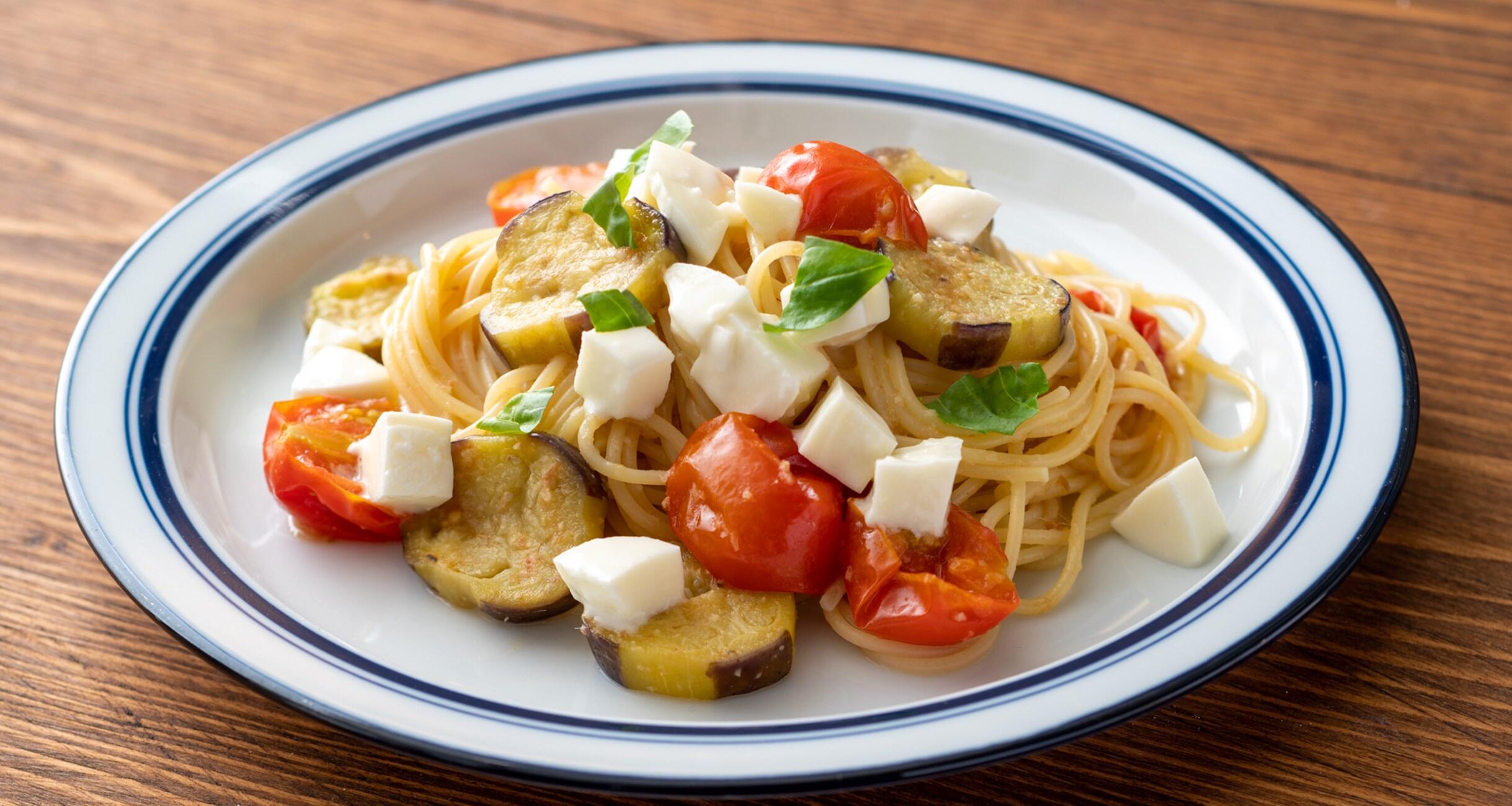 とろけるなすとモッツァレラがミルキーな、王道の組み合わせです。パスタが主食のデザイナー・ハヤシコウさんに、パパっとつくれるシンプルなパスタを習いました。この週末のランチにつくってみませんか?ハヤシさんのパスタは、優しい味わいなので、お好みで調味してみてください。