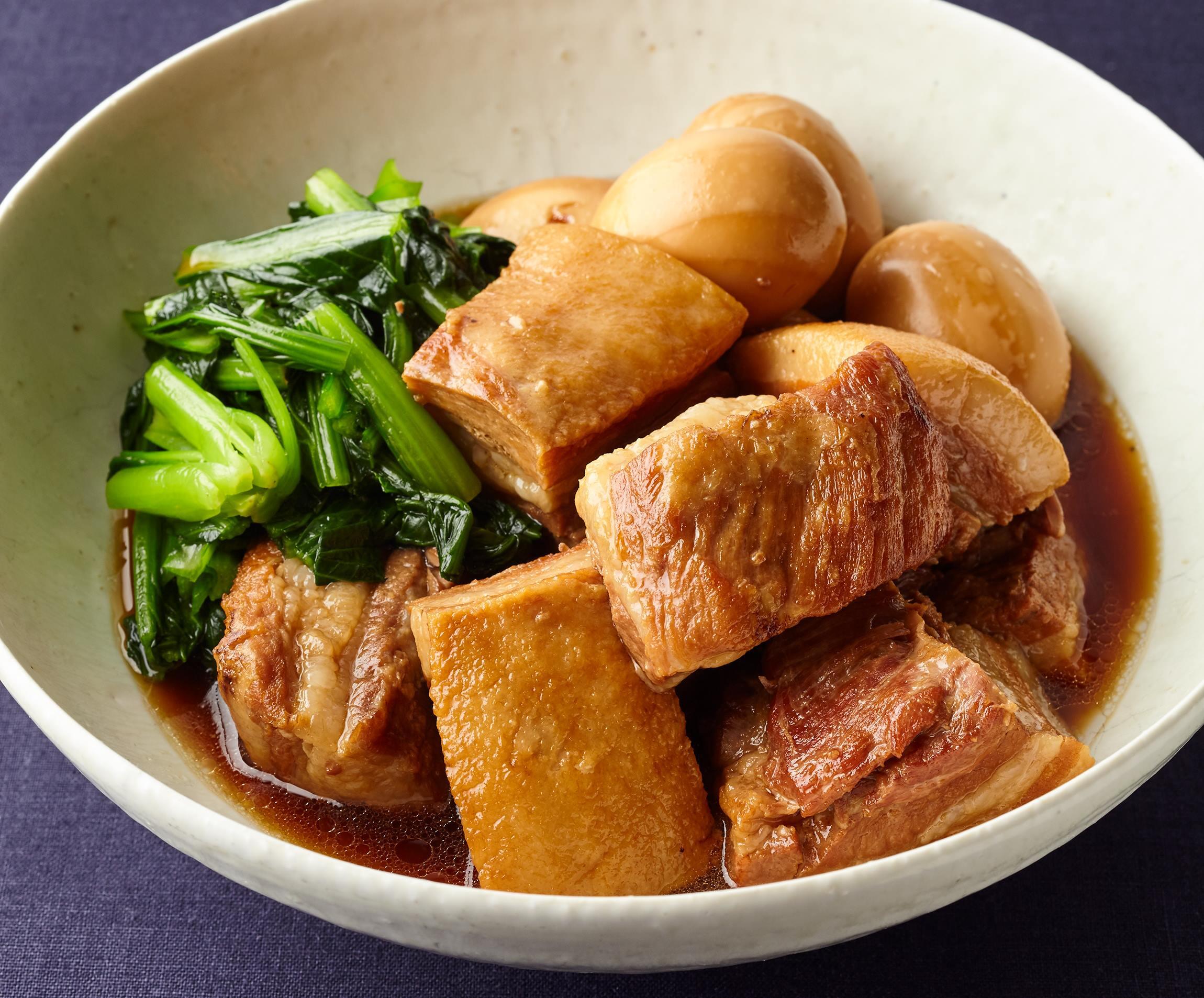男の料理で一番人気に位置する豚の角煮は、実は女性も大好き。やわらかく煮込んだ肉には箸もすっと入ります。焼きつけて余分な脂を取り除き、ねぎや生姜で下ゆでしてくさみを取ります。さらに下ゆでした後に冷蔵庫で冷やし、固まった脂を取り除くことで、脂っぽさをみじんも感じないすっきりした角煮に仕上がります。